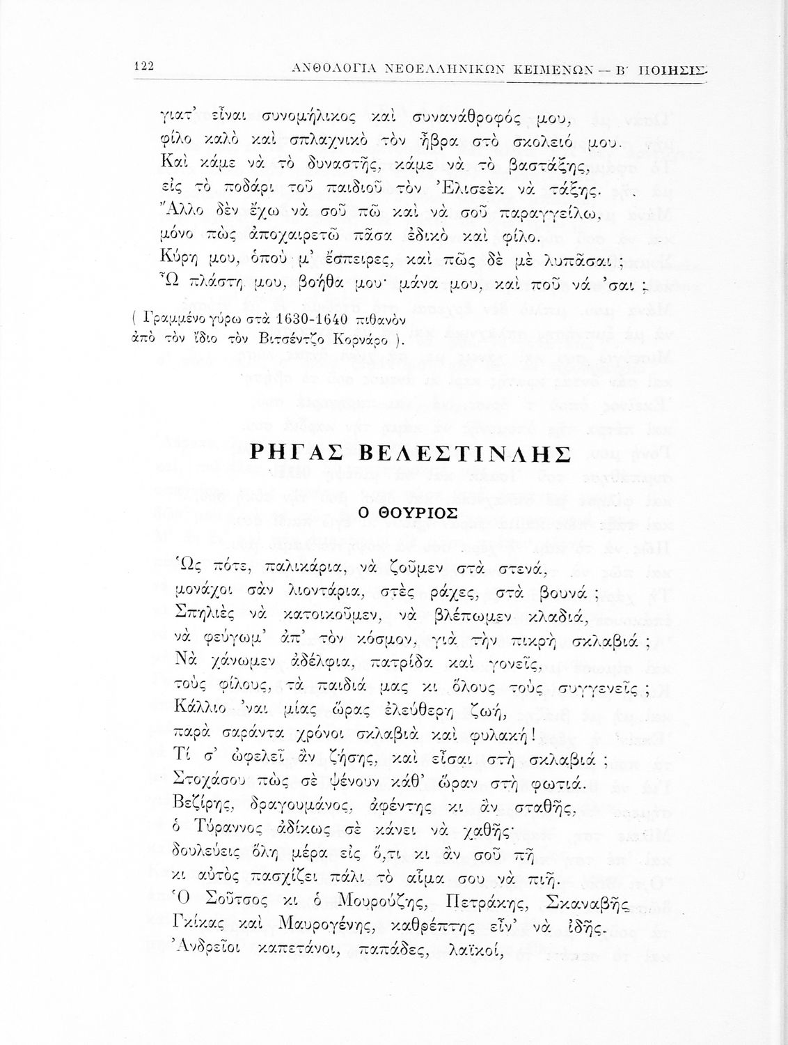 Σχολικό εγχειρίδιο Νέων Ελληνικών για τη Δευτεροβάθμια Εκπαίδευση που περιέχει κείμενα από την ελληνική πεζογραφία και την κρητική λογοτεχνία καθώς και δημοτικά τραγούδια εμπνευσμένα από την εθνική ζωή του τόπου.