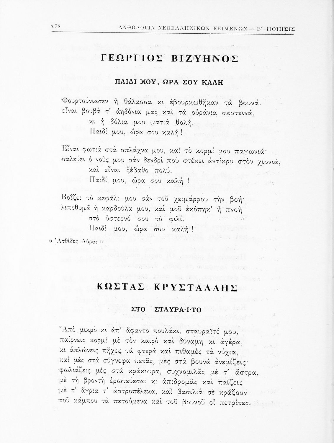 Σχολικό εγχειρίδιο Νέων Ελληνικών για τη Δευτεροβάθμια Εκπαίδευση που περιέχει κείμενα από την ελληνική πεζογραφία και την κρητική λογοτεχνία καθώς και δημοτικά τραγούδια εμπνευσμένα από την εθνική ζωή του τόπου.