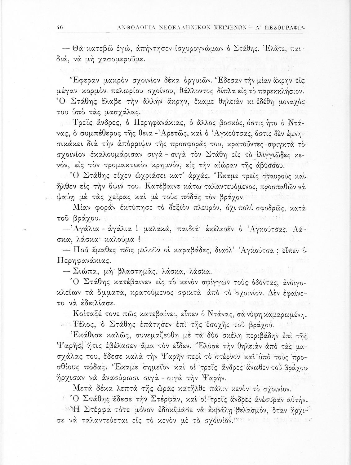 Σχολικό εγχειρίδιο Νέων Ελληνικών για τη Δευτεροβάθμια Εκπαίδευση που περιέχει κείμενα από την ελληνική πεζογραφία και την κρητική λογοτεχνία καθώς και δημοτικά τραγούδια εμπνευσμένα από την εθνική ζωή του τόπου.