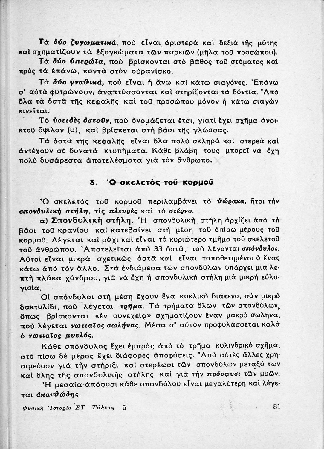 Φυσική Ιστορία (Φυτολογία-Ζωολογία-Ανθρωπολογία) για την έκτη τάξι του Δημοτικού Σχολείου