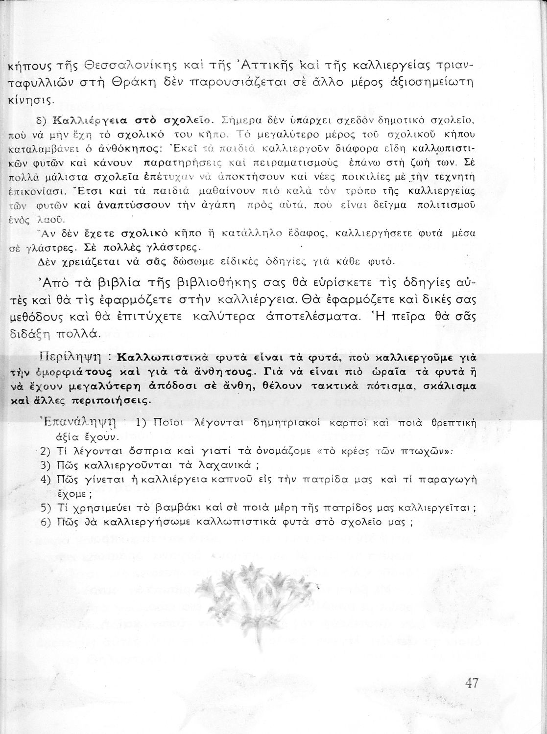 Σχολικό εγχειρίδιο Φυτολογίας Δ΄, Ε΄ και ΣΤ΄ Δημοτικού που παρουσιάζει πλήθος φυτών και εστιάζει στον τρόπο πολλαπλασιασμού τους.