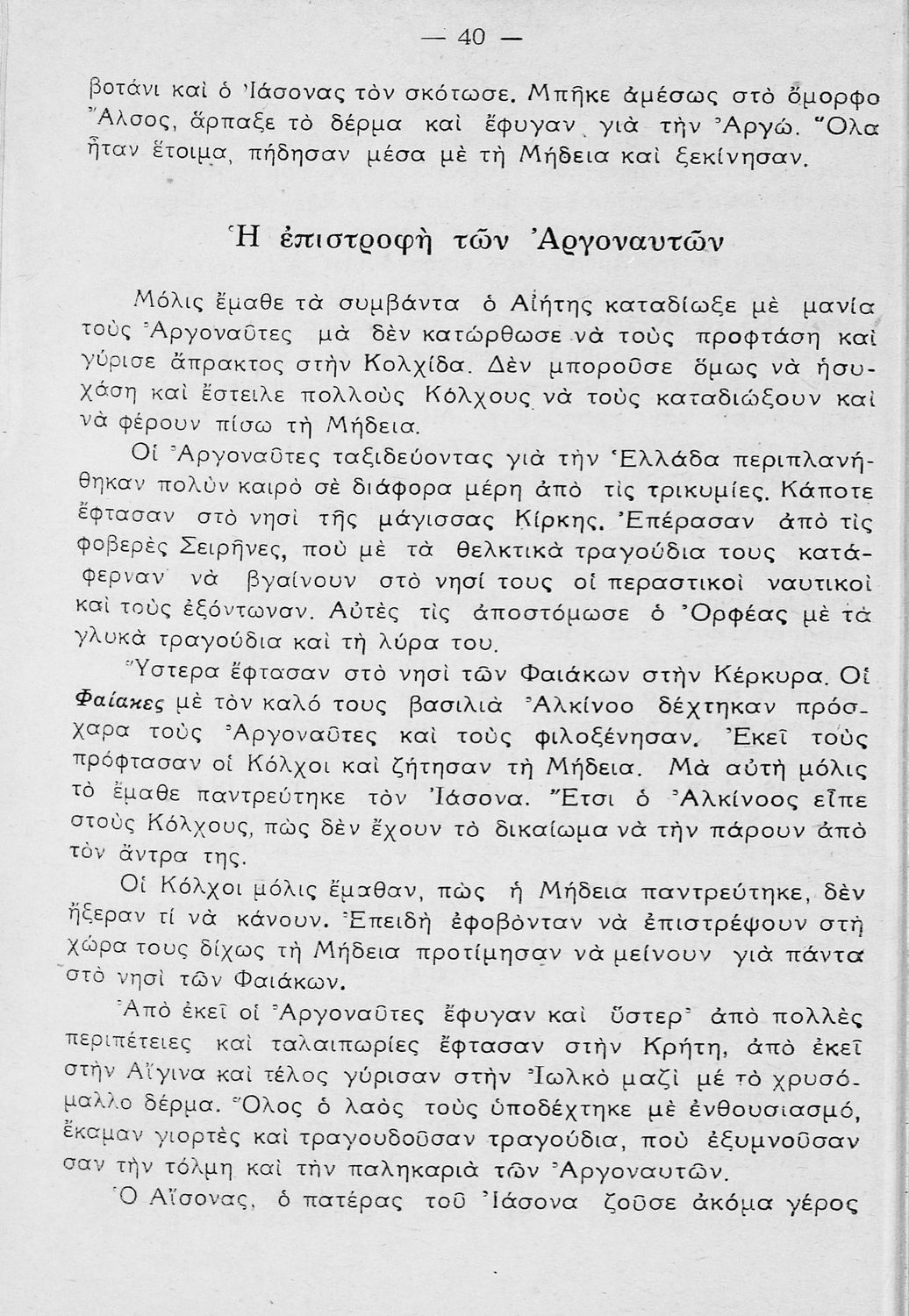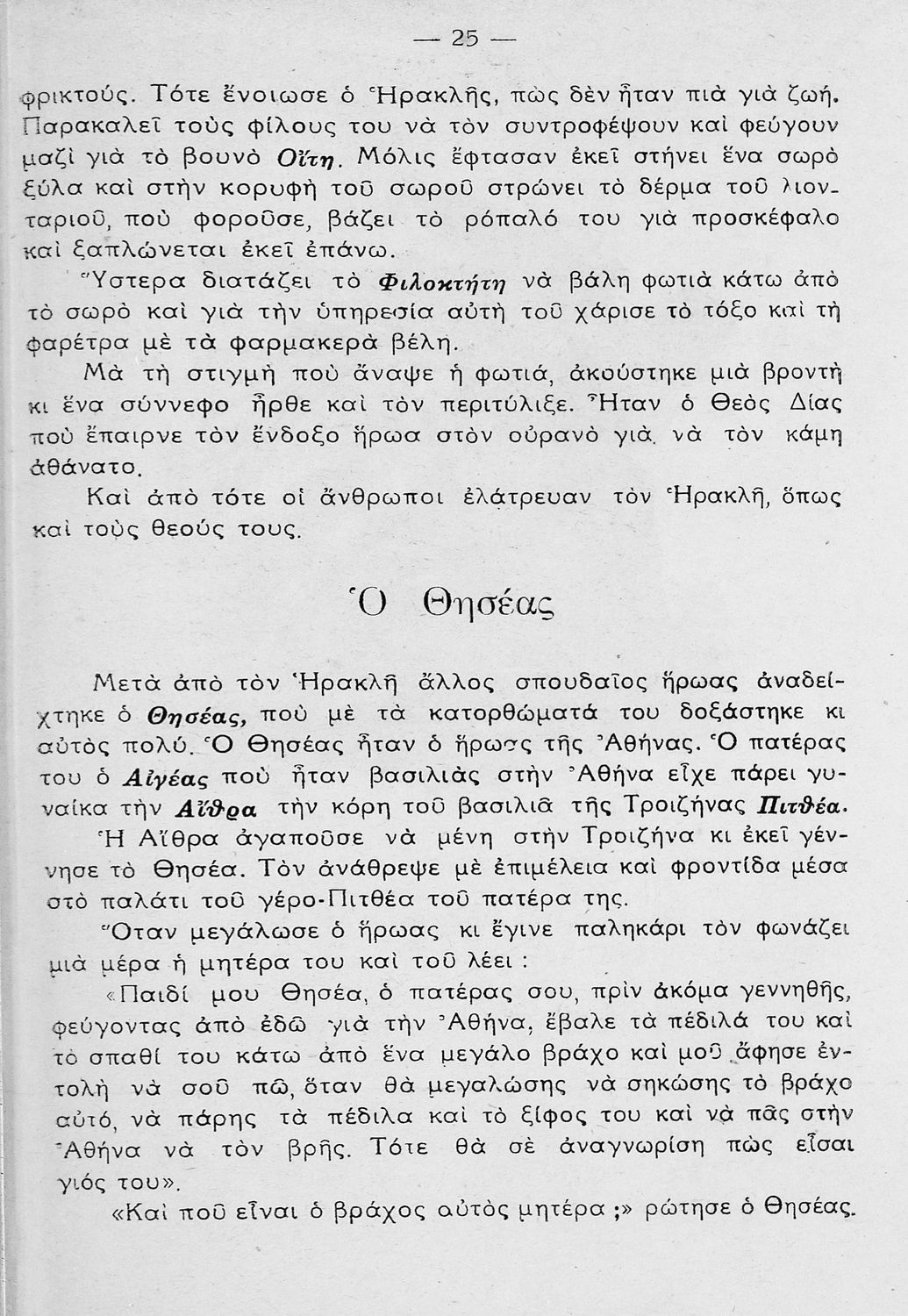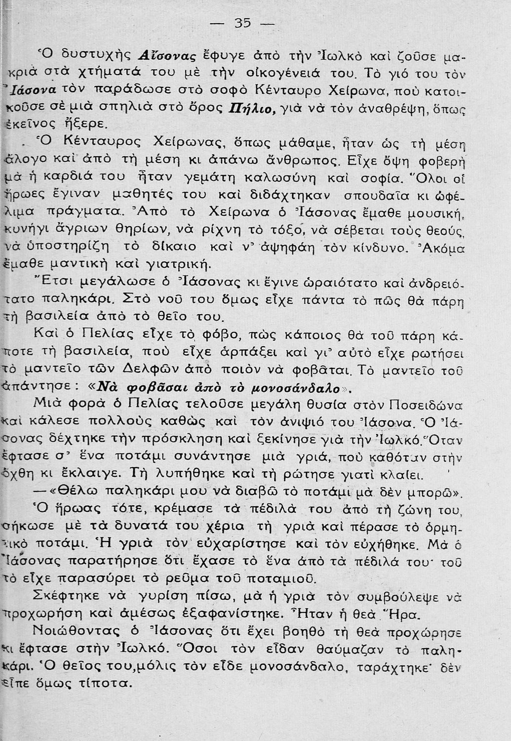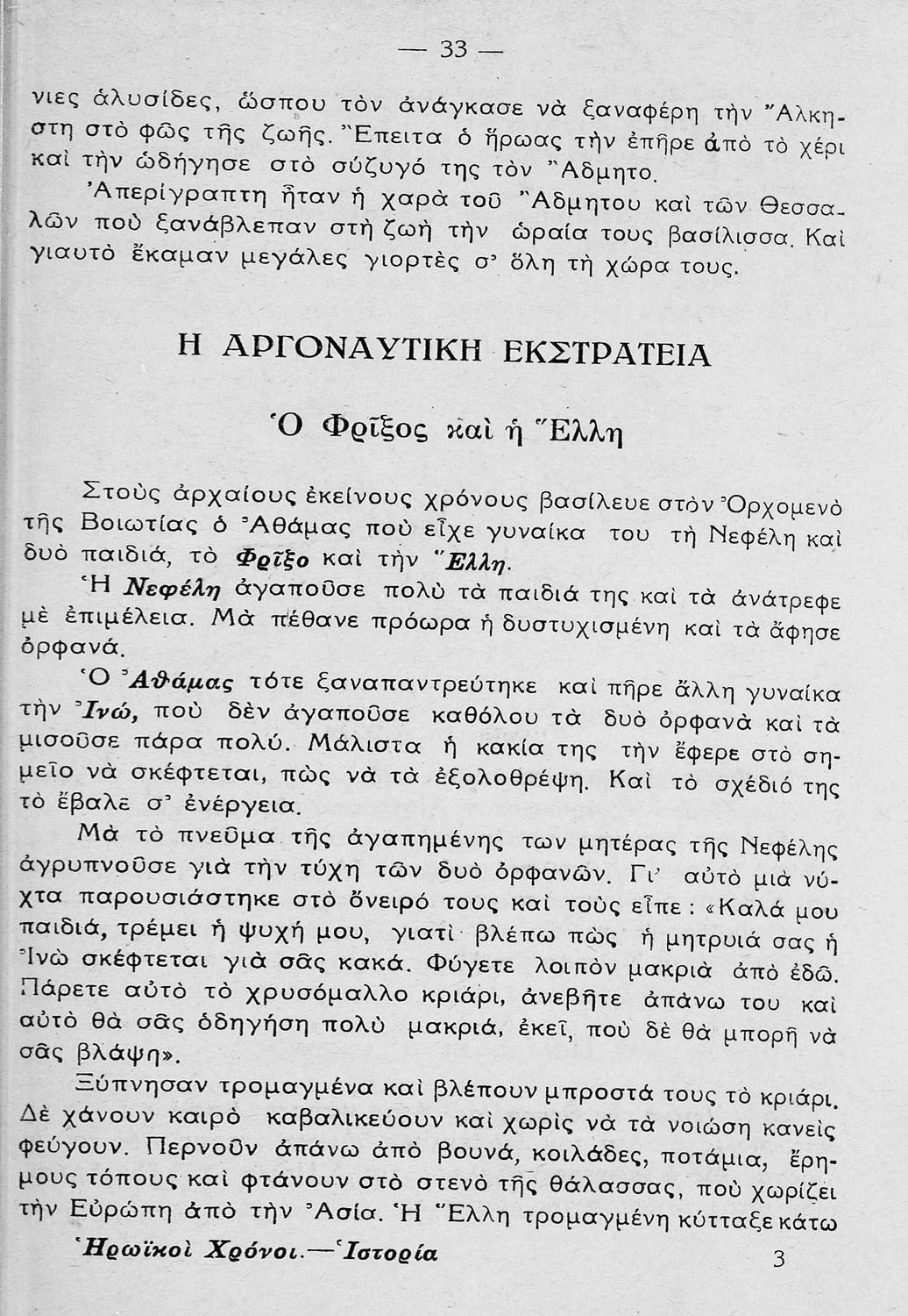 Μαθητικό βοήθημα της Γ΄ Δημοτικού για το μάθημα της Ιστορίας. Το σύγγραμμα αναφέρεται στην ελληνική μυθολογία. Τα αποσπάσματα από την Οδύσσεια του Ομήρου είναι από τη μετάφραση του Εφταλιώτη.