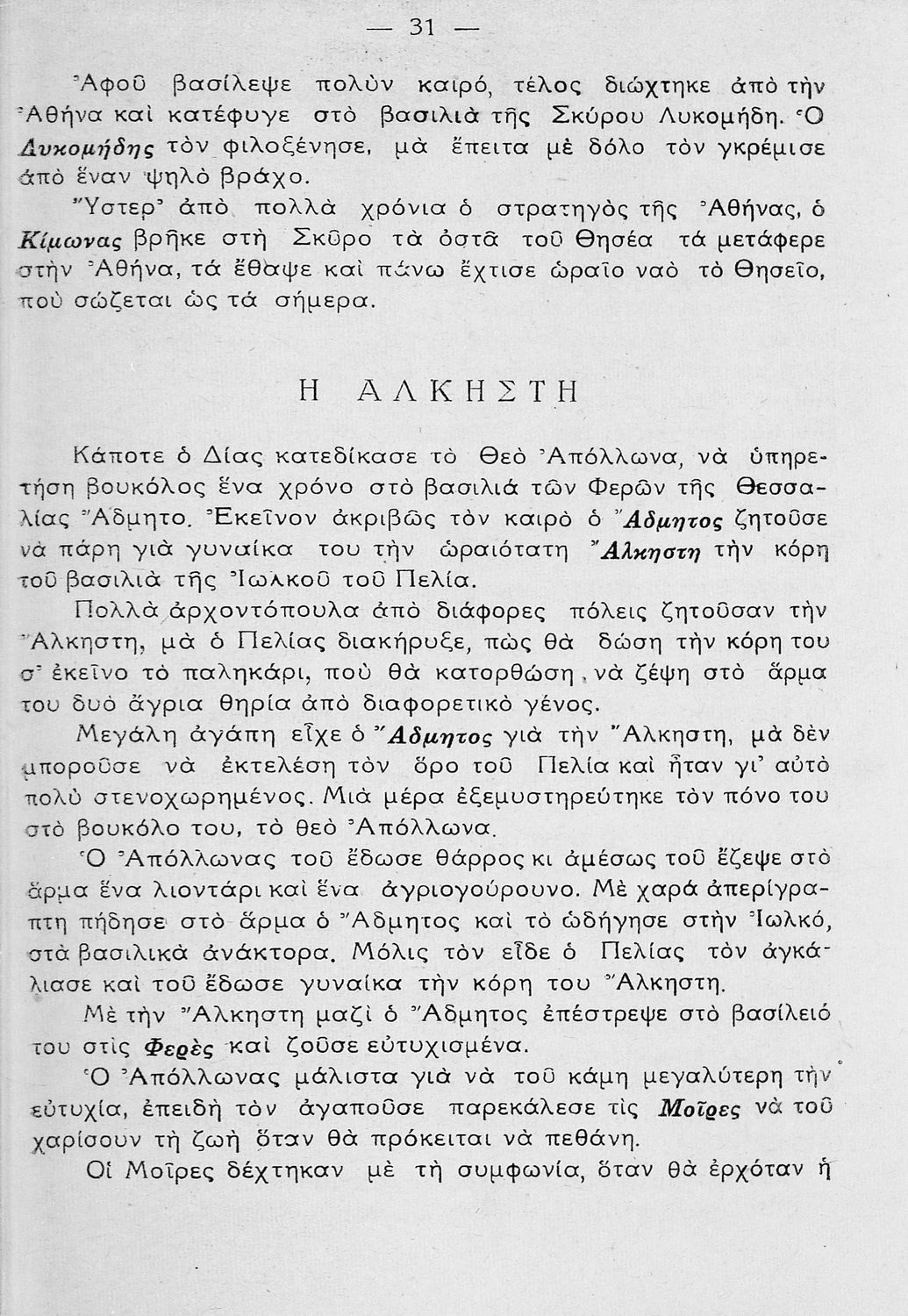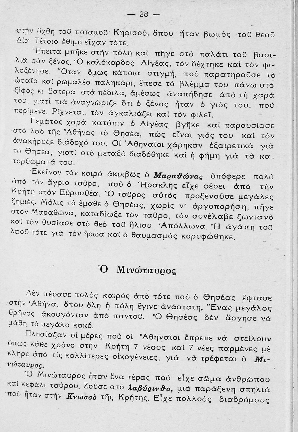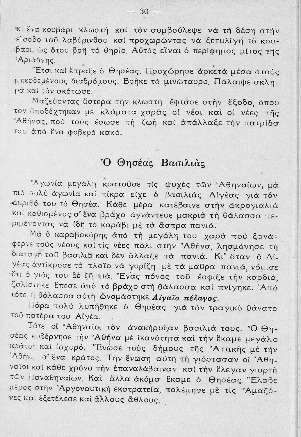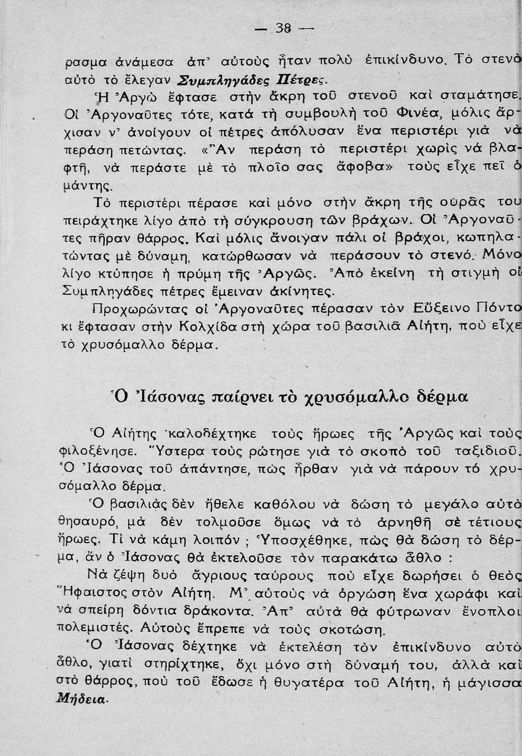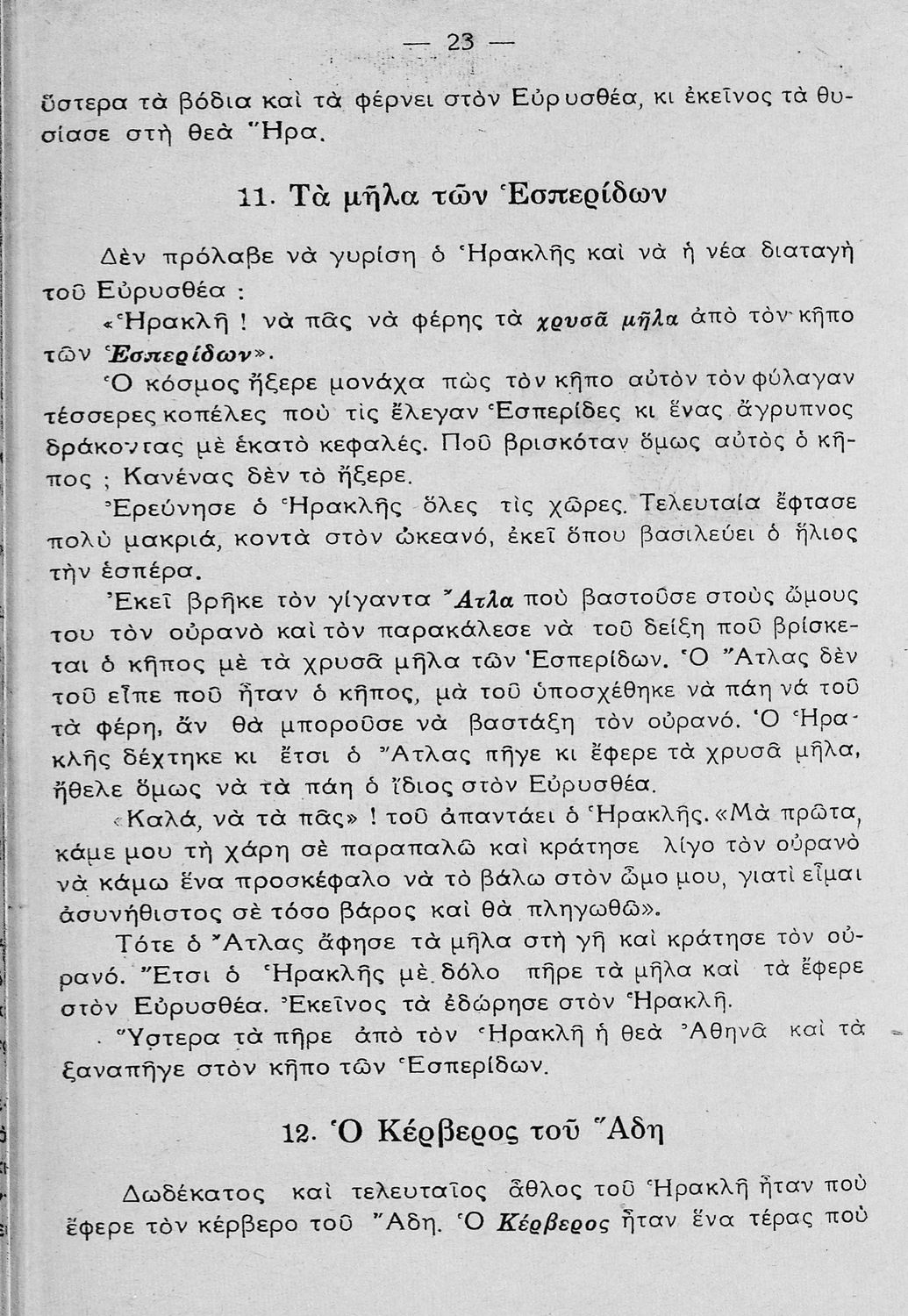 Μαθητικό βοήθημα της Γ΄ Δημοτικού για το μάθημα της Ιστορίας. Το σύγγραμμα αναφέρεται στην ελληνική μυθολογία. Τα αποσπάσματα από την Οδύσσεια του Ομήρου είναι από τη μετάφραση του Εφταλιώτη.