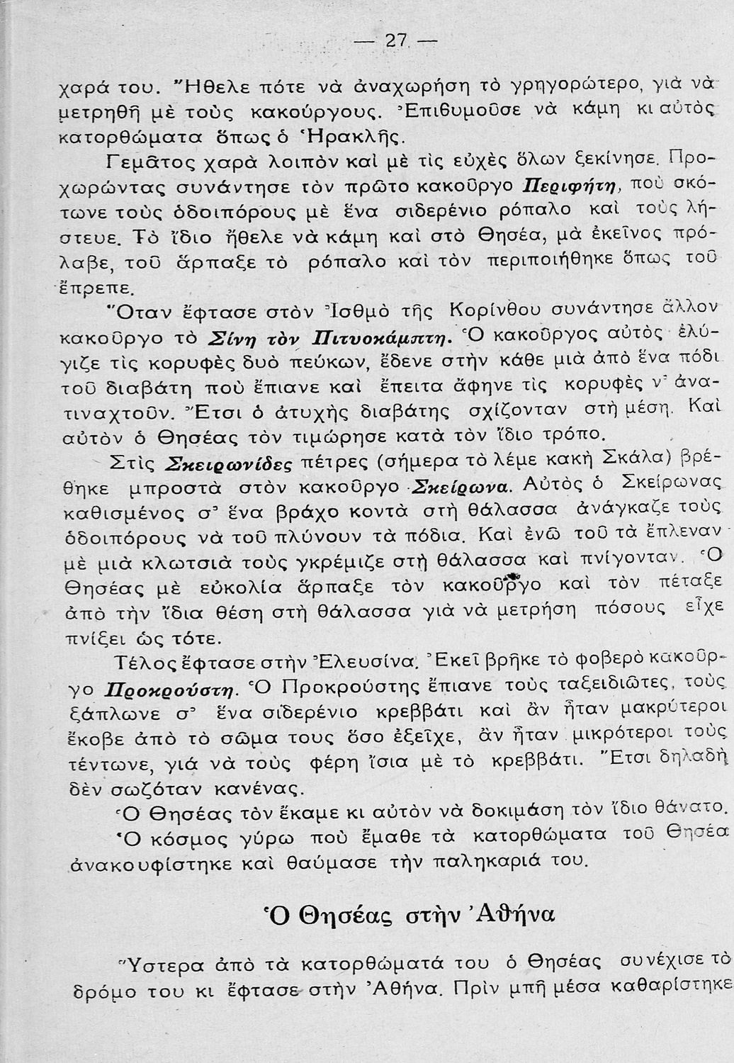 Το σύγγραμμα αποτελεί μαθητικό βοήθημα για το μάθημα της Ιστορίας στους μαθητές του Δημοτικού. Αναφέρεται κυρίως στην μυθολογία, τους αρχαίους ήρωες, τους Θεούς του Ολύμπου. Στη συνέχεια αναφέρει τους ...