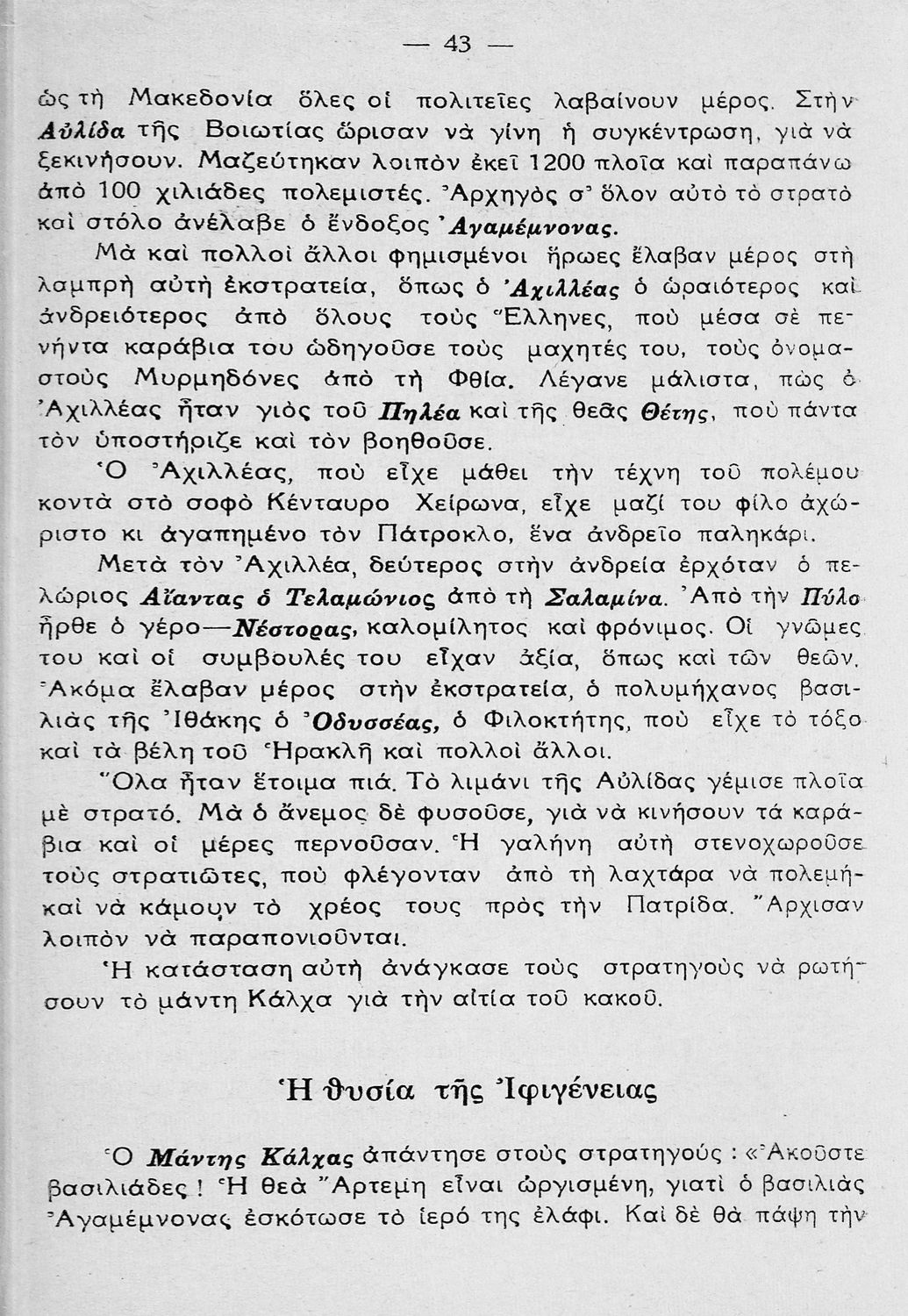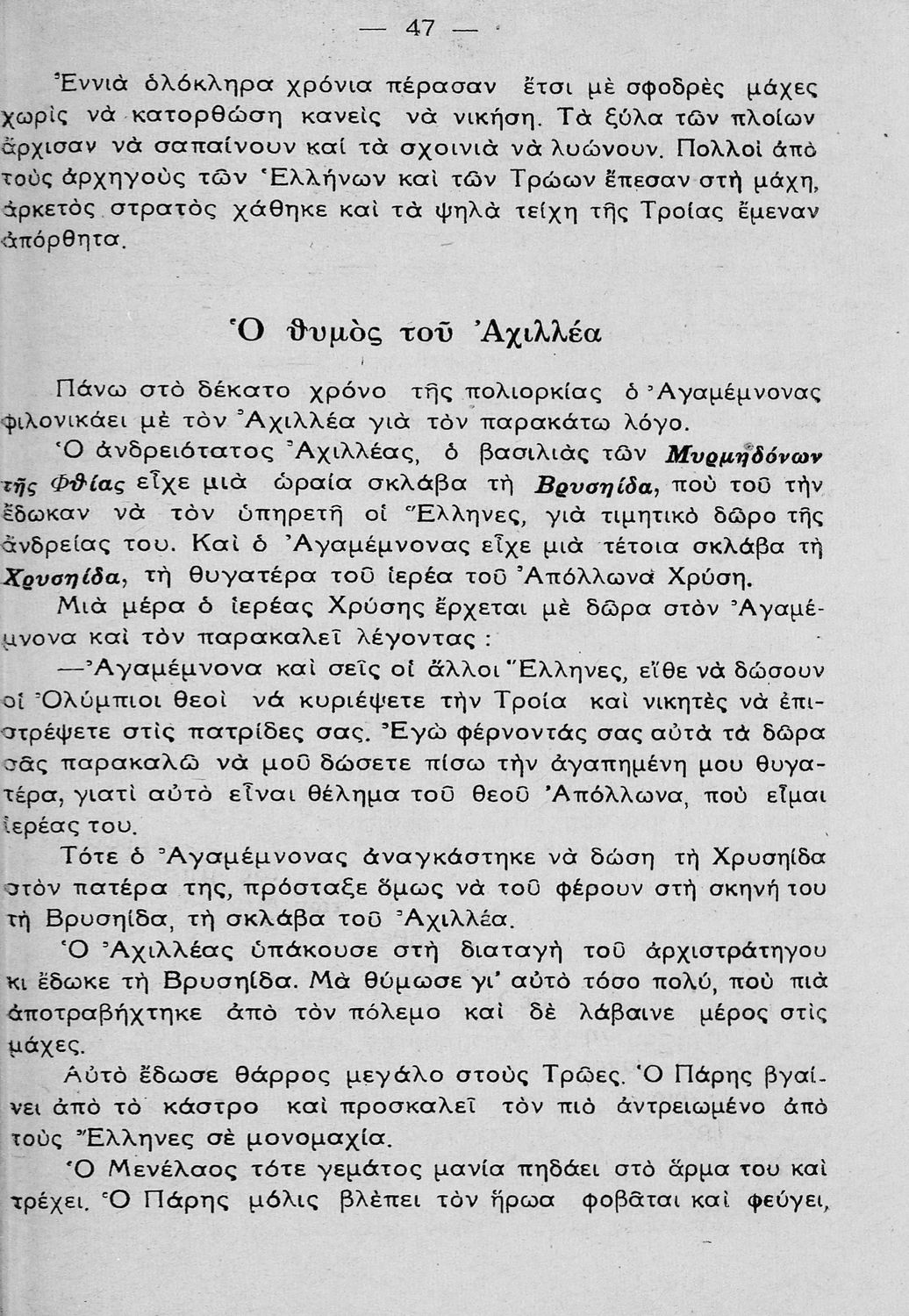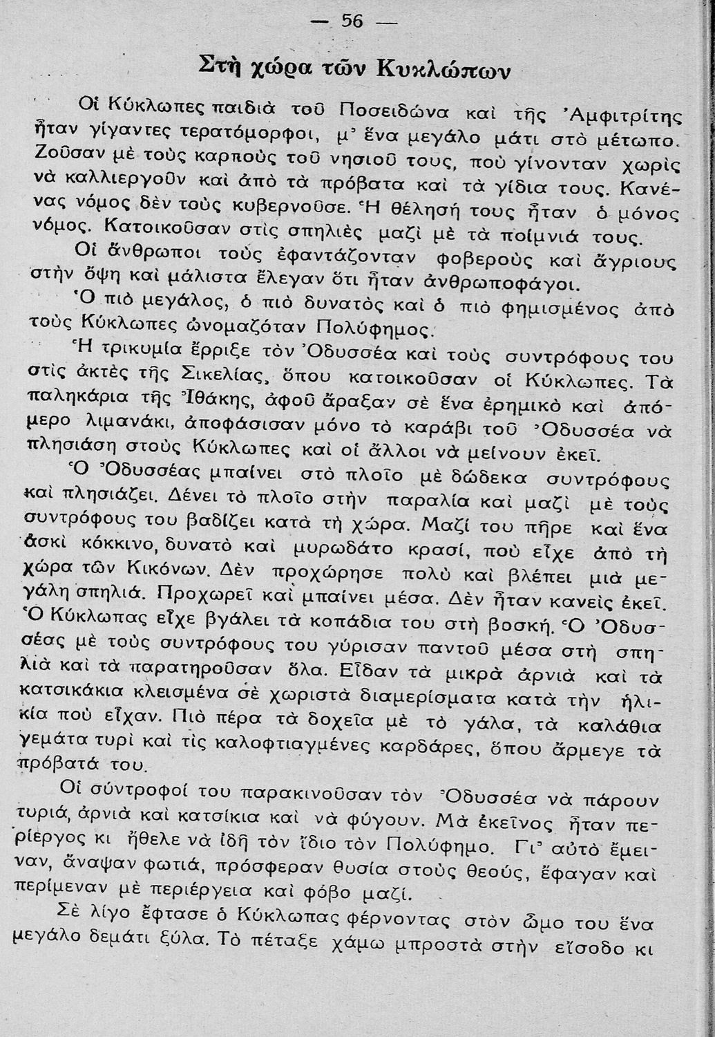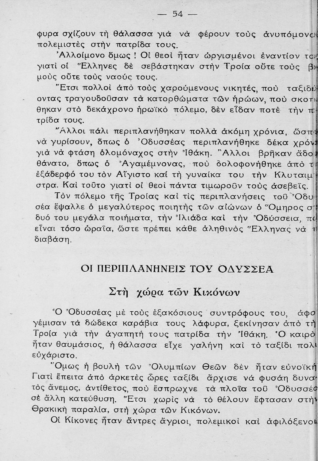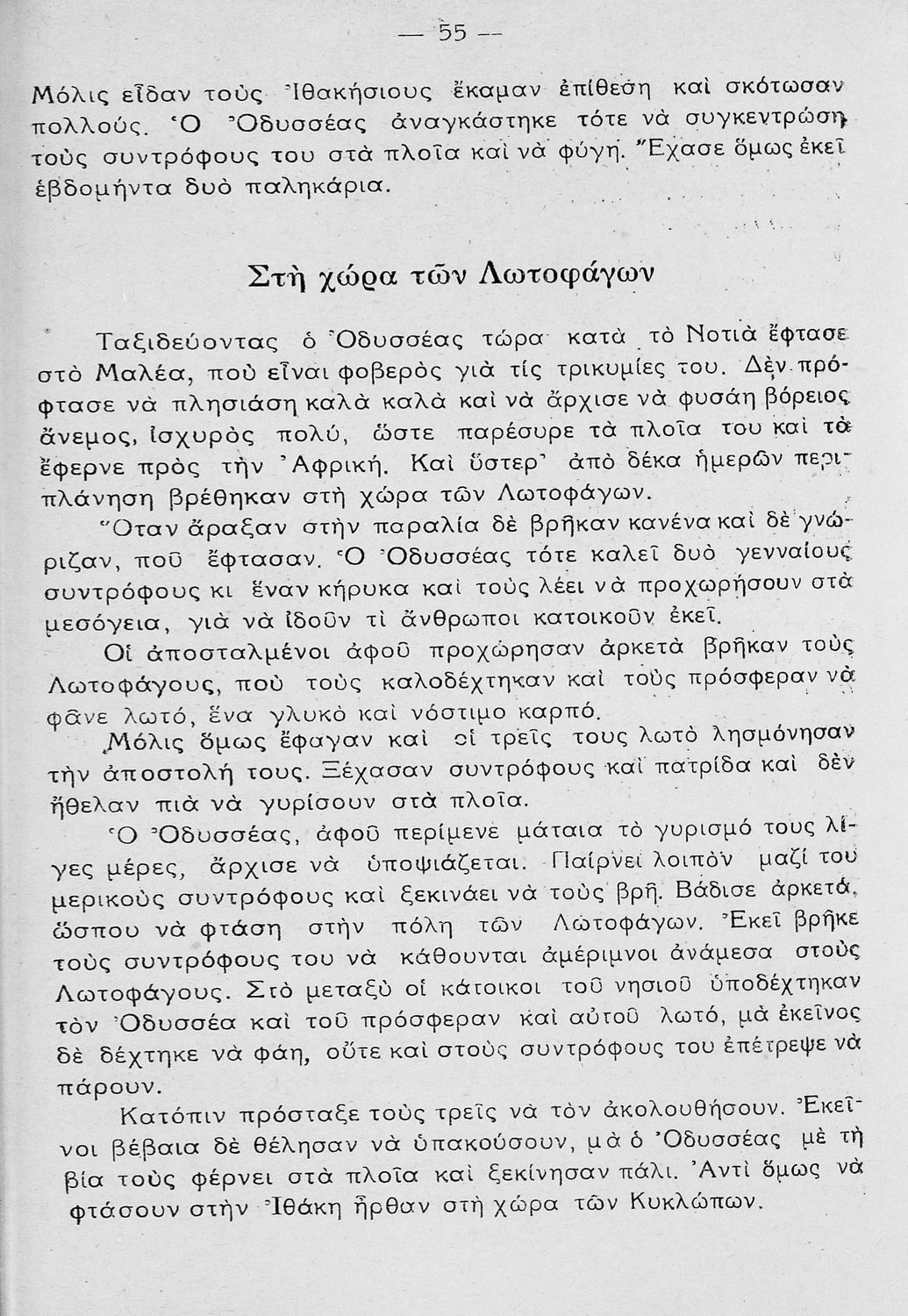 Μαθητικό βοήθημα της Γ΄ Δημοτικού για το μάθημα της Ιστορίας. Το σύγγραμμα αναφέρεται στην ελληνική μυθολογία. Τα αποσπάσματα από την Οδύσσεια του Ομήρου είναι από τη μετάφραση του Εφταλιώτη.