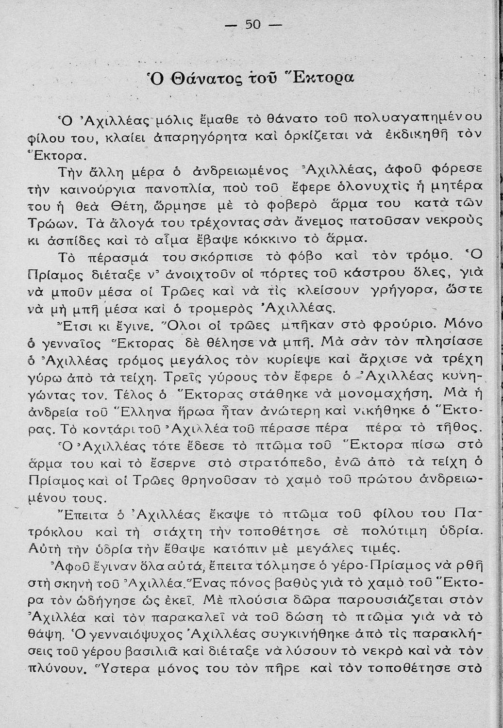 Το σύγγραμμα αποτελεί μαθητικό βοήθημα για το μάθημα της Ιστορίας στους μαθητές του Δημοτικού. Αναφέρεται κυρίως στην μυθολογία, τους αρχαίους ήρωες, τους Θεούς του Ολύμπου. Στη συνέχεια αναφέρει τους ...