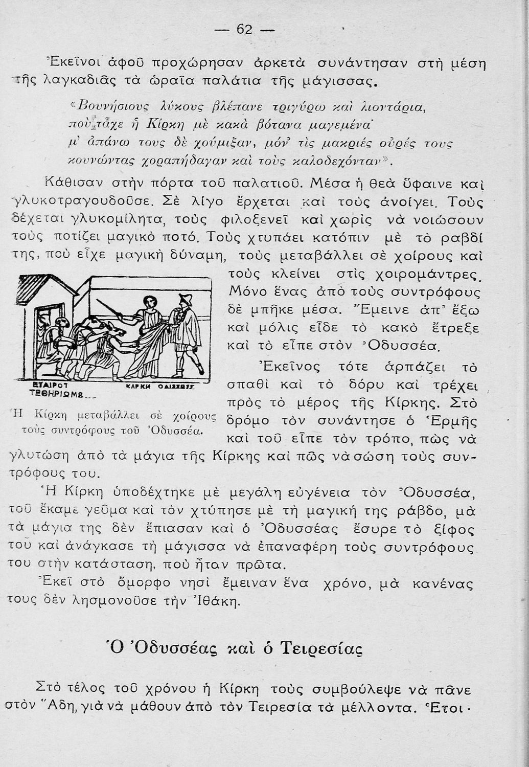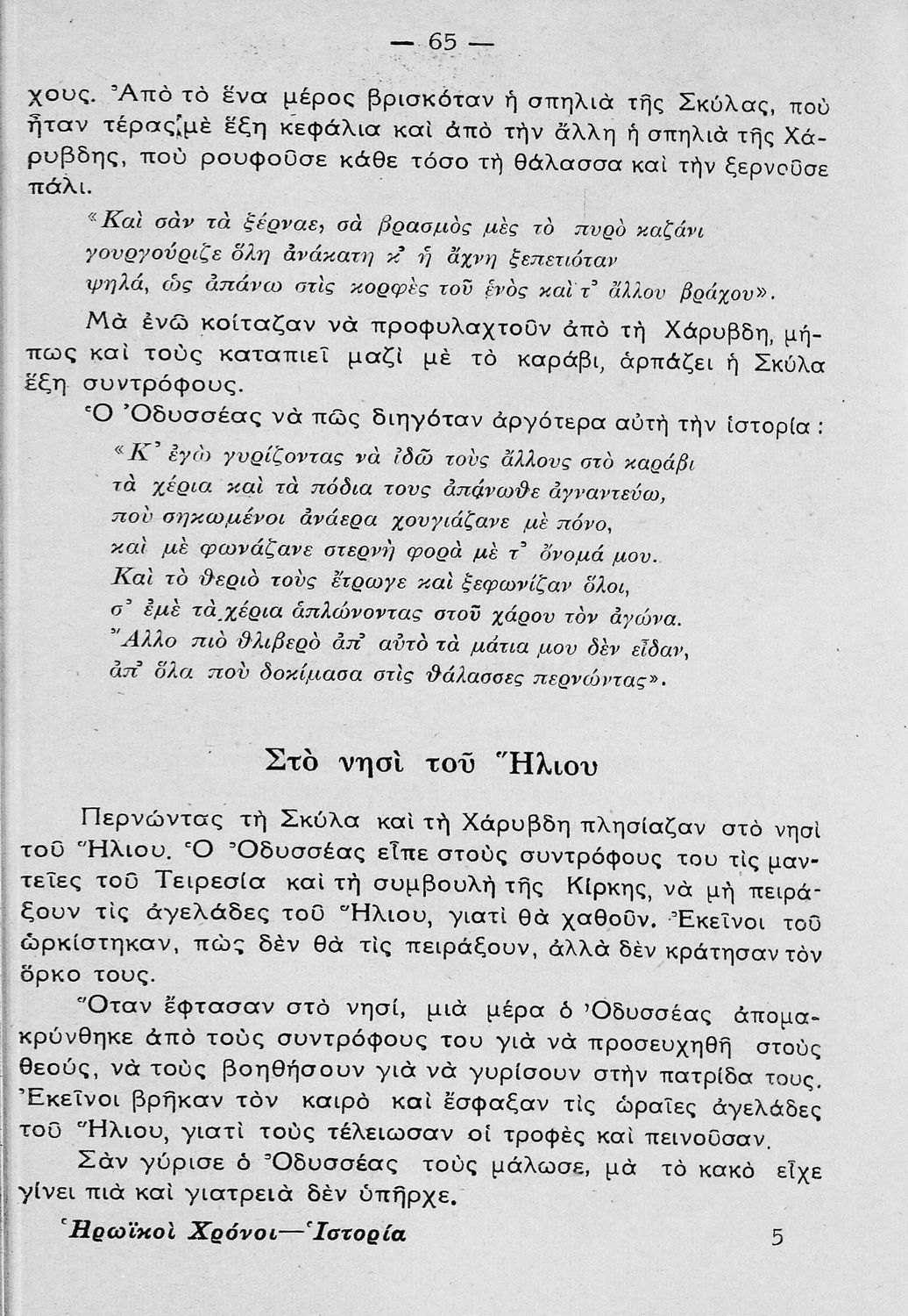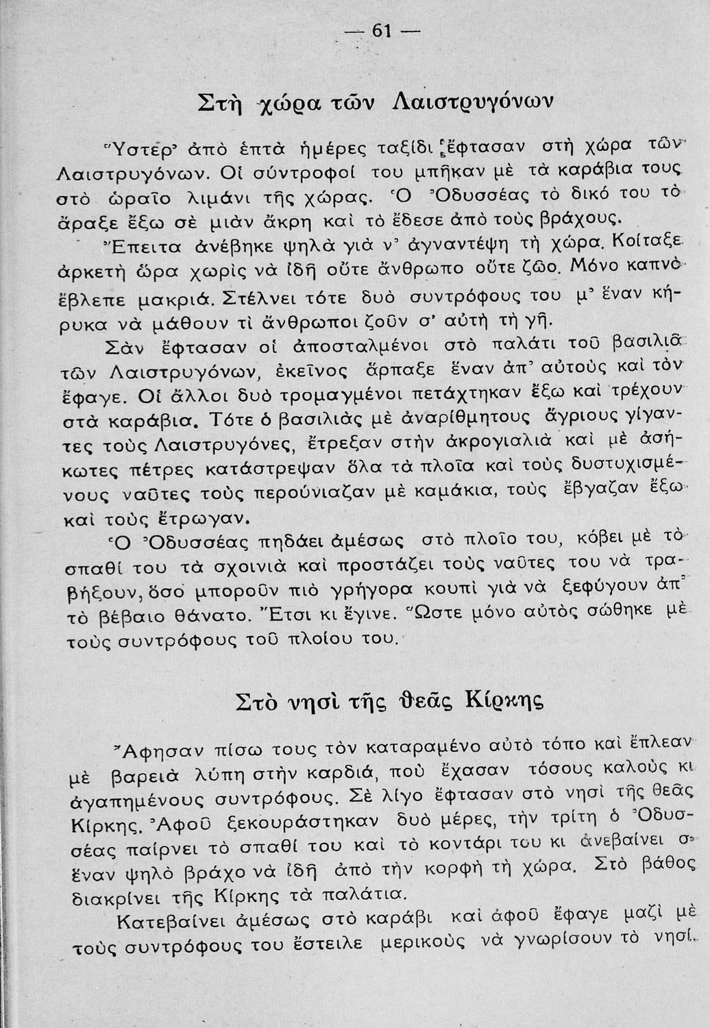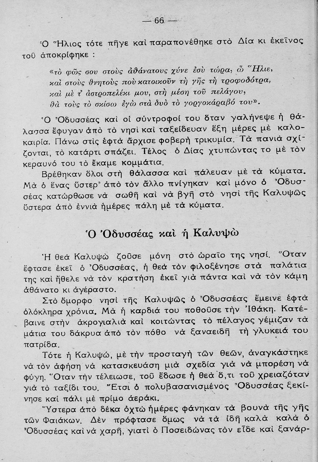 Μαθητικό βοήθημα της Γ΄ Δημοτικού για το μάθημα της Ιστορίας. Το σύγγραμμα αναφέρεται στην ελληνική μυθολογία. Τα αποσπάσματα από την Οδύσσεια του Ομήρου είναι από τη μετάφραση του Εφταλιώτη.