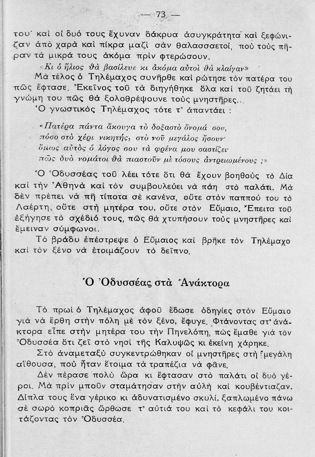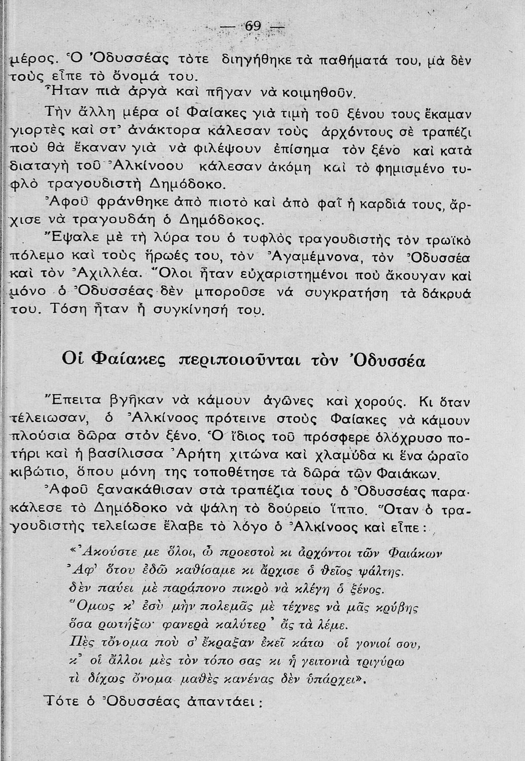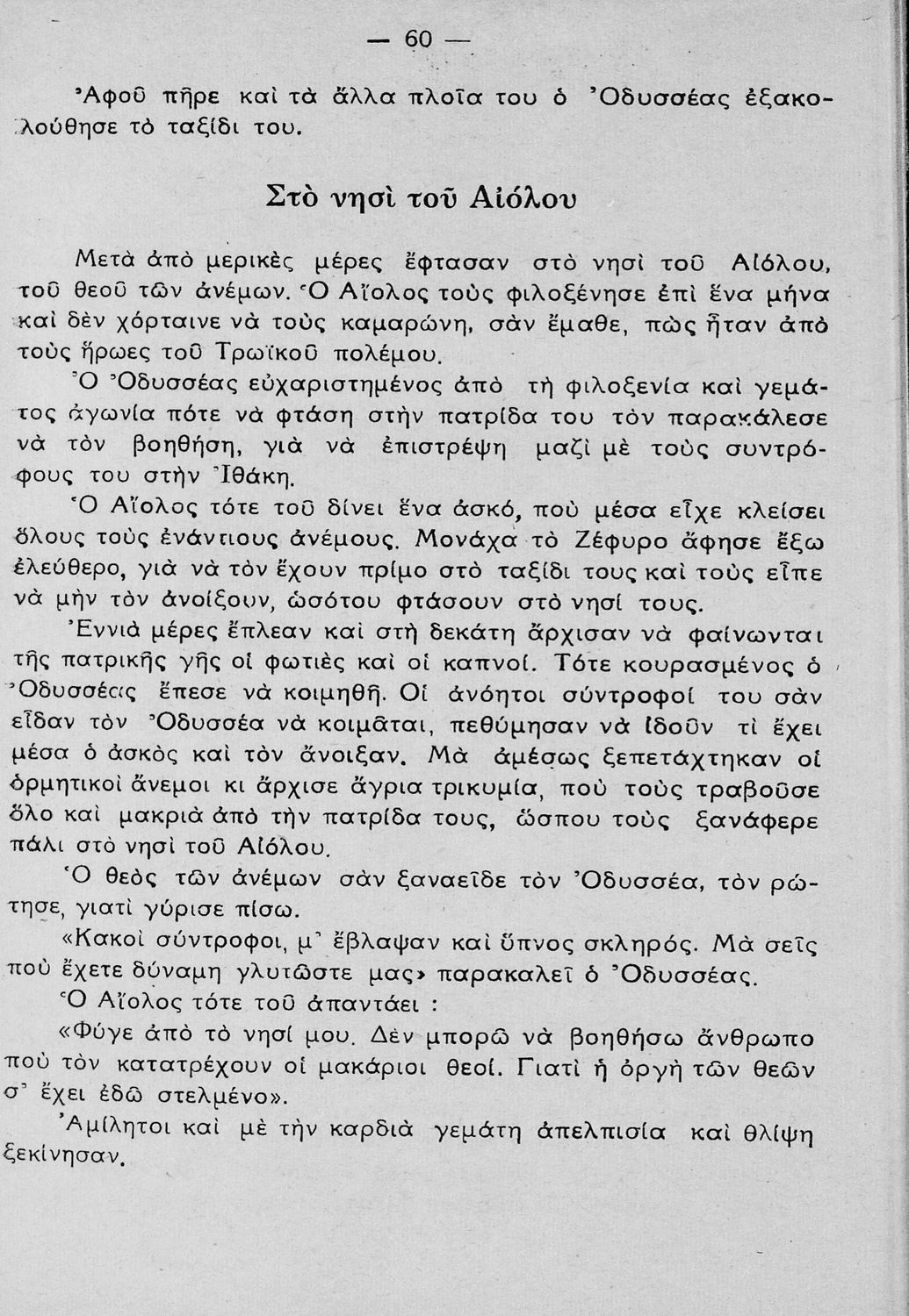Μαθητικό βοήθημα της Γ΄ Δημοτικού για το μάθημα της Ιστορίας. Το σύγγραμμα αναφέρεται στην ελληνική μυθολογία. Τα αποσπάσματα από την Οδύσσεια του Ομήρου είναι από τη μετάφραση του Εφταλιώτη.