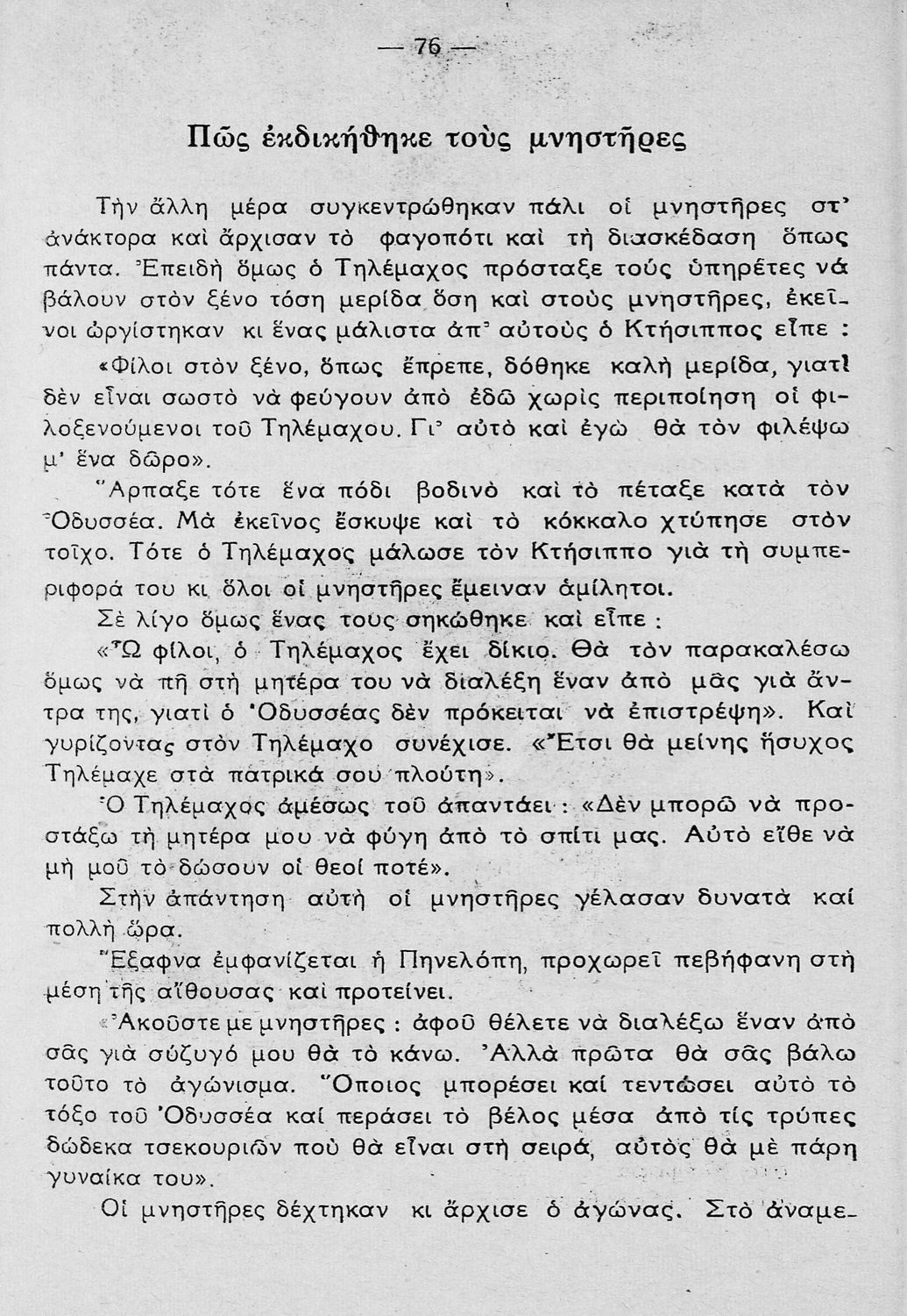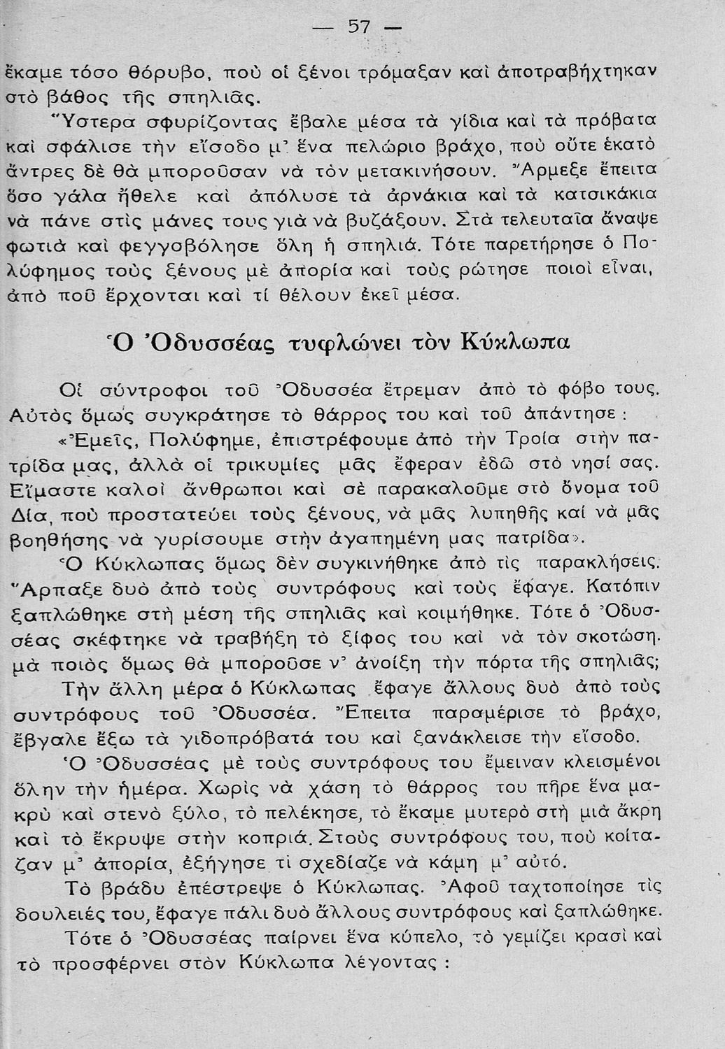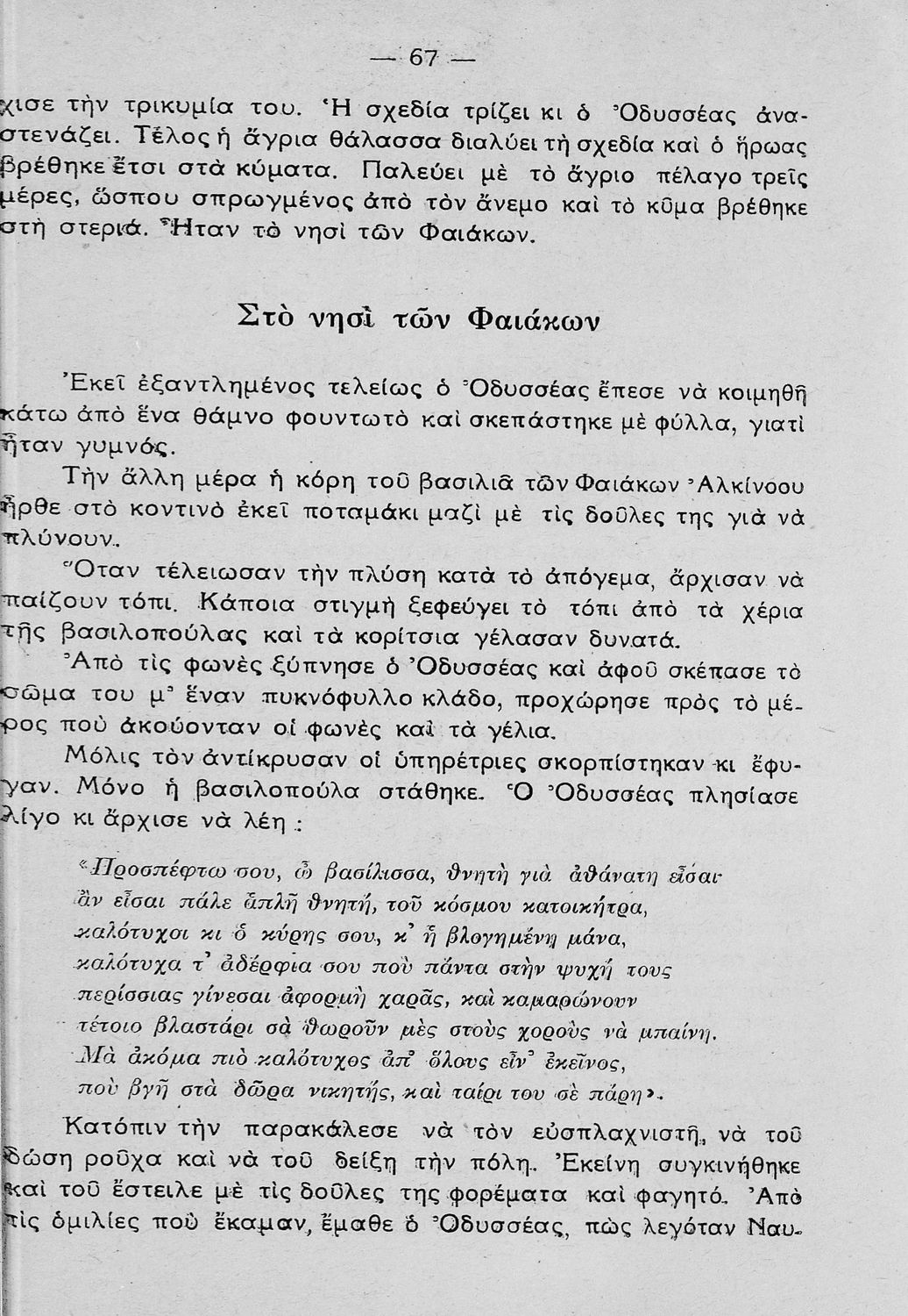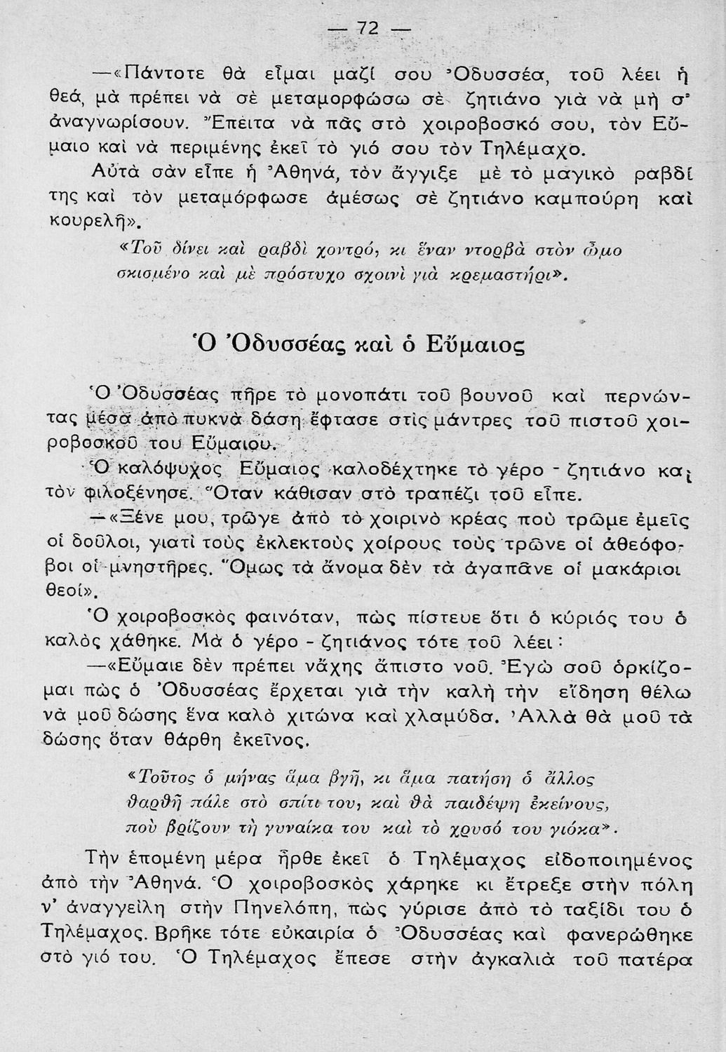 Μαθητικό βοήθημα της Γ΄ Δημοτικού για το μάθημα της Ιστορίας. Το σύγγραμμα αναφέρεται στην ελληνική μυθολογία. Τα αποσπάσματα από την Οδύσσεια του Ομήρου είναι από τη μετάφραση του Εφταλιώτη.