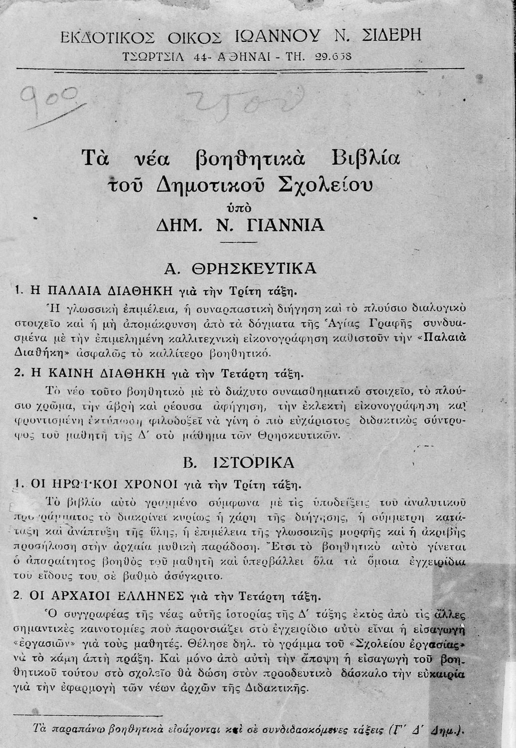 Εκδότης: Ιωάννης Ν. Σιδέρης Έτος έκδοσης: 1946 Τόπος έκδοσης: Αθήνα Έκδοση: 2η |