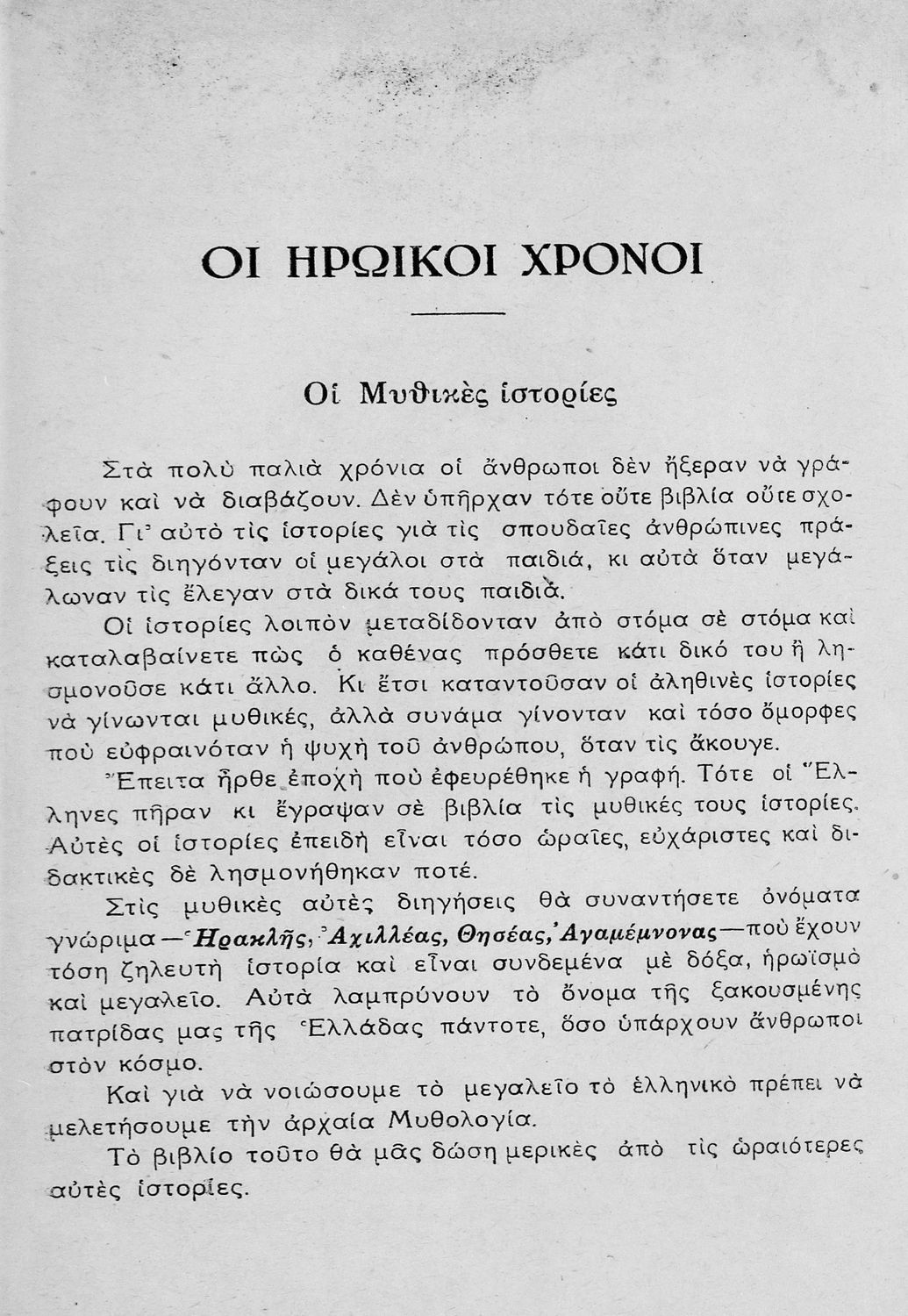 Μαθητικό βοήθημα της Γ΄ Δημοτικού για το μάθημα της Ιστορίας. Το σύγγραμμα αναφέρεται στην ελληνική μυθολογία. Τα αποσπάσματα από την Οδύσσεια του Ομήρου είναι από τη μετάφραση του Εφταλιώτη.