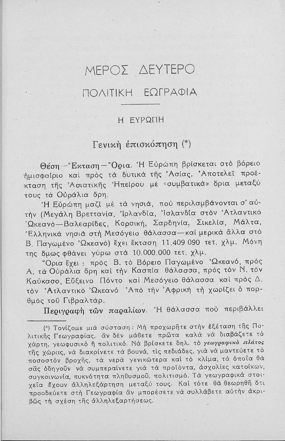 Βαθμίδα εκπαίδευσης: Πρωτοβάθμια Τάξη: ΣΤ' Δημοτικού Μάθημα: Γεωγραφία Γλώσσα: Δημοτική Παρουσίαση περιεχομένου: Μαθητικό βοήθημα Γεωγραφίας ΣΤ΄ Γυμνασίου που περιέχει στοιχεία φυσικής και μαθηματικής γεωγραφίας και εξετάζει τα κράτη της Ευρώπη από γεωφυσική, πολιτική και οικονομική άποψη. Περιλαμβάνει και στοιχεία ανθρωπογεωγραφίας. |