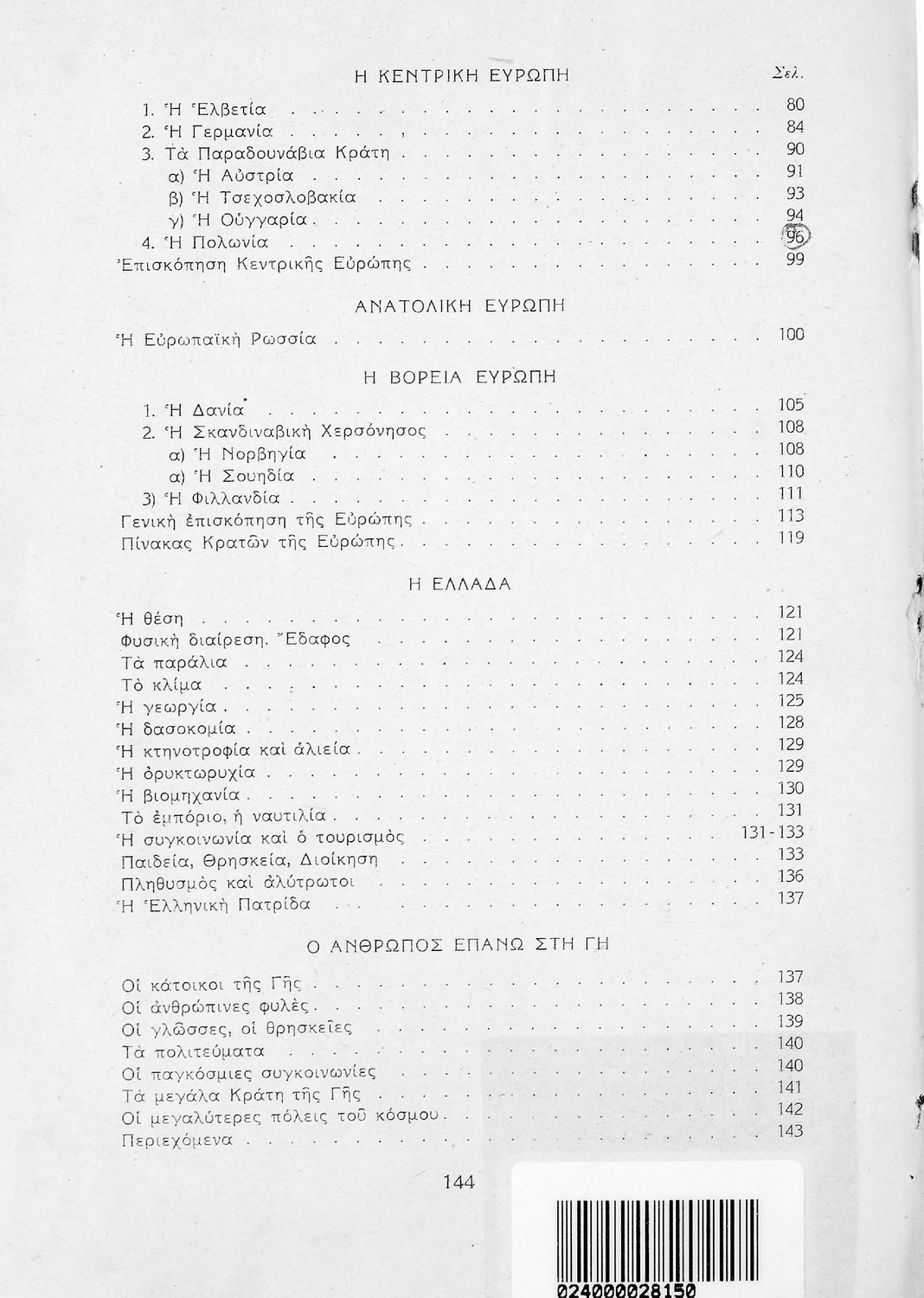 Μαθητικό βοήθημα Γεωγραφίας ΣΤ΄ Δημοτικού που περιλαμβάνει στοιχεία φυσικής και μαθηματικής γεωγραφίας και εξετάζει τα κράτη της Ευρώπη από γεωμορφολογική, οικονομική και πολιτική άποψη. Περιέχει και στοιχεία ανθρωπογεωγραφίας.
