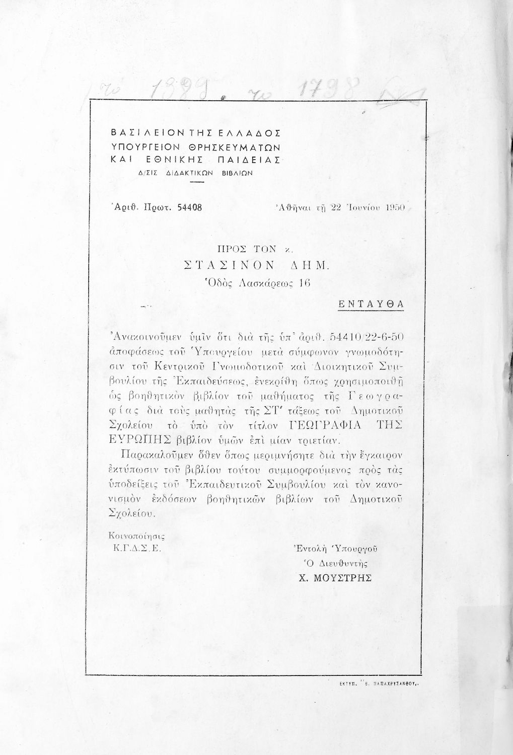 Υπουργική απόφαση / Σύμβαση: 54408/22-6-1950