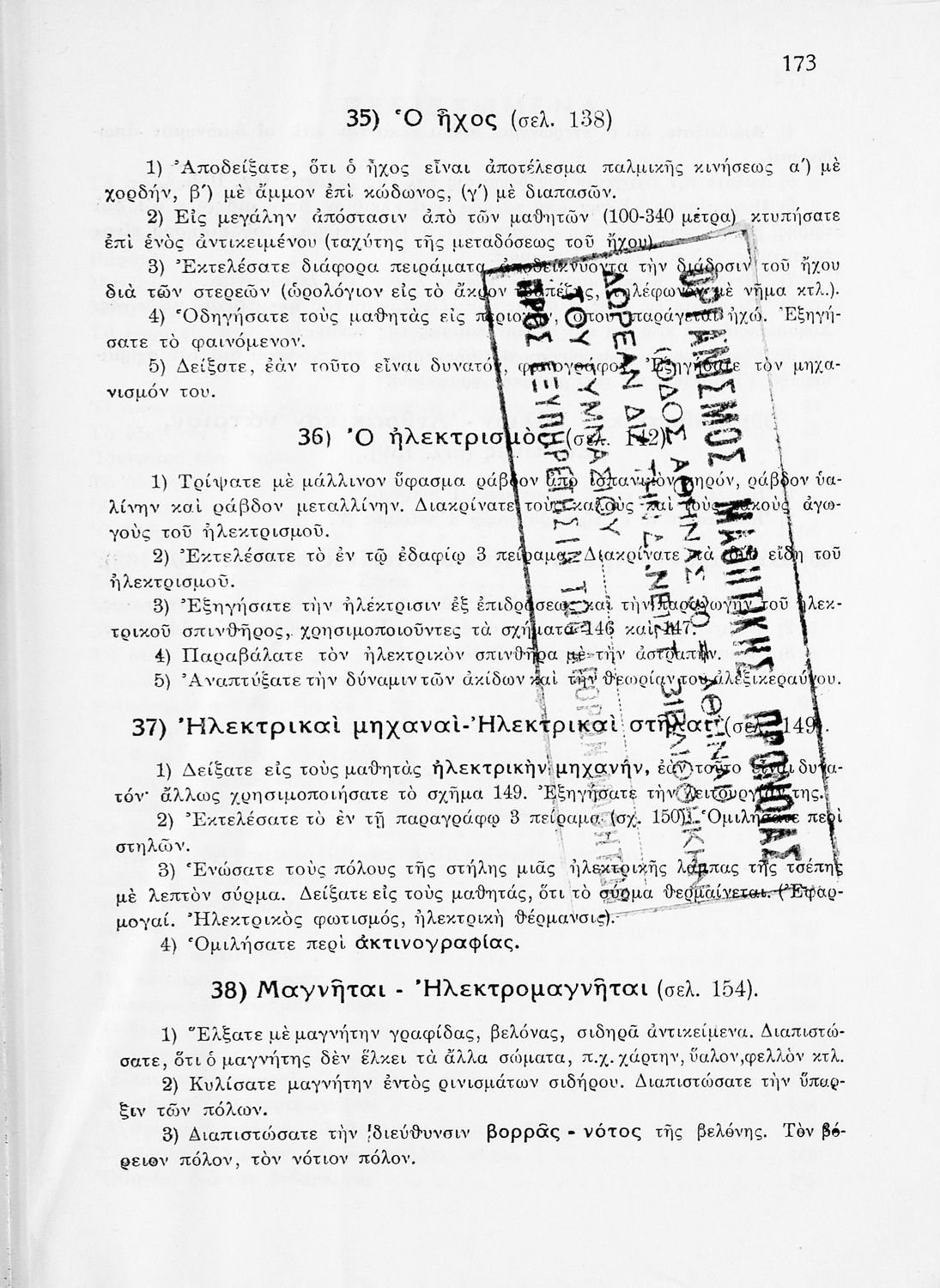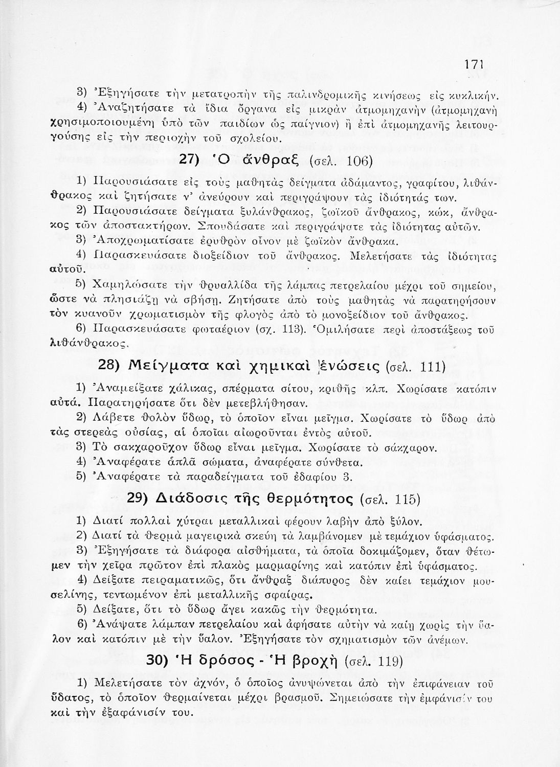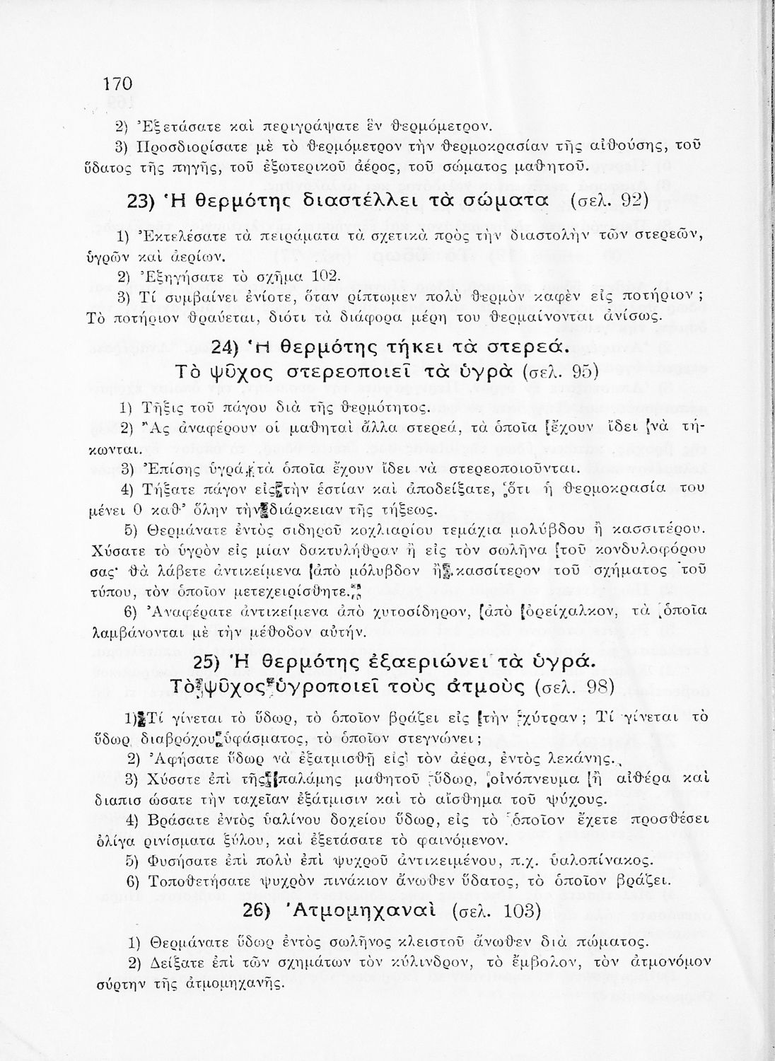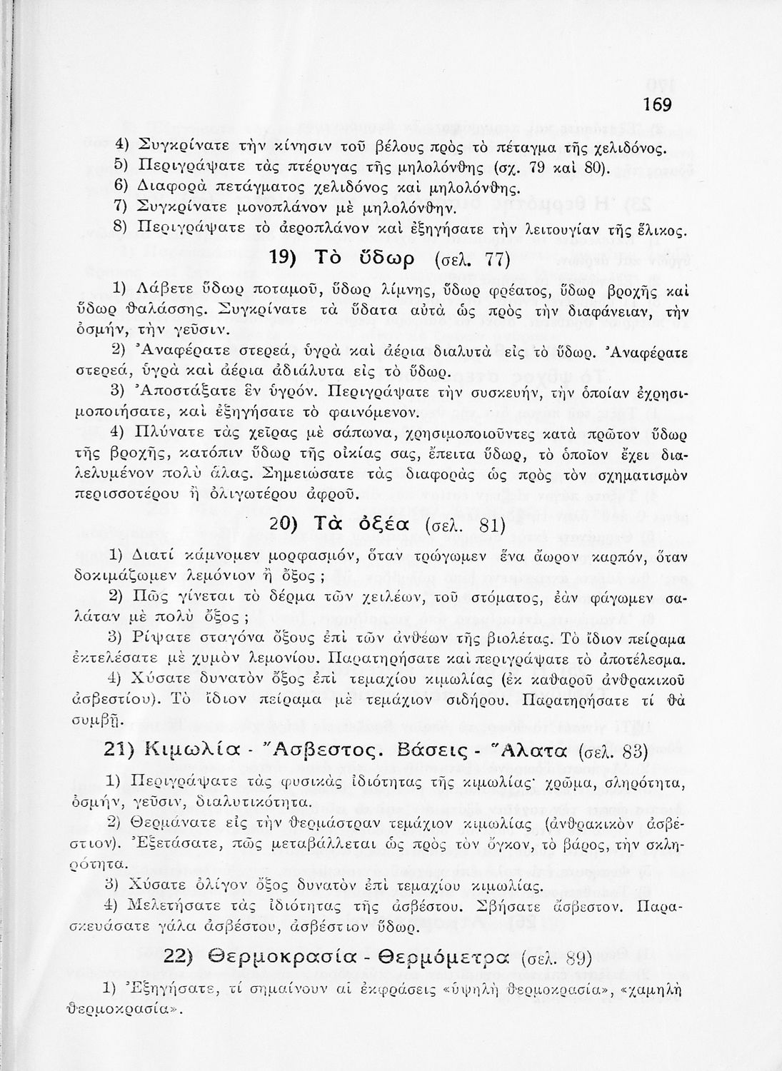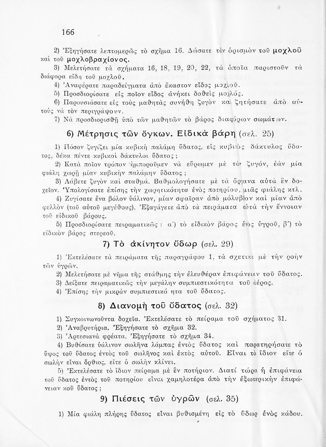 Σχολικό εγχειρίδιο Φυσικής και Χημείας που προσδιορίζει τη μηχανική στερεών σωμάτων, αναφέρει τις ιδιότητες ποικίλων στοιχείων της φύσης (οξυγόνο, υδρογόνο, αέρα, νερό) περιγράφοντας τις χημικές ενώσεις που ...