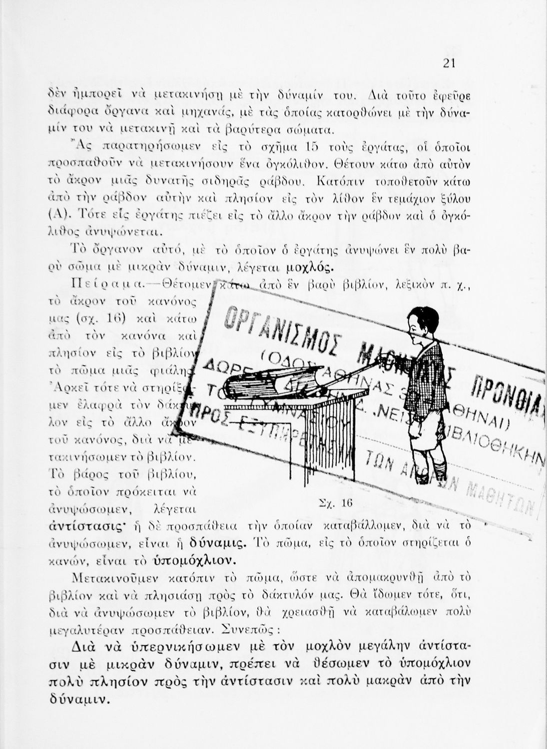 LDR 01812 2200193 4500 035 ## _a01-18655 040 ## _aΙνστιτούτο Εκπαιδευτικής Πολιτικής 041 ## _ael 100 ## _aΔιον. Π. Λεονταρίτης 110 ## _a18655 245 0# _aΣτοιχεία Φυσικής και Χημείας δια την Α΄ Τάξιν των Γυμνασίων 260 ## _aΑθήνα _bΟργανισμός Εκδόσεως Σχολικών Βιβλίων _c1946 300 ## _a175 _bΣκίτσα, σχεδιαγράμματα (ασπρόμαυρα) 520 ## _aΣχολικό εγχειρίδιο της Α΄ Γυμνασίου για το μάθημα της Φυσικής. Παρέχει βασικές γνώσεις της φυσικής επιστήμης. Αναλύει τα φαινόμενα της αδράνειας, της βαρύτητας, της υδροστατικής πίεσης κ.α. Όσον αφορά τη χημεία αναφέρεται στις ιδιότητες των μετάλλων, τα οξέα, τις βάσεις και τα άλατα. Αναφέρεται στην πρακτική εφαρμογή της φυσικής και της χημείας στην καθημερινότητά. Επίσης, περιλαμβάνει πολλά από τα όργανα, που χρησιμοποιούνται στη φυσική. Περιέχει εικόνες και σχεδιαγράμματα τα οποία βοηθούν τη διδασκαλία. 521 ## _aΑ' Γυμνασίου 522 ## _aΕλλάδα 546 ## _aΑπλή καθαρεύουσα 563 ## _aΜαλακό Εξώφυλλο 650 #4 _aΑδράνεια _aΆλατα _aΑτμομηχανές _aΒαρύτητα _aΠίεση _aΣτοιχεία _aΦυγόκεντρος δύναμη