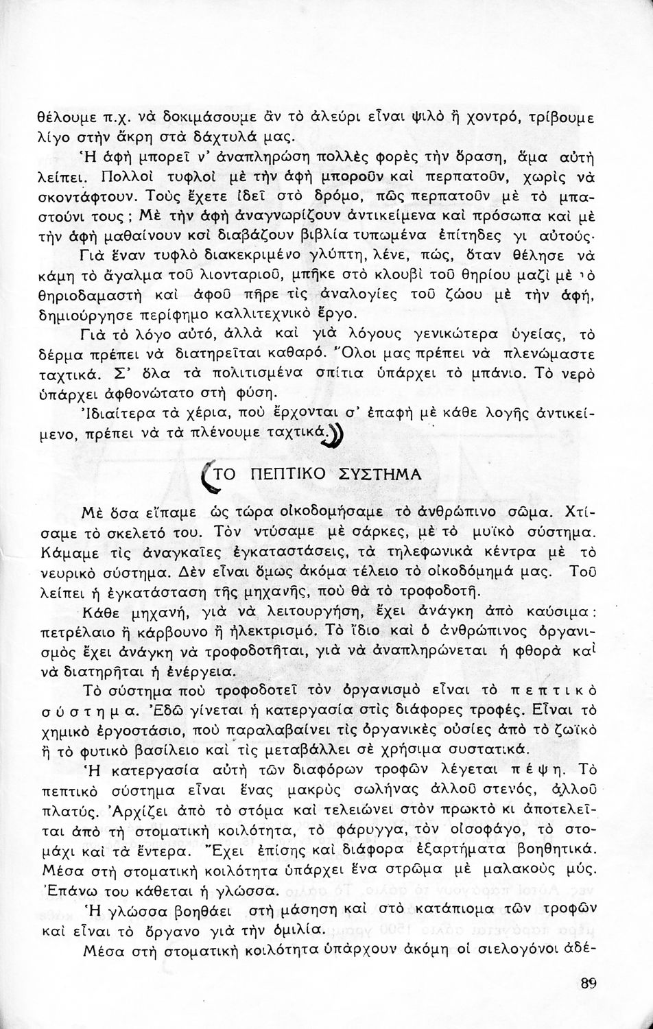 Αναγνωστικό ΣΤ΄ Δημοτικού που αντλεί τα θέματά του από τη θρησκευτική, εθνική, οικογενειακή, κοινωνική και επαγγελματική ζωή και την σύγχρονη ελληνική ιστορία. Φέρει το σύμβολο της δικτατορίας.