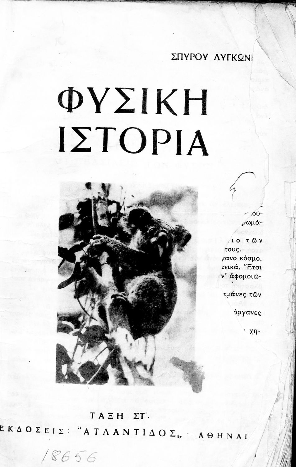 Κωδικός αναγνώρισης: 01-18656 Τίτλος: Φυσική Ιστορία. ΣΤ΄ Δημοτικού Συγγραφέας: ΣΠ. Λυγκώνης Μέγεθος και υπόστρωμα: Μαθητικό βοήθημα, μαλακό εξώφυλλο, 101 σελίδες. Εικόνες (ασπρόμαυρες), σκίτσα (ασπρόμαυρα). |