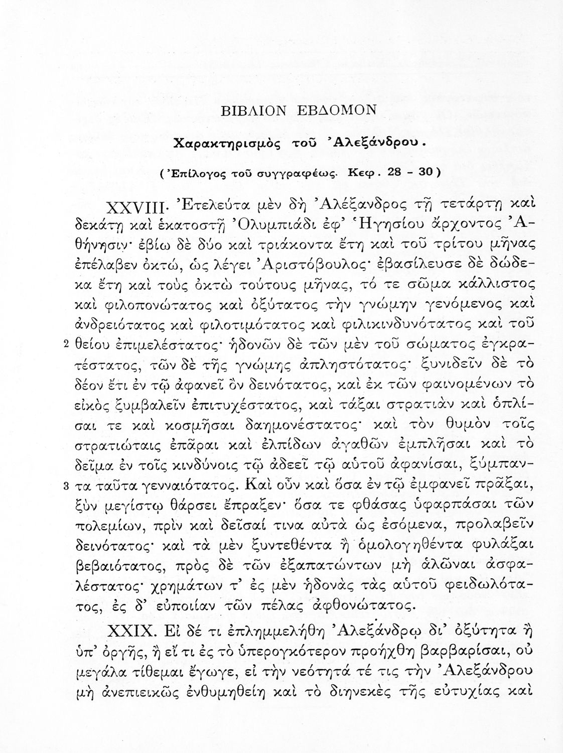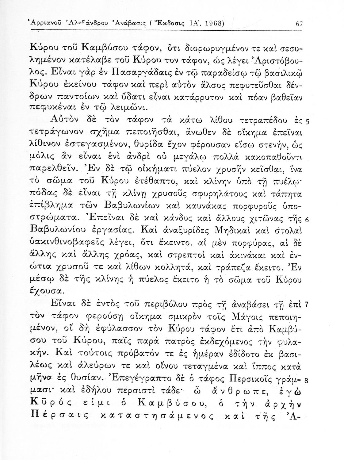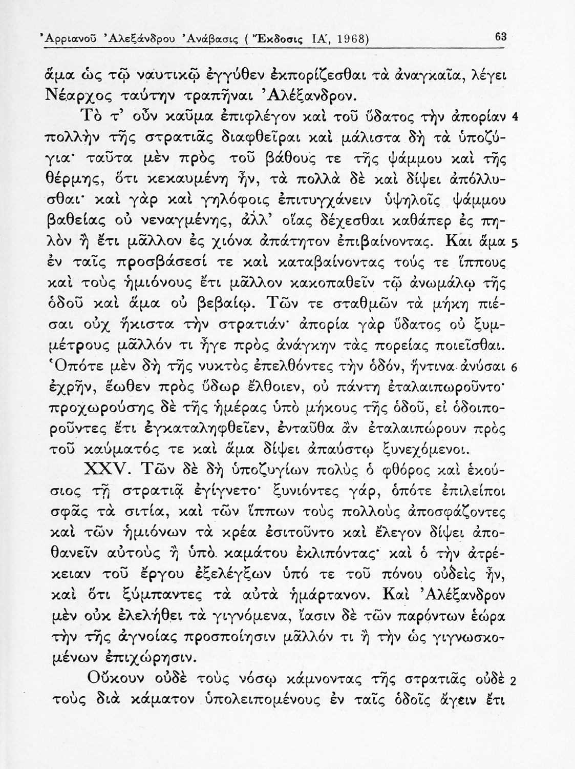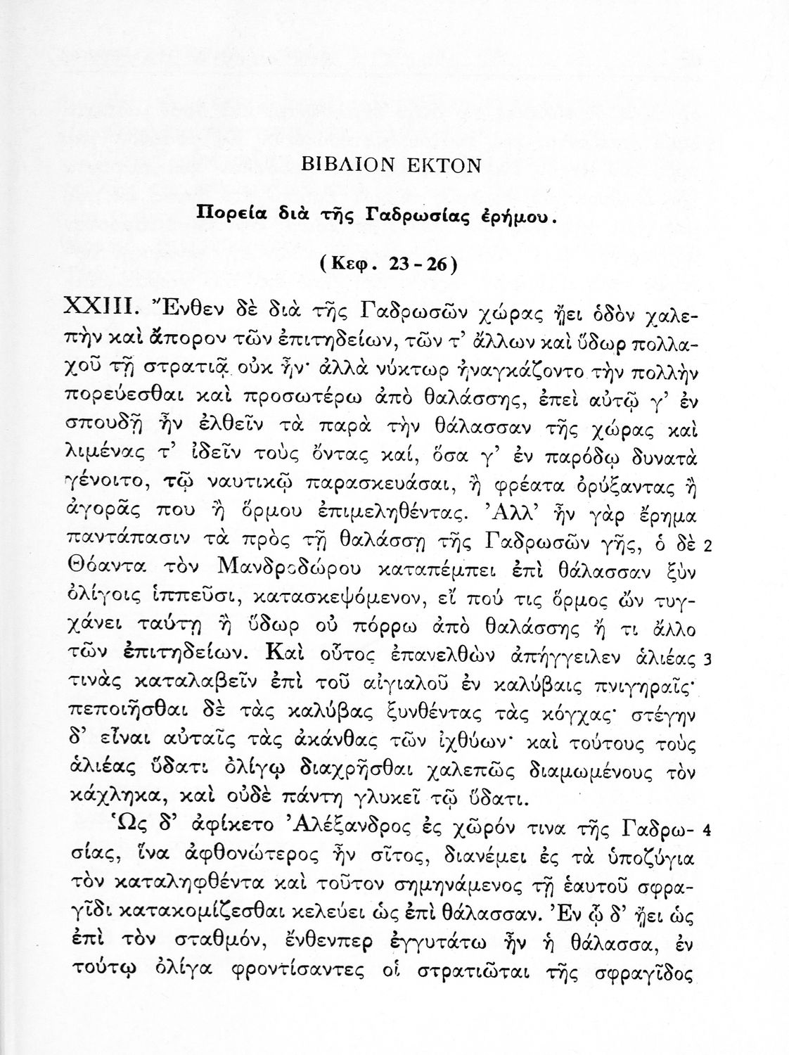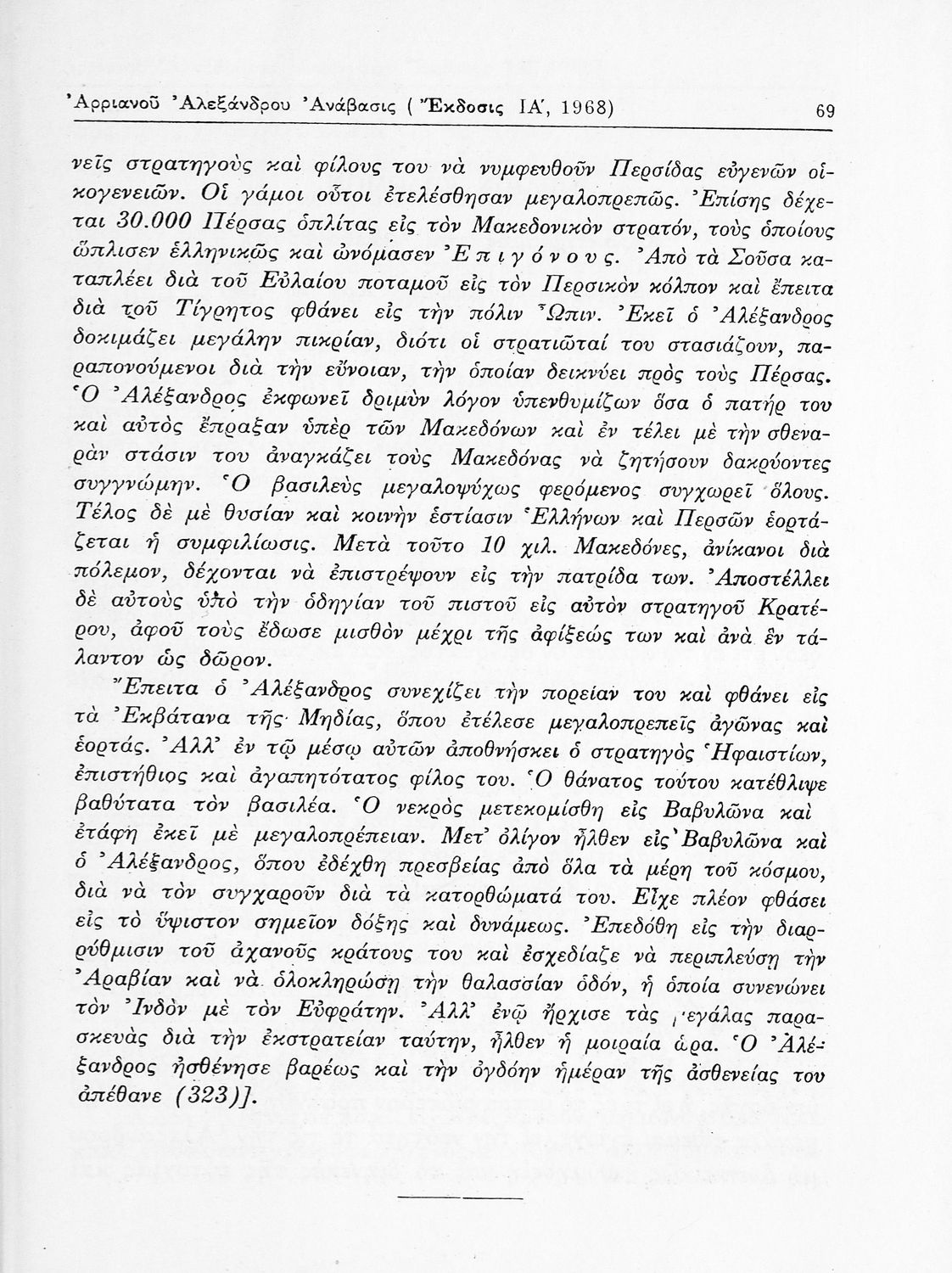Σχολικό εγχειρίδιο Αρχαίων Ελληνικών που περιλαμβάνει αποσπάσματα από το έργο του Αρριανού Αλέξανδρου Ανάβασις και του Ηρόδοτου Ιστορίαι, ερμηνευτικές και λεξιλογικές παρατηρήσεις καθώς και τοπογραφικούς πίνακες και χάρτες..