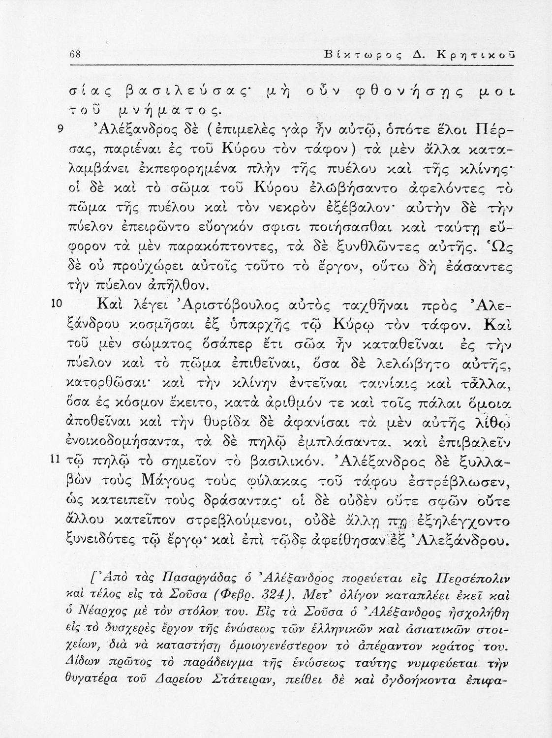 Αρριανός (Lucius Flavius Arrianus), Ηρόδοτος, Βίκτωρος Δ. Κρητικός, Κυριάκος Κοσμάς (σχόλια)