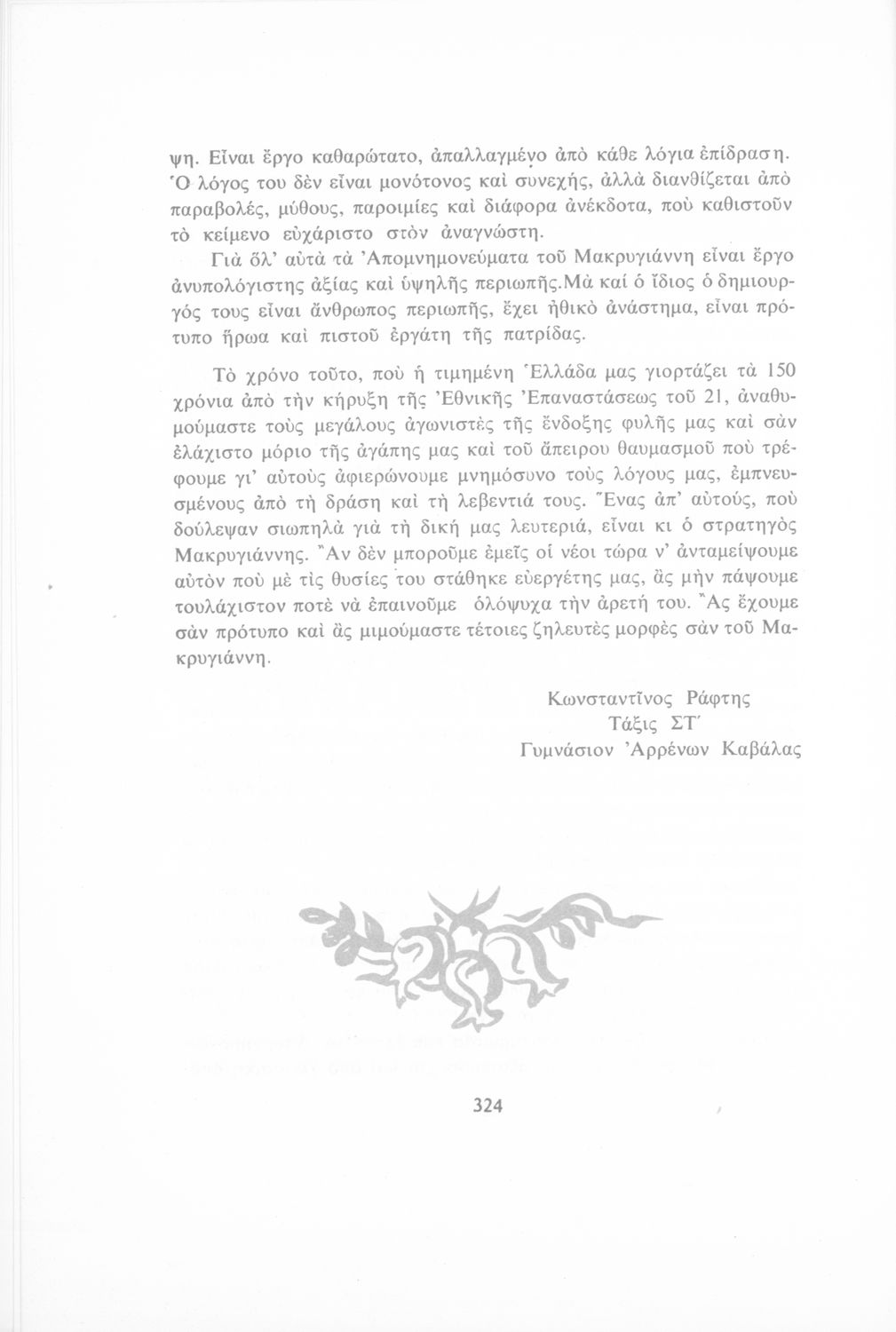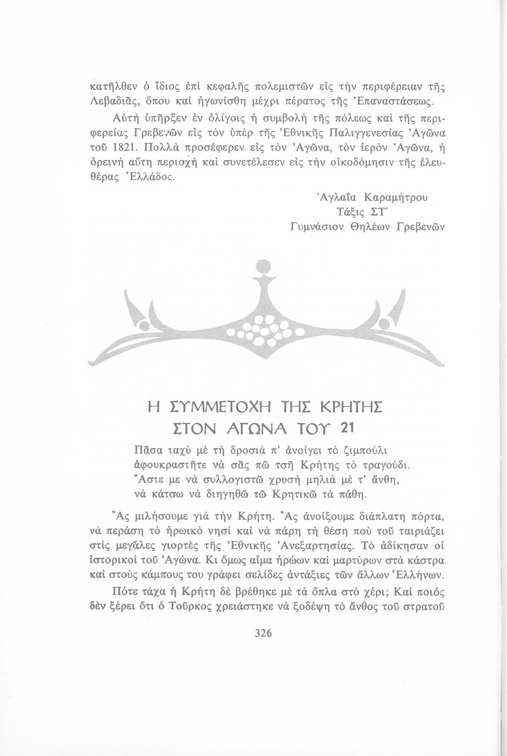 Έκδοση του Υπουργείου Εθνικής Παιδείας και Θρησκευμάτων που περιέχει κείμενα μαθητών και συγγραφέων με θέμα την Ελληνική Επανάσταση του ΄ 21. Περιλαμβάνει και σχέδια από την Α΄ Πανελλήνια Έκθεση των σχολείων Μ.Ε. του 1971.