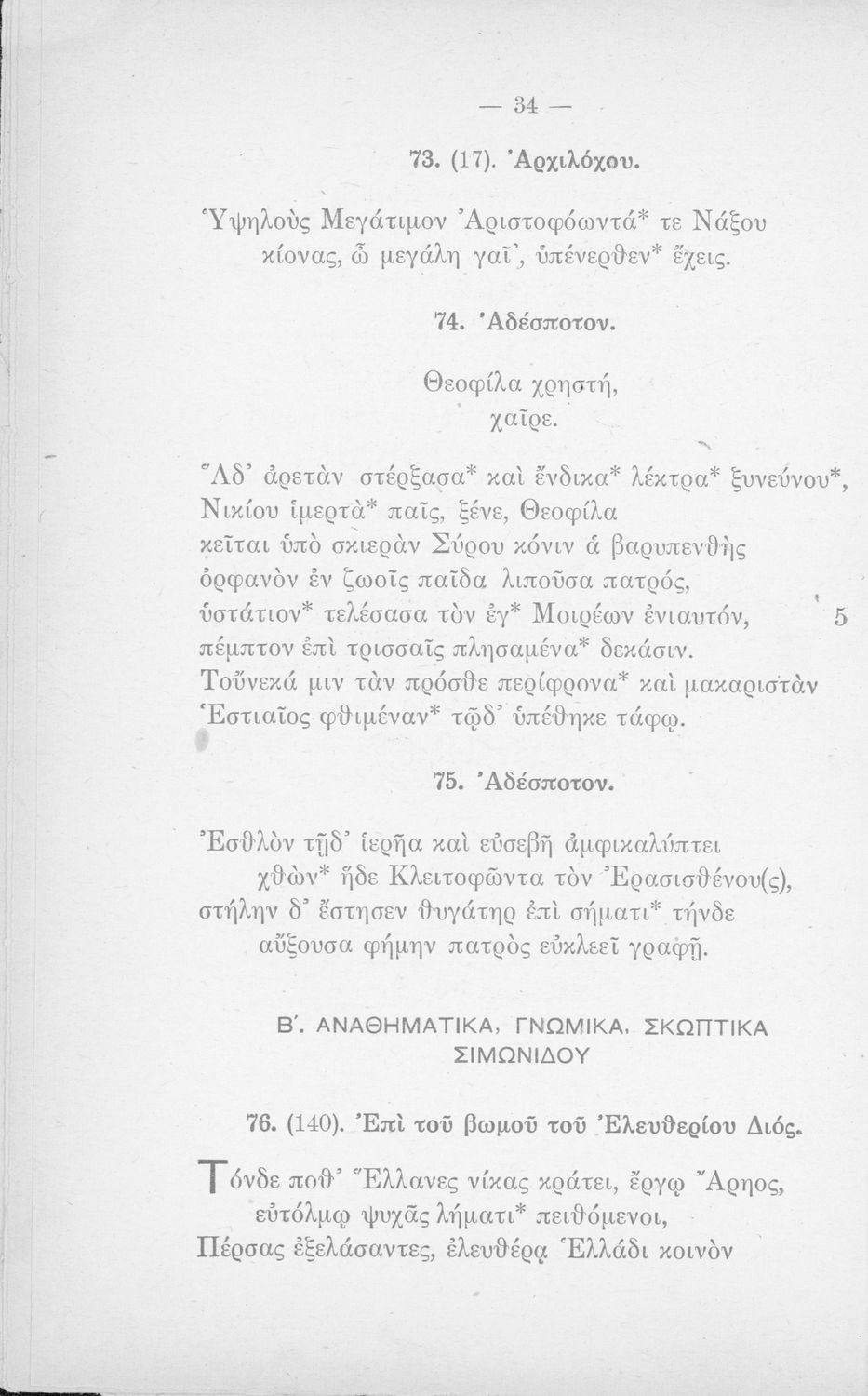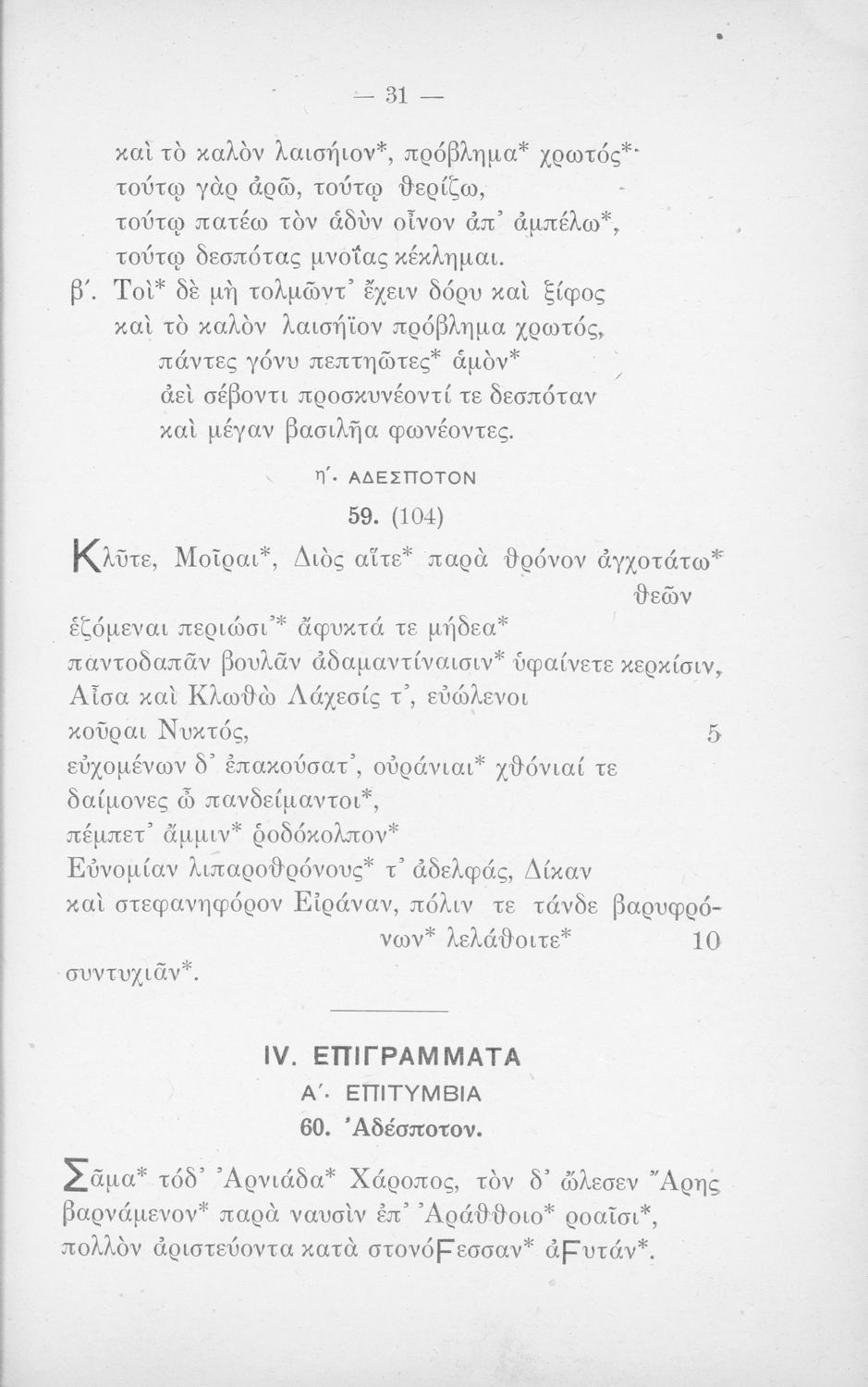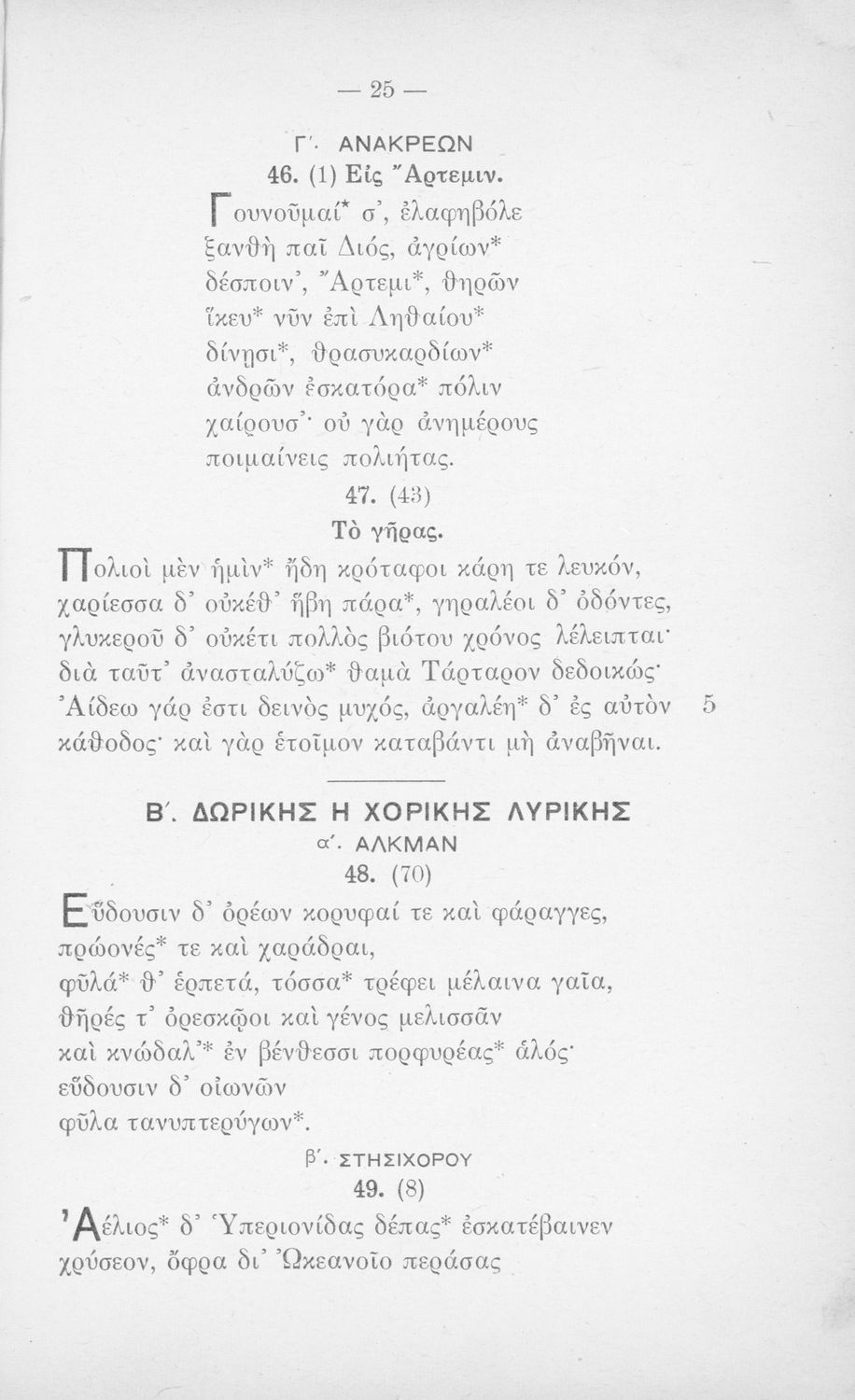 Σχολικό εγχειρίδιο Νέων Ελληνικών για τους μαθητές των Διδασκαλείων. Περιλαμβάνει ποιήματα Ελλήνων λογοτεχνών. Στο τέλος του βιβλίου υπάρχουν βιογραφίες των ποιητών.