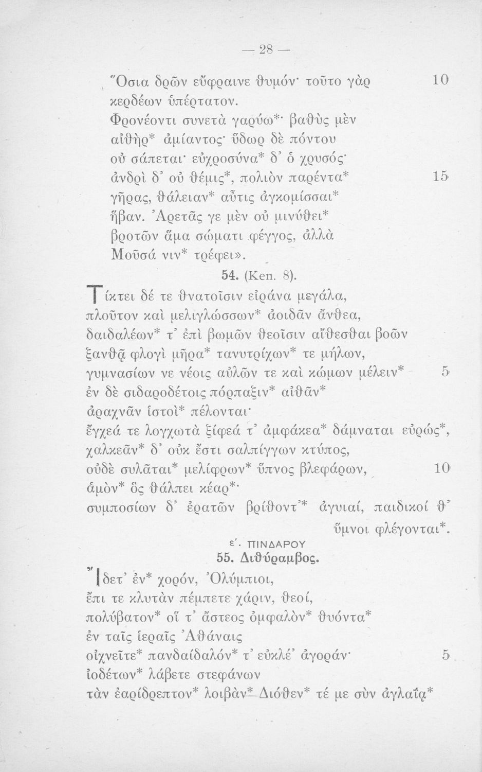 Σχολικό εγχειρίδιο Αρχαίων Ελληνικών Ε΄ Γυμνασίου που περιλαμβάνει αποσπάσματα από έργα αρχαίων Ελλήνων και χριστιανών ποιητών, και λεξιλόγιο