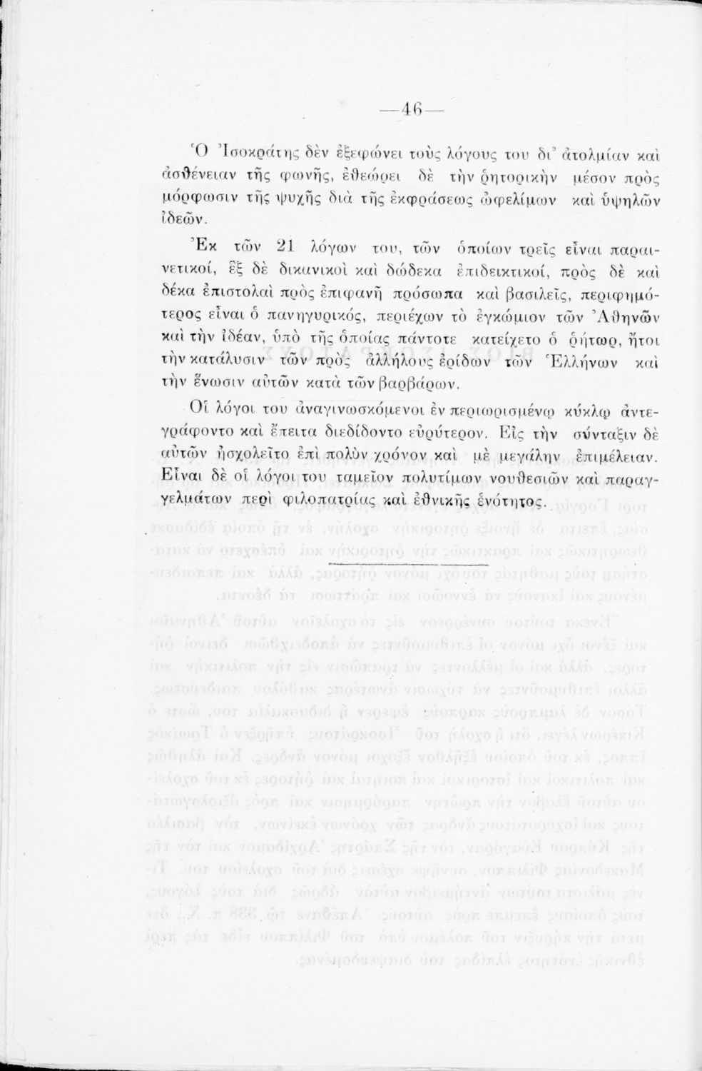 Σχολικό εγχειρίδιο Αρχαίων Ελληνικών Γ΄ Γυμνασίου που περιλαμβάνει μετάφραση του Λόγου του Ισοκράτη Πανηγυρικός, εισαγωγικά σχόλια για τη ζωή και το έργο του και ερμηνευτικά και πραγματολογικά σχόλια.