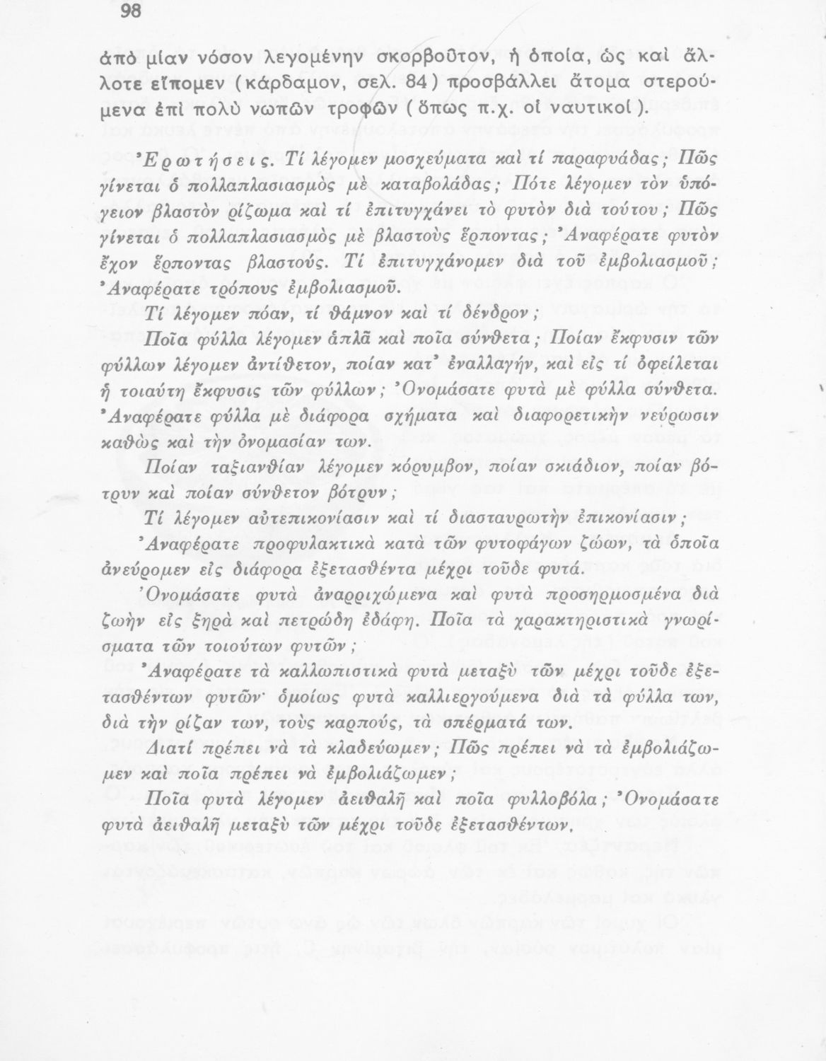 Σχολικό εγχειρίδιο Φυτολογίας για τη Β΄ τάξη των Εξαταξίων Γυμνασίων και Ημιγυμνασίων και τη Δ΄ τάξη των οκταταξίων Γυμνασίων που εξετάζει φυτά της Ελλάδας και παραθέτει στοιχεία γενικής φυτολογίας για την ...