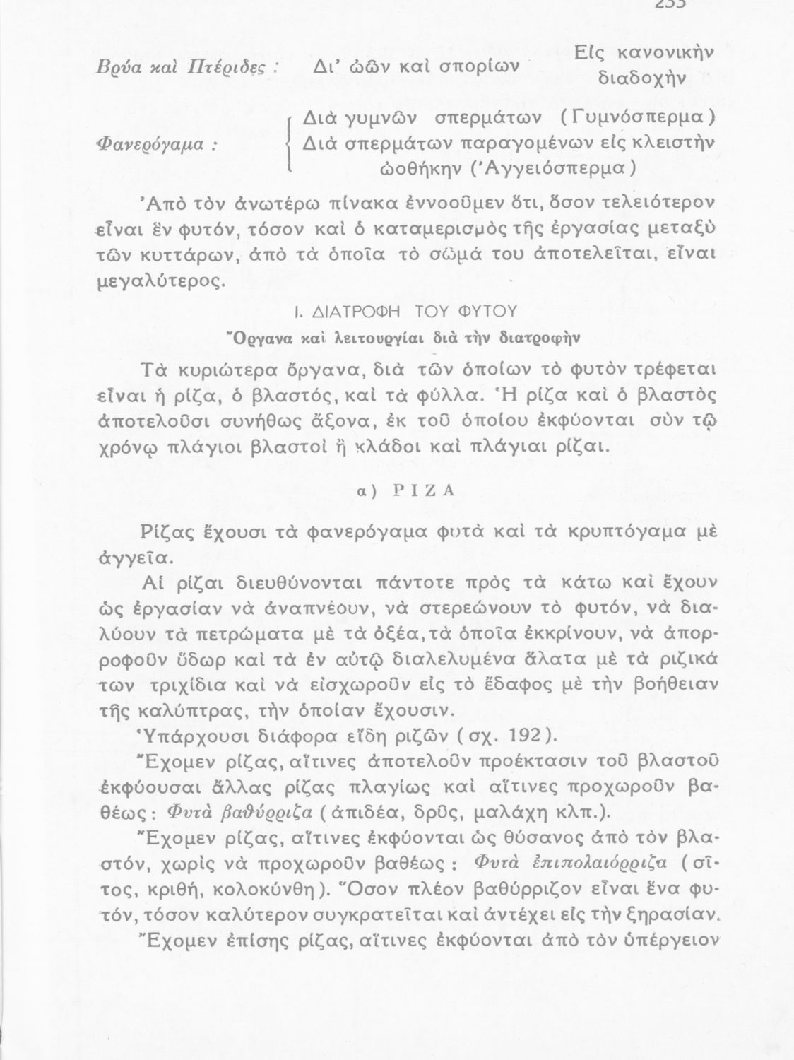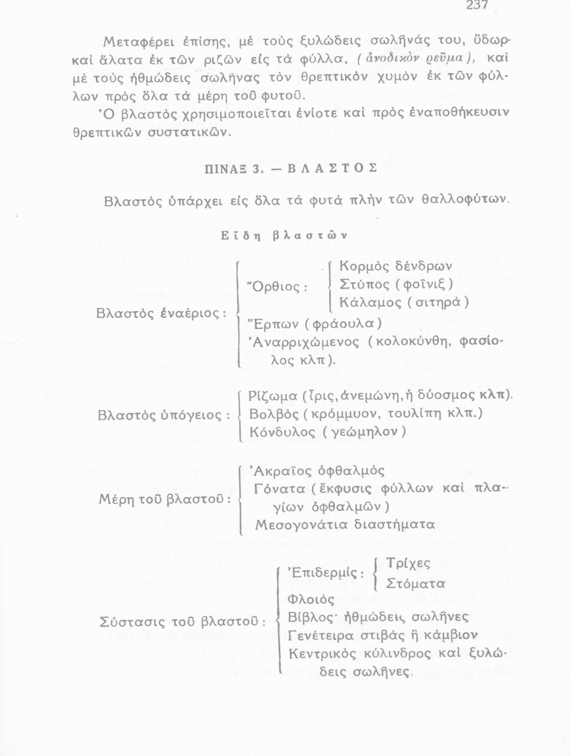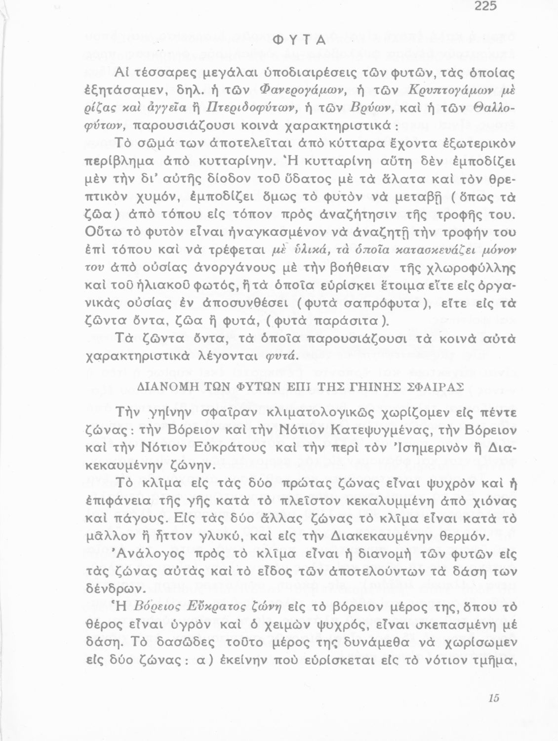 Σχολικό εγχειρίδιο Φυτολογίας που εξετάζει φυτά και δέντρα της Ελλάδας ανάλογα με τη συνομοταξία στην οποία ανήκουν και παρέχει πληροφορίες για την αναπαραγωγή τους και τη χρησιμότητά τους για τον άνθρωπο.
