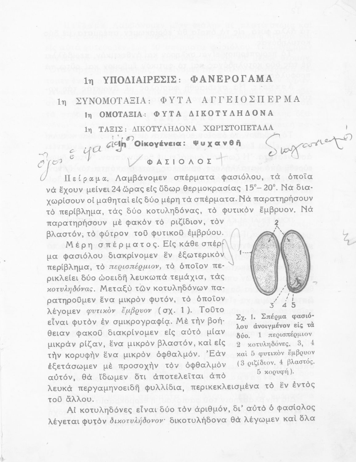Σχολικό εγχειρίδιο Φυτολογίας που εξετάζει φυτά και δέντρα της Ελλάδας ανάλογα με τη συνομοταξία στην οποία ανήκουν και παρέχει πληροφορίες για την αναπαραγωγή τους και τη χρησιμότητά τους για τον άνθρωπο.
