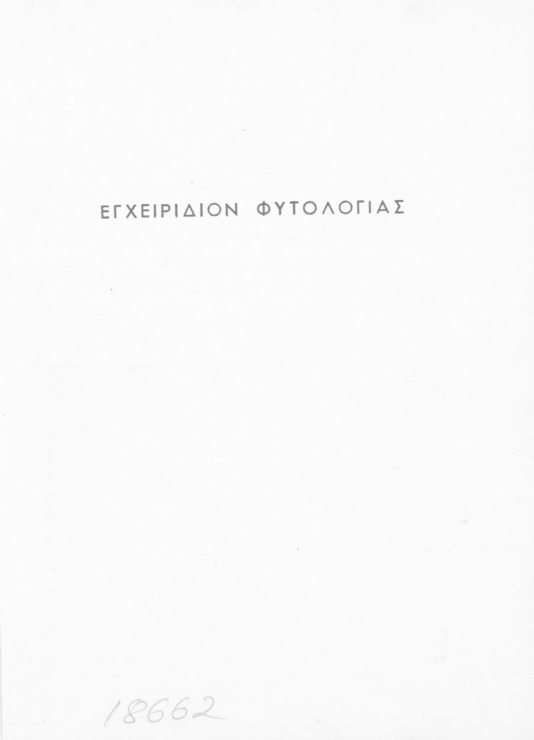 Κωδικός αναγνώρισης: 01-18662 Τίτλος: Εγχειρίδιον Φυτολογίας Συγγραφέας: Παναγιώτης Γαβρεσέας Μέγεθος και υπόστρωμα: Σχολικό εγχειρίδιο, σκληρό εξώφυλλο, 272 σελίδες. Εικόνες (ασπρόμαυρες), σκίτσα (ασπρόμαυρα). |