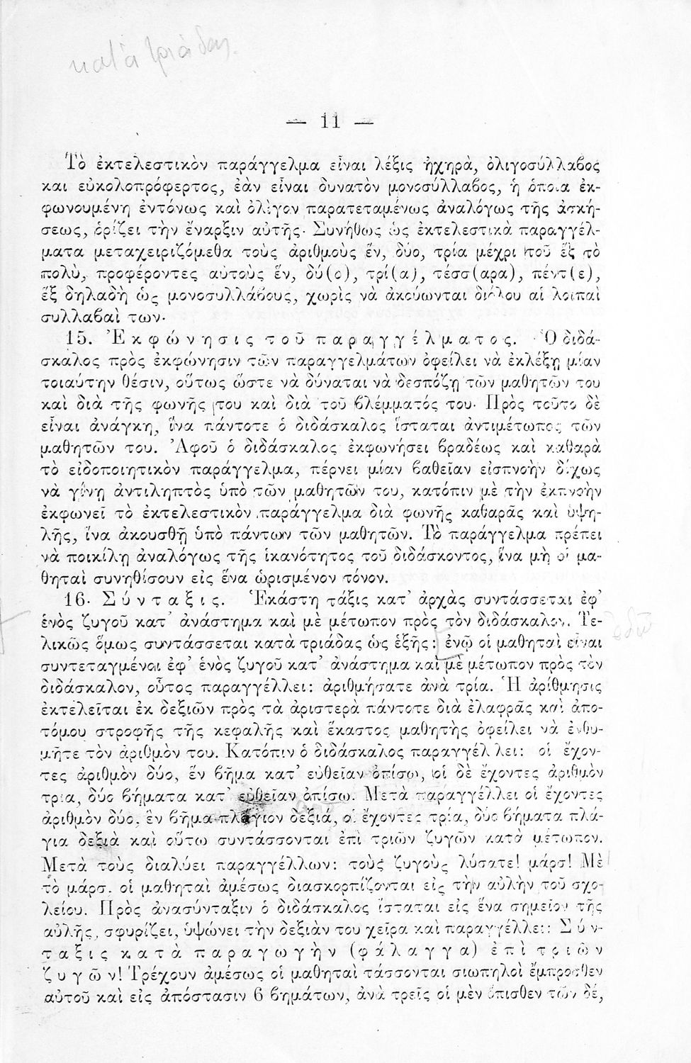 Παιδαγωγικό βοήθημα που απευθύνεται στους δημοδιδασκάλους με σκοπό να τους εξοικειώσει με τα συστήματα εκγύμνασης των μαθητών.