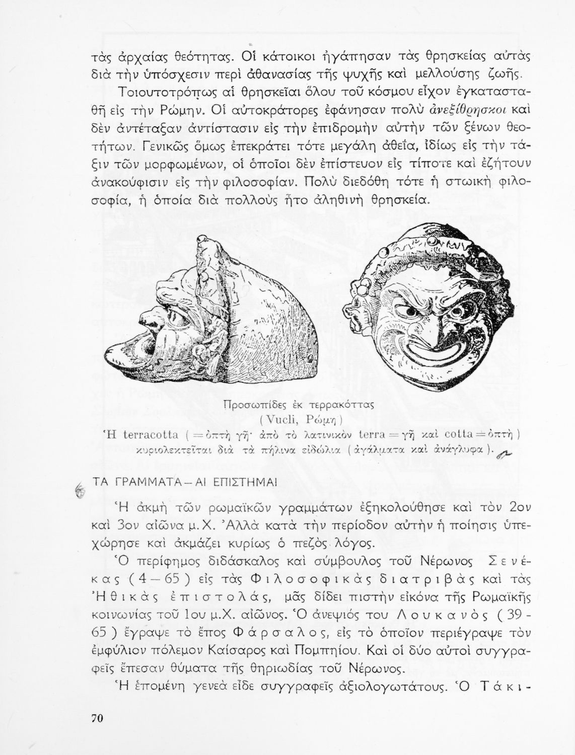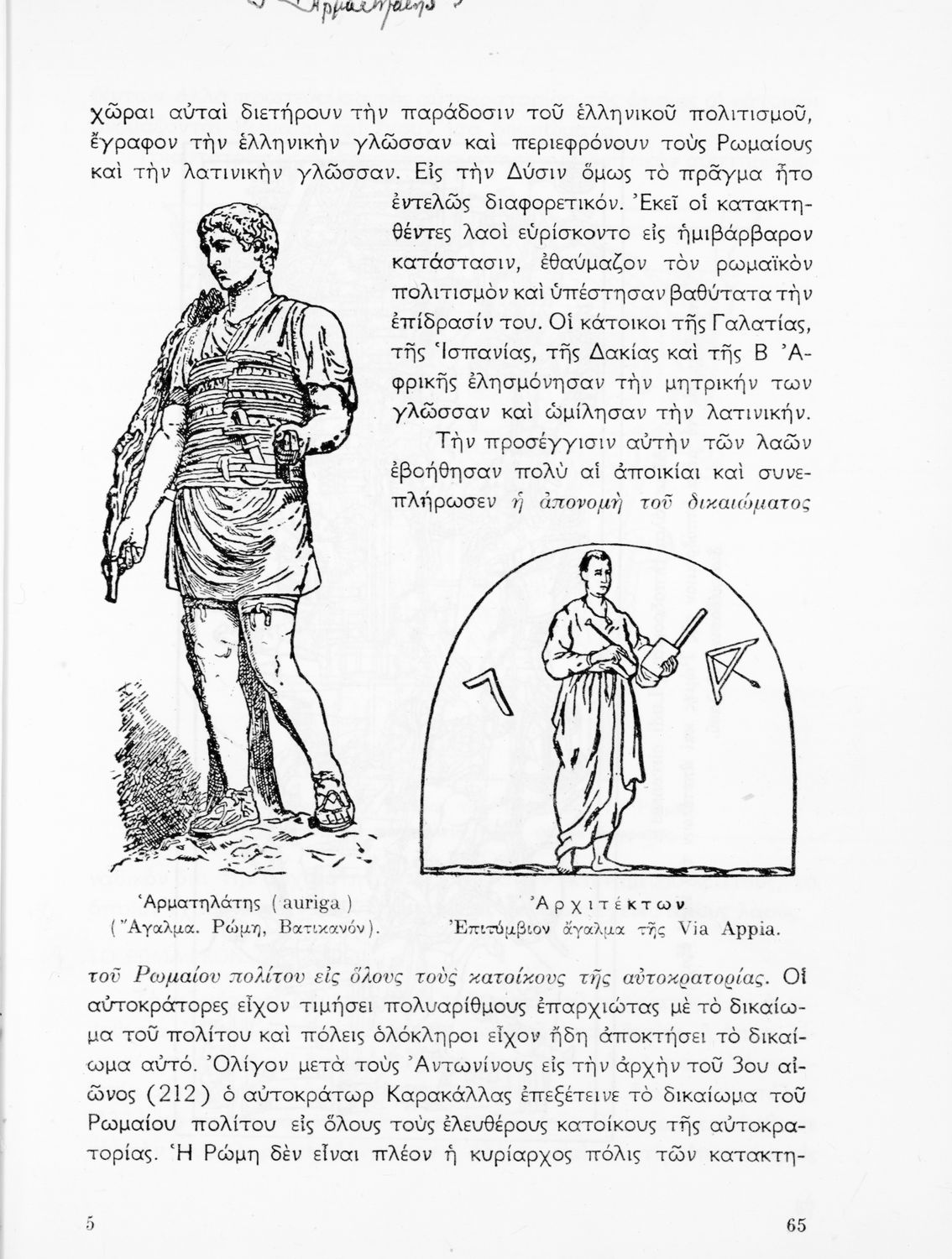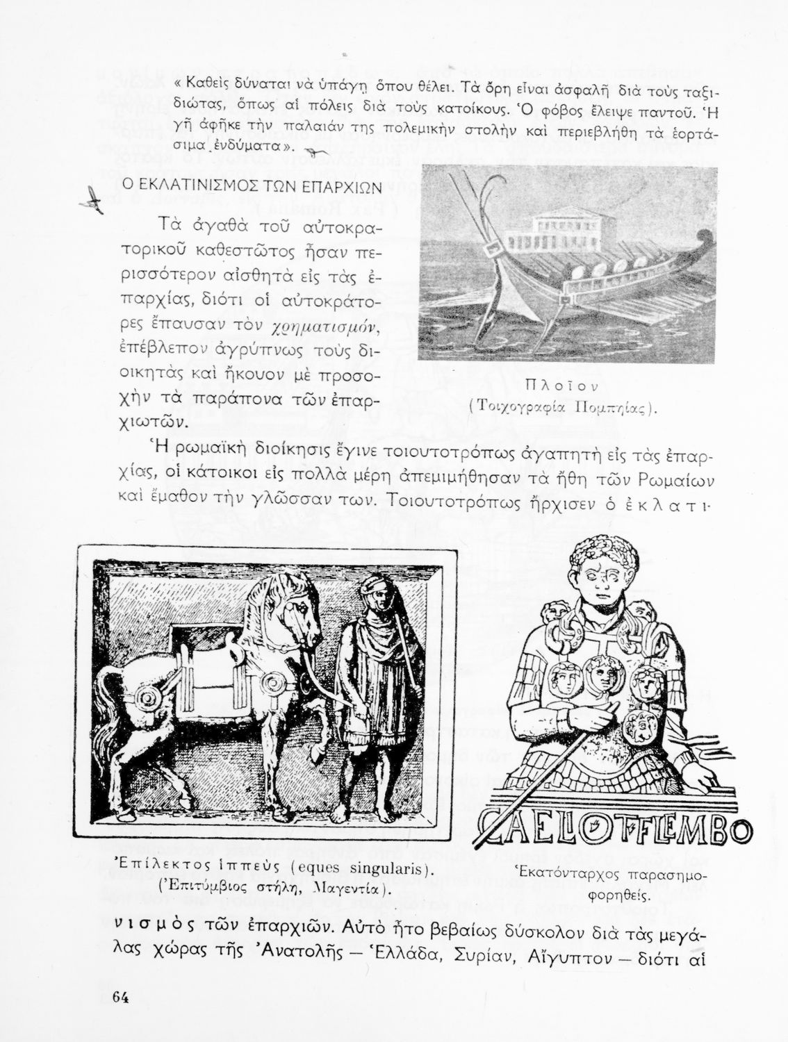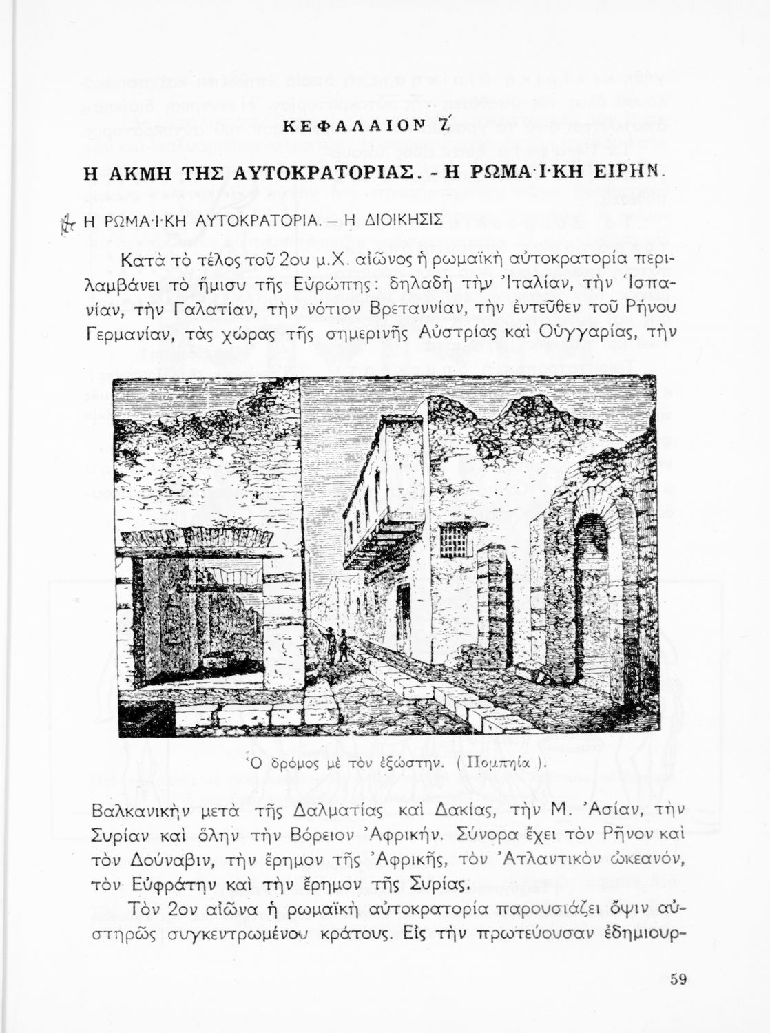 Βαθμίδα εκπαίδευσης: Δευτεροβάθμια Τάξη: Β' Γυμνασίου Μάθημα: Ιστορία Γλώσσα: Απλή καθαρεύουσα Παρουσίαση περιεχομένου: Σχολικό εγχειρίδιο Ιστορίας Β΄ Γυμνασίου που καλύπτει την χρονική περίοδο από την ίδρυση της ρωμαϊκής αυτοκρατορίας μέχρι την άλωση της Κωνσταντινούπολης και αναλύει τη σχέση χριστιανισμού και ελληνισμού. |