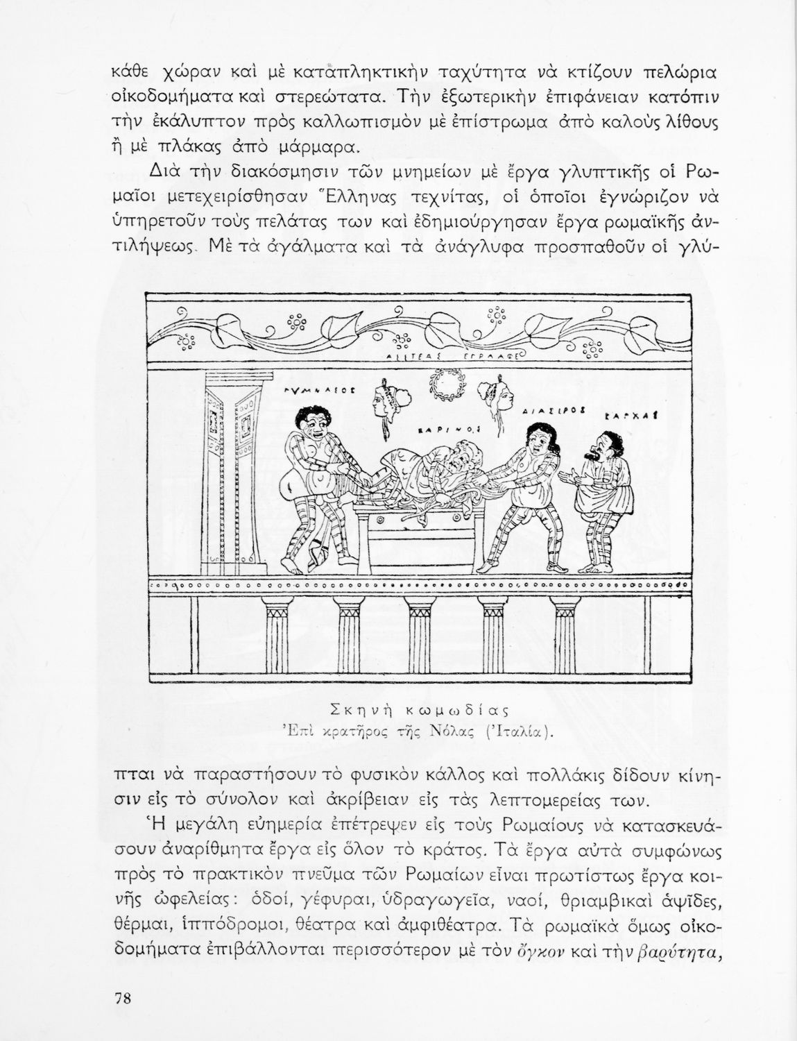 Κωδικός αναγνώρισης: 01-18666 Τίτλος: Επίδρασις του ελληνικού πολιτισμού εις τους Ρωμαίους. Β΄ Γυμνασίου Συγγραφέας: Α. Λαζάρου, Δ. Χατζής Εικονογράφος: Τάσος Χατζής Μέγεθος και υπόστρωμα: Σχολικό εγχειρίδιο, σκληρό εξώφυλλο, 110 σελίδες. Σκίτσα, χάρτης, εικόνες (ασπρόμαυρα). |