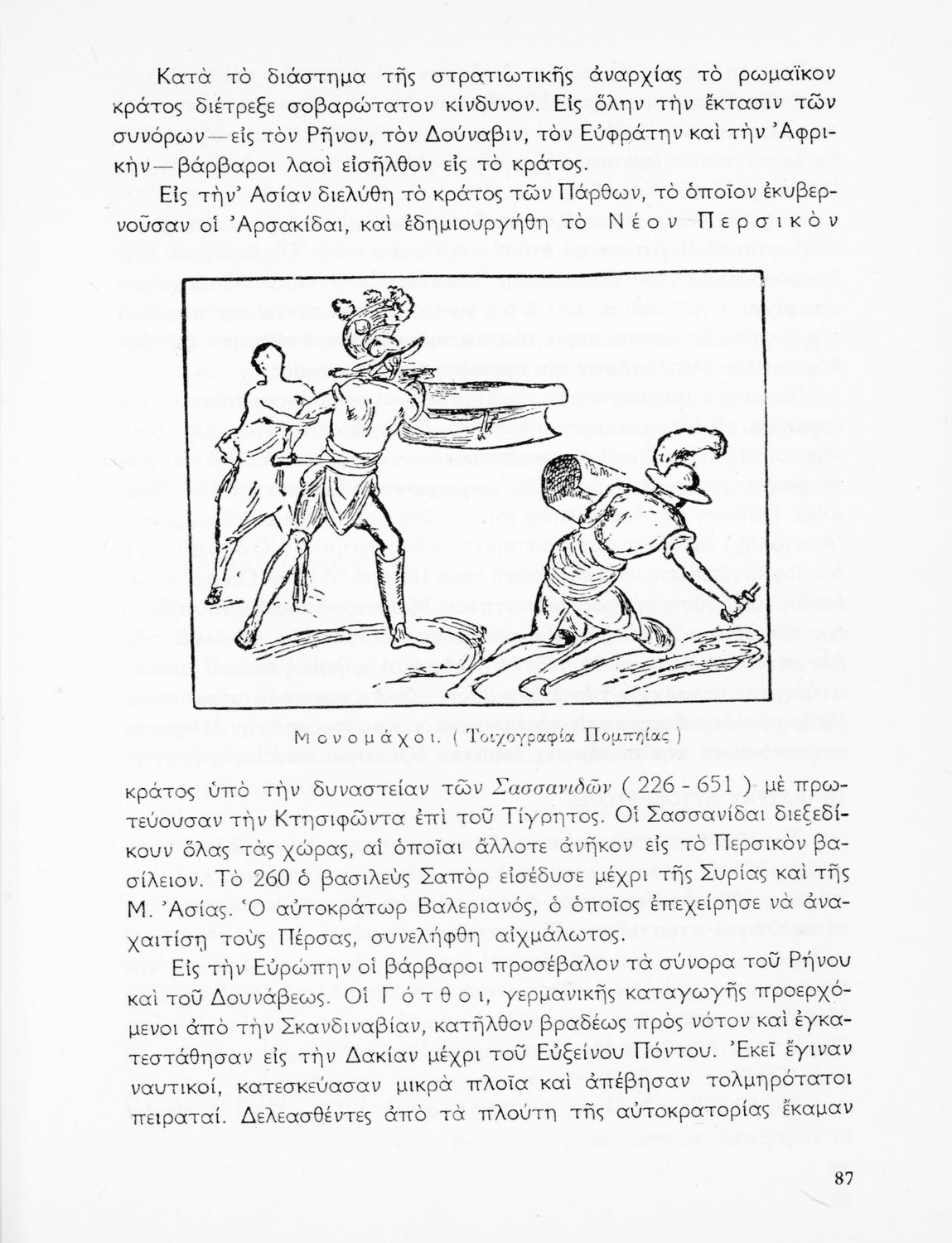 Βαθμίδα εκπαίδευσης: Δευτεροβάθμια Τάξη: Β' Γυμνασίου Μάθημα: Ιστορία Γλώσσα: Απλή καθαρεύουσα Παρουσίαση περιεχομένου: Σχολικό εγχειρίδιο Ιστορίας Β΄ Γυμνασίου που καλύπτει την χρονική περίοδο από την ίδρυση της ρωμαϊκής αυτοκρατορίας μέχρι την άλωση της Κωνσταντινούπολης και αναλύει τη σχέση χριστιανισμού και ελληνισμού. |