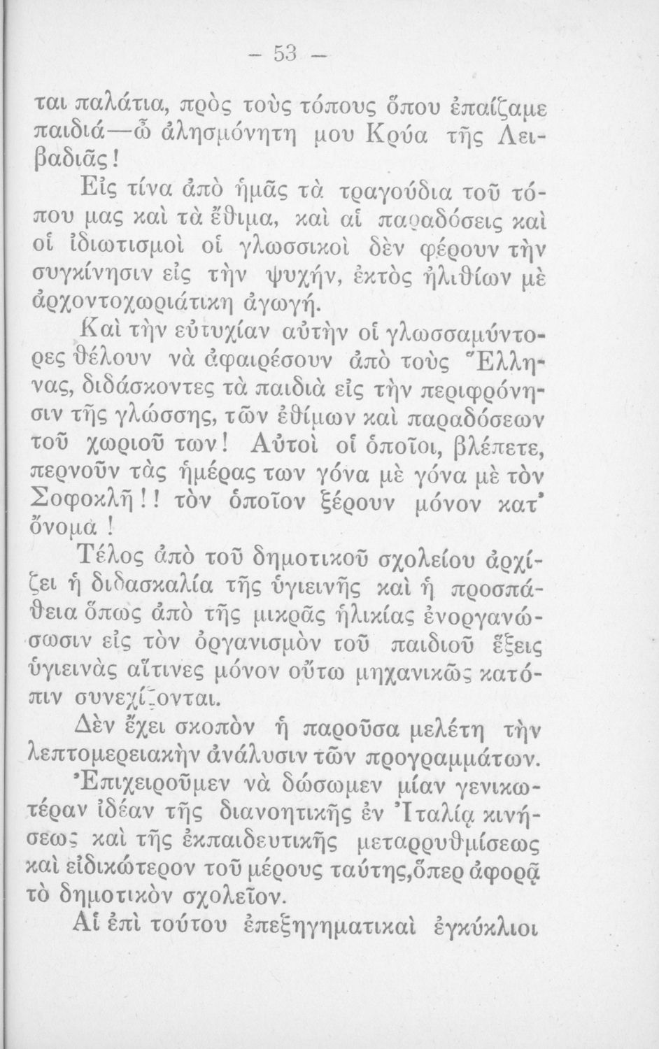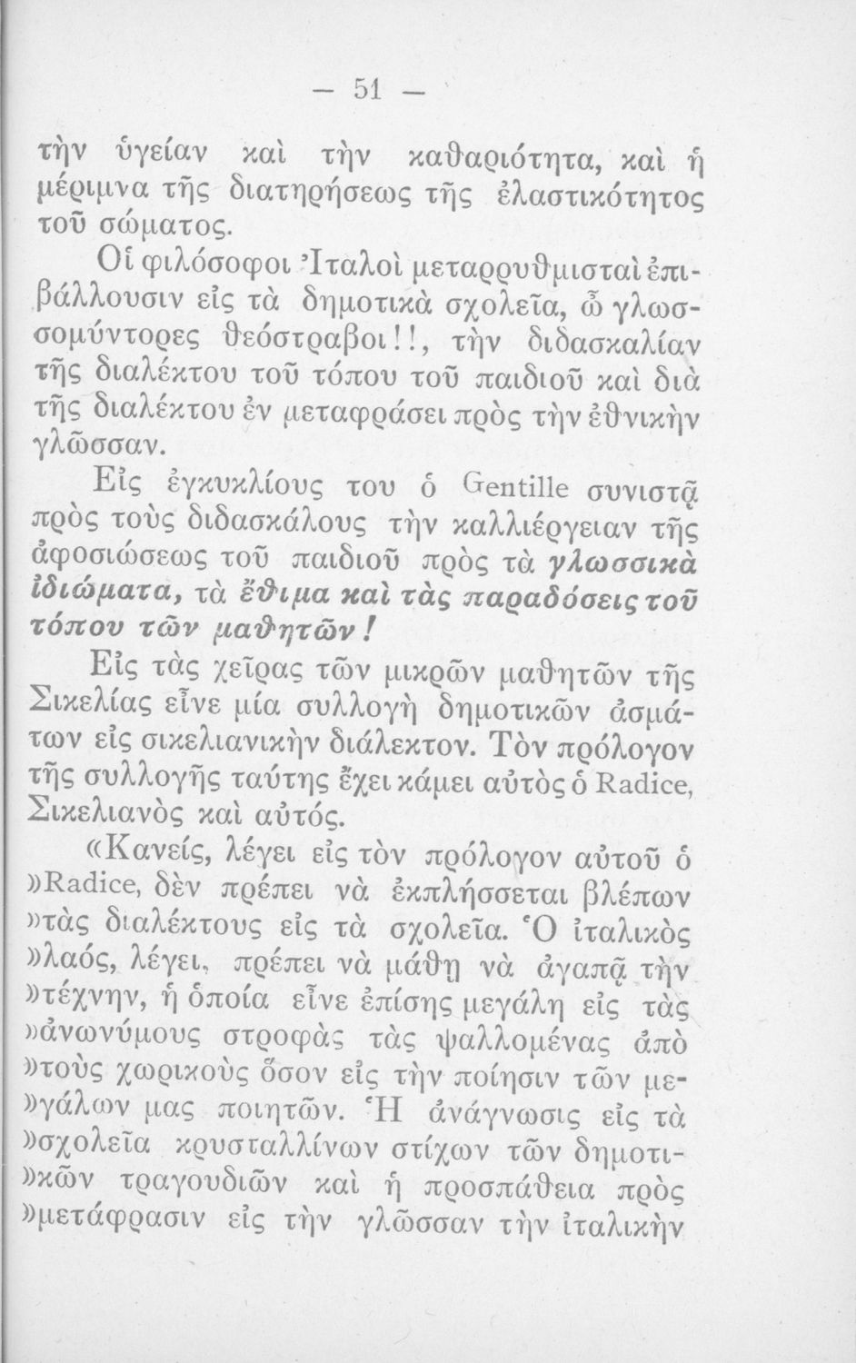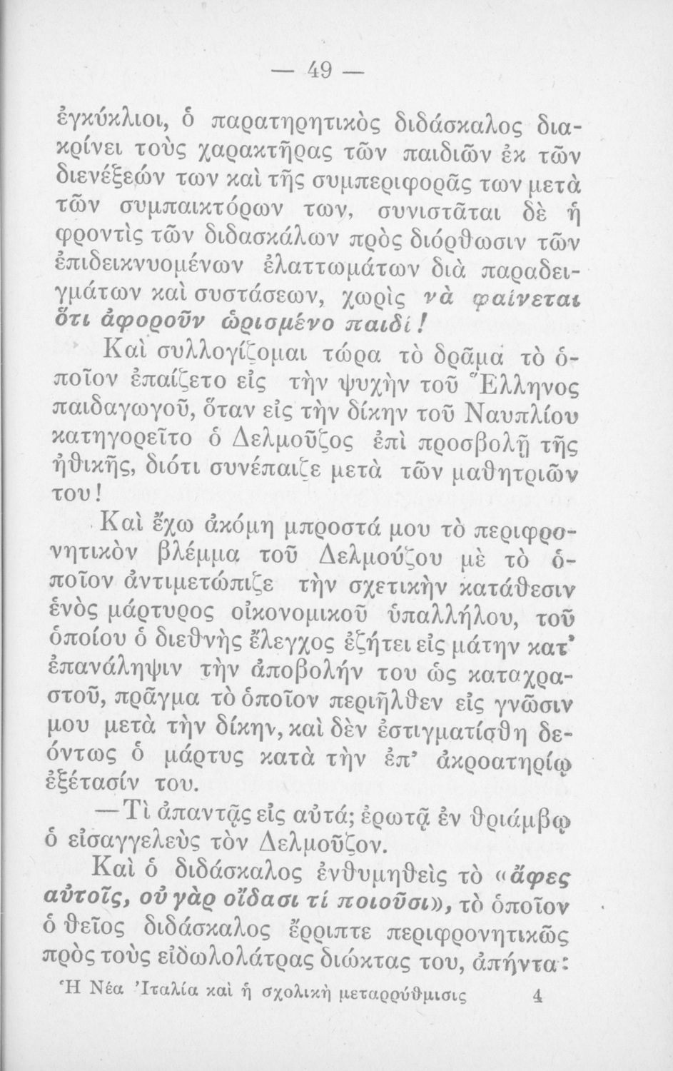 Γλώσσα: Δημοτική Παρουσίαση περιεχομένου: Παιδαγωγικό βοήθημα που αναφέρεται στην εκπαιδευτική κατάσταση της Ιταλίας. Περιλαμβάνει και προτάσεις του συγγραφέα για ελληνικά εκπαιδευτικά ζητήματα. |