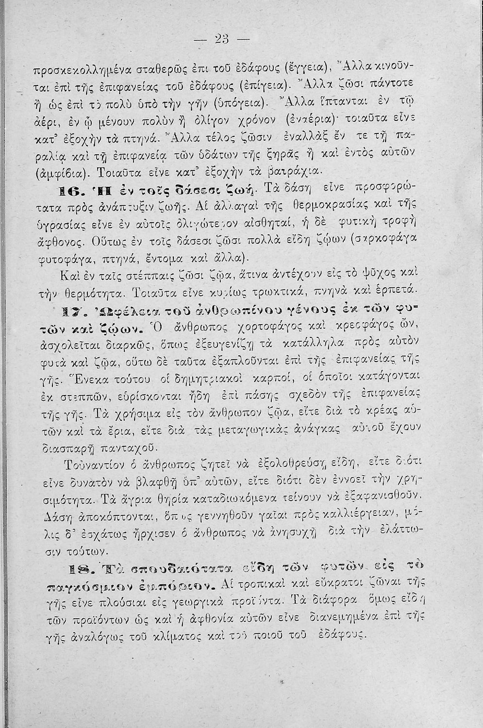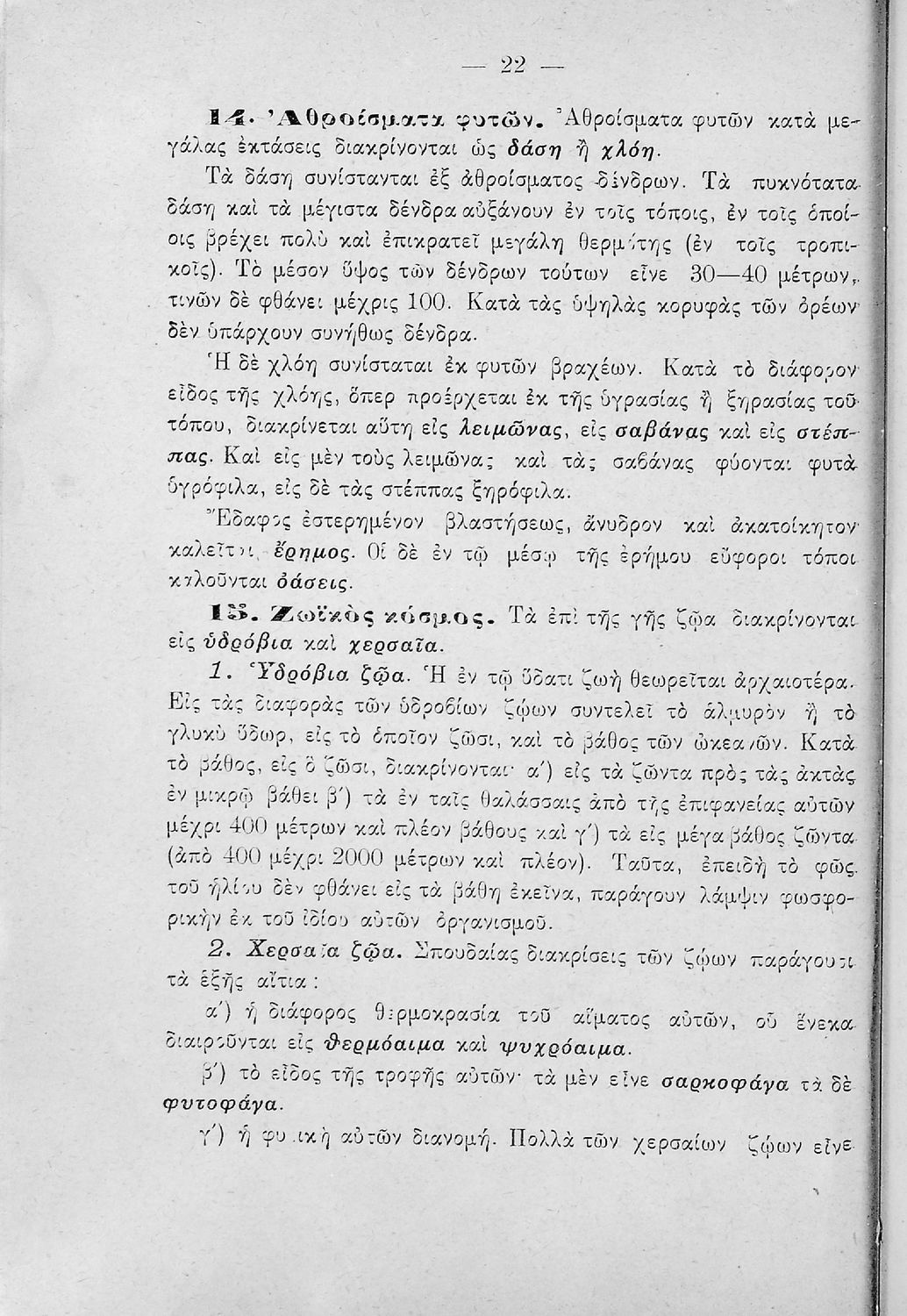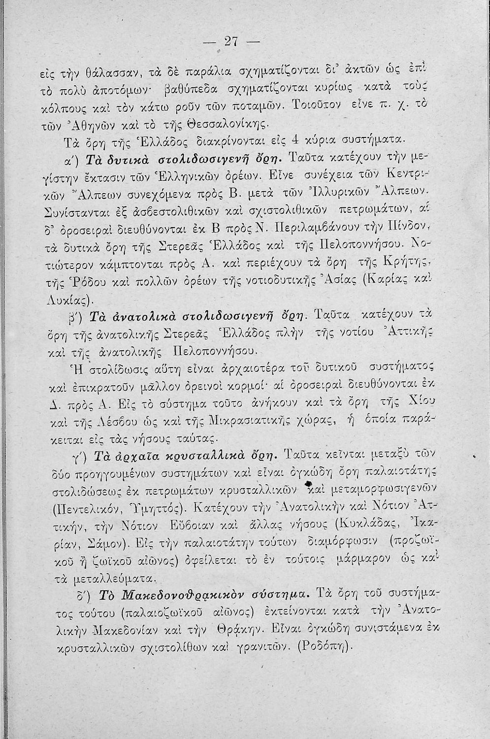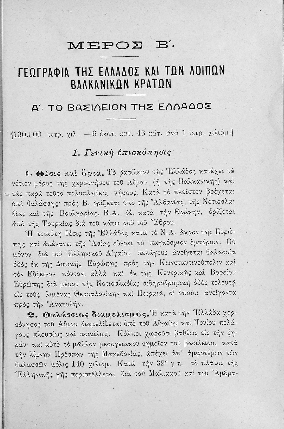 Σχολικό εγχειρίδιο Γεωγραφίας για την Α΄ Εμπορικών Σχολών. Περιλαμβάνει στοιχεία μαθηματικής, αστρονομικής και φυσικής γεωγραφίας. Περιέχει στοιχεία γεωφυσικά και πολιτικά της Ελλάδας και των χωρών της χερσονήσου του Αίμου.