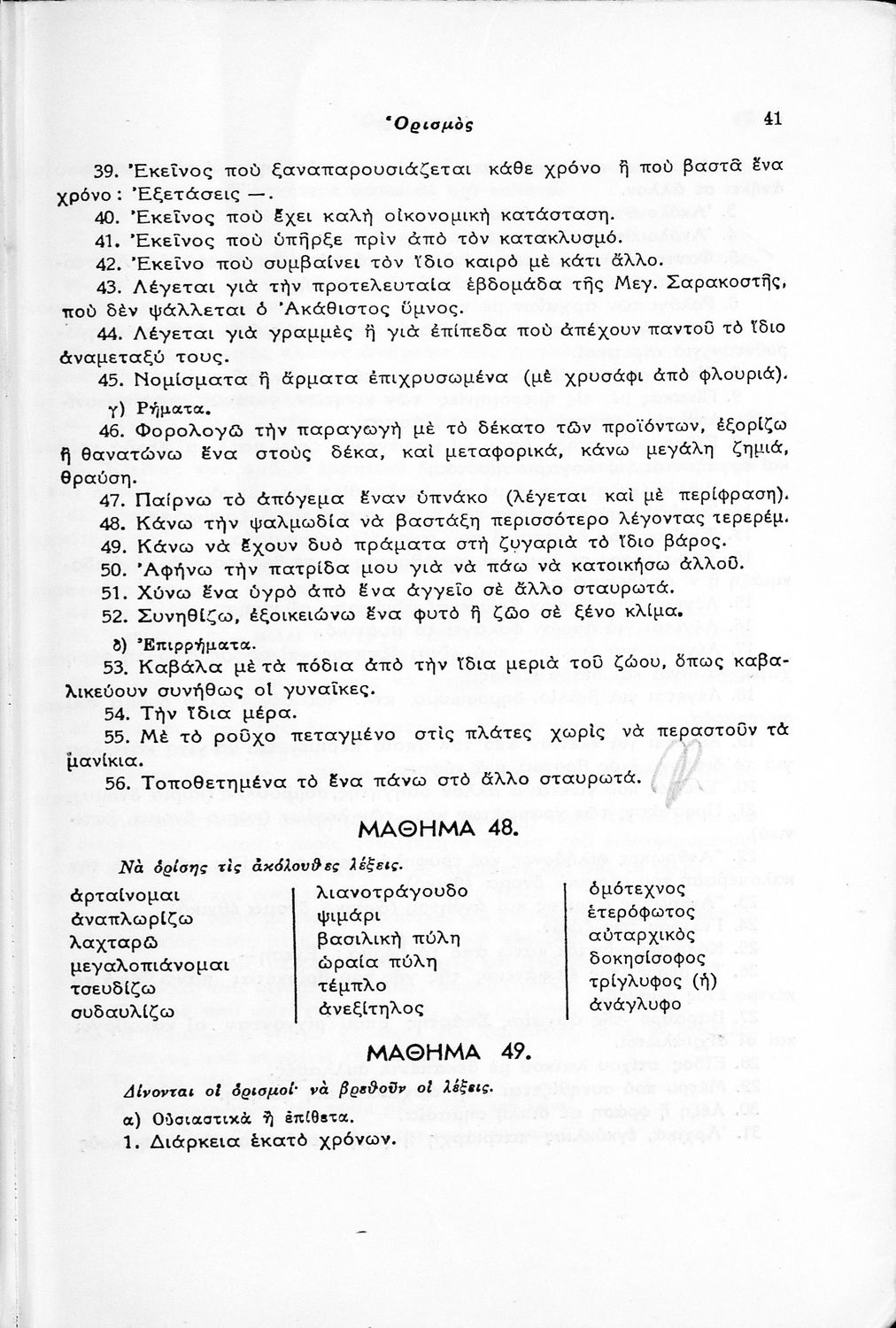 Μαθητικό βοήθημα που περιέχει ατομικές και ομαδικές ασκήσεις και αποσκοπεί στη γλωσσική καλλιέργεια και την παροχή πραγματολογικών γνώσεων.