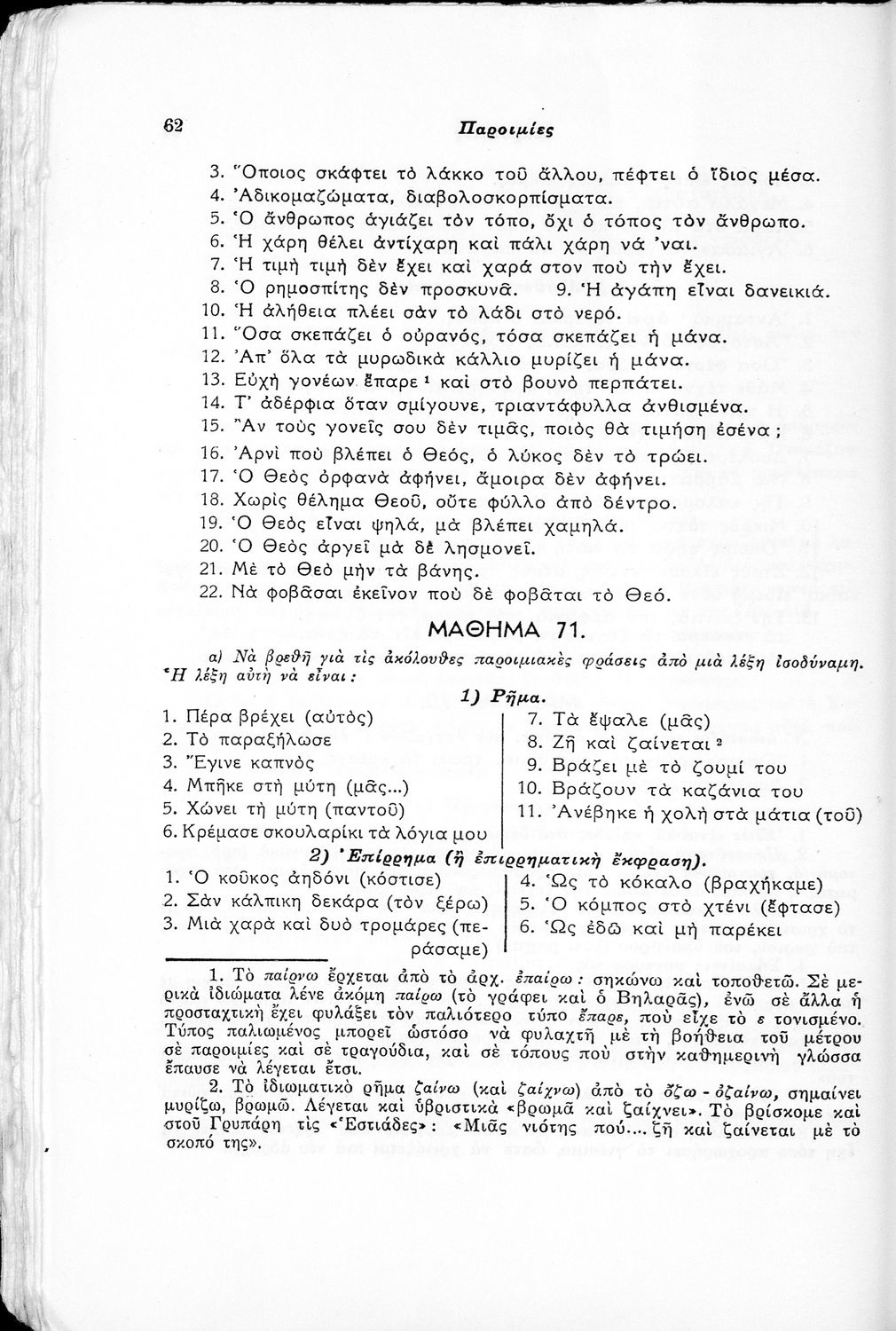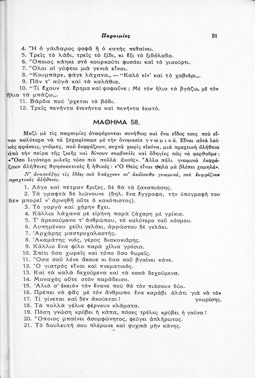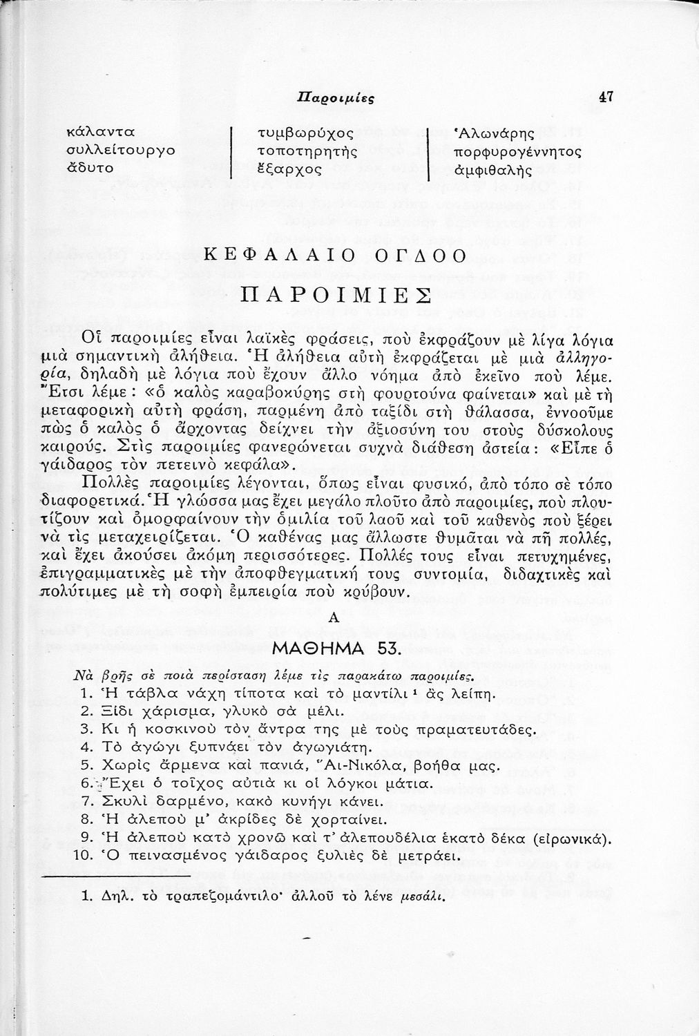Το σύγγραμμα ήταν εκπαιδευτικό βοήθημα για το μάθημα των νέων ελληνικών. Αρχικά, έχει οδηγίες, οι οποίες απευθύνονται στους δασκάλους και τους μαθητές αντίστοιχα για την εξυπηρέτηση της διδασκαλίας. Στη ...