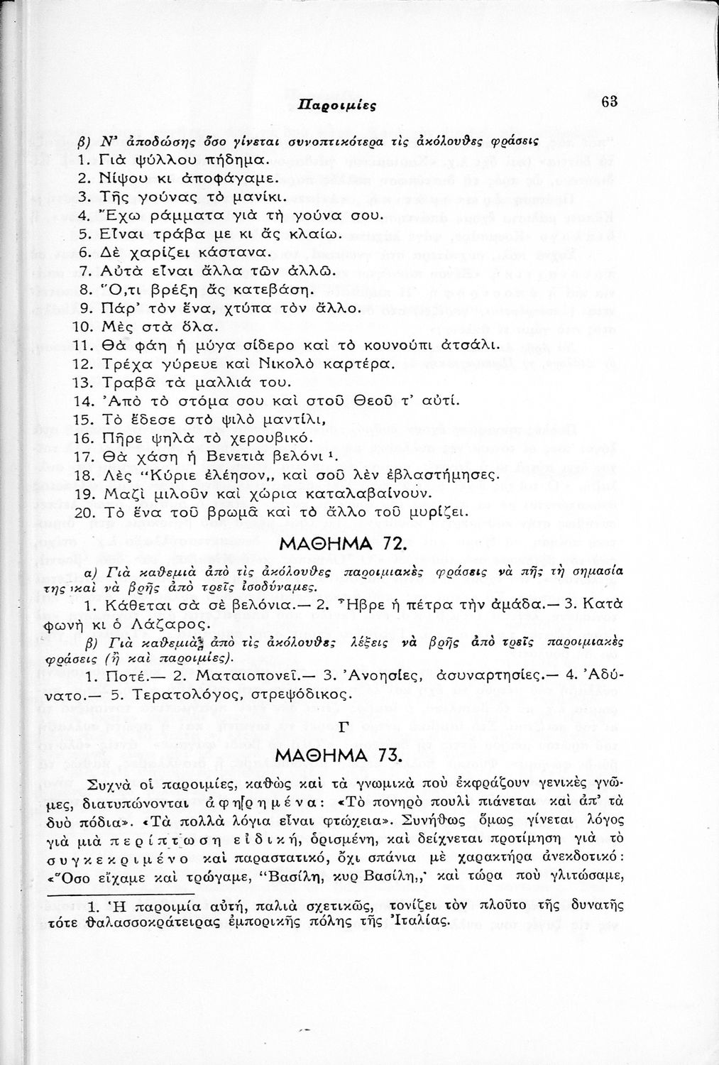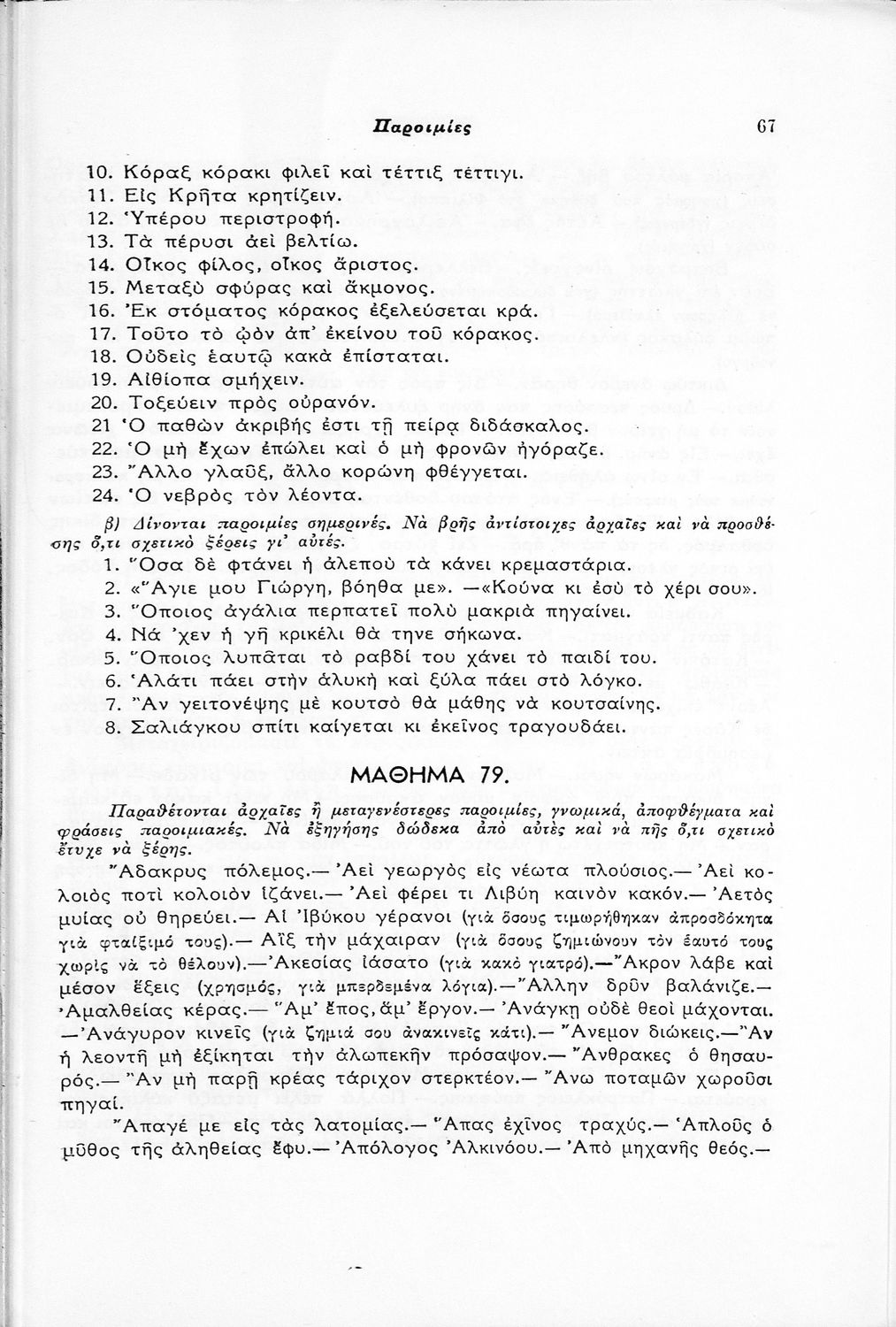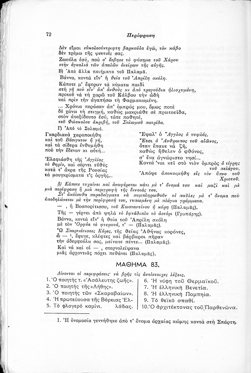 Το σύγγραμμα ήταν εκπαιδευτικό βοήθημα για το μάθημα των νέων ελληνικών. Αρχικά, έχει οδηγίες, οι οποίες απευθύνονται στους δασκάλους και τους μαθητές αντίστοιχα για την εξυπηρέτηση της διδασκαλίας. Στη ...