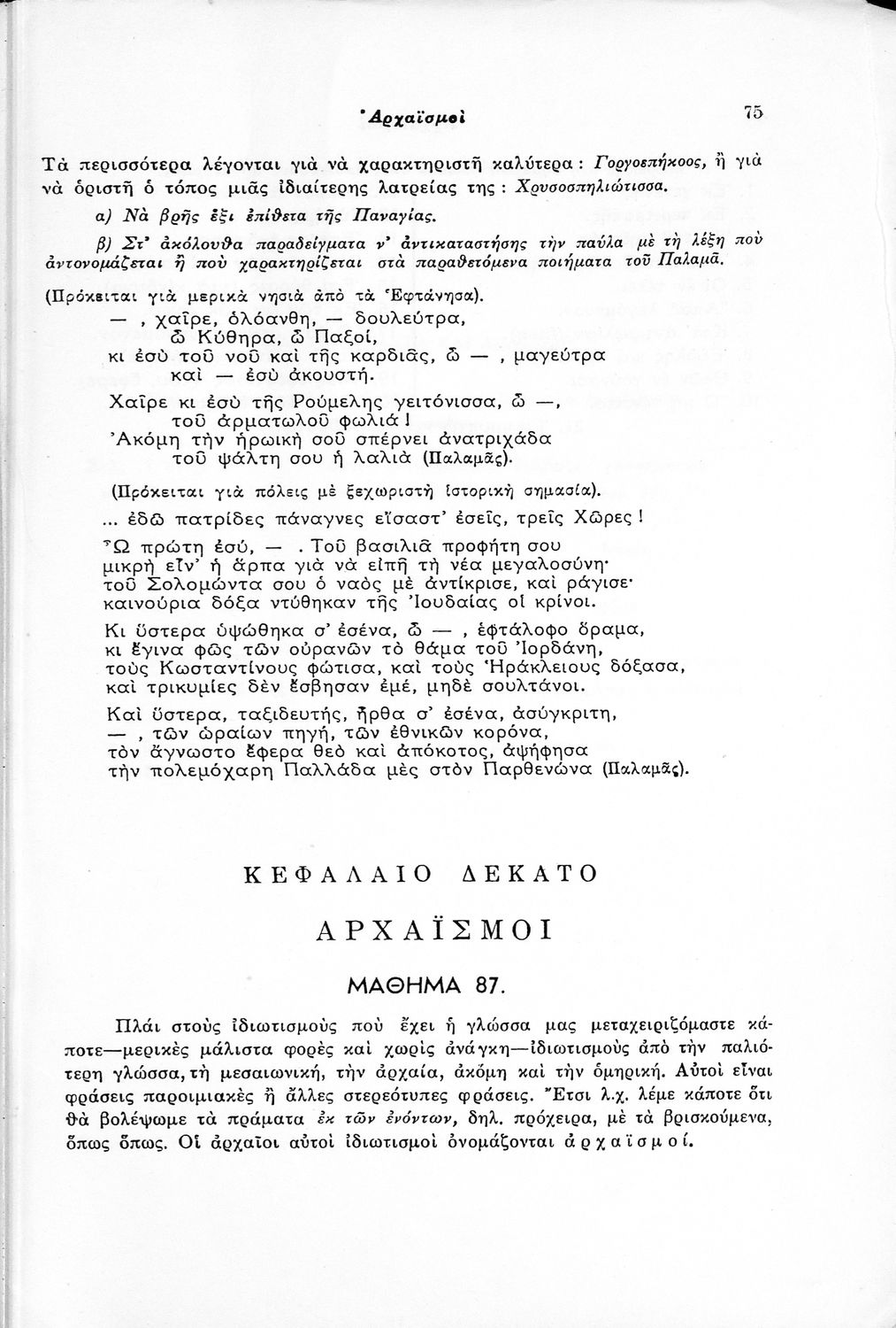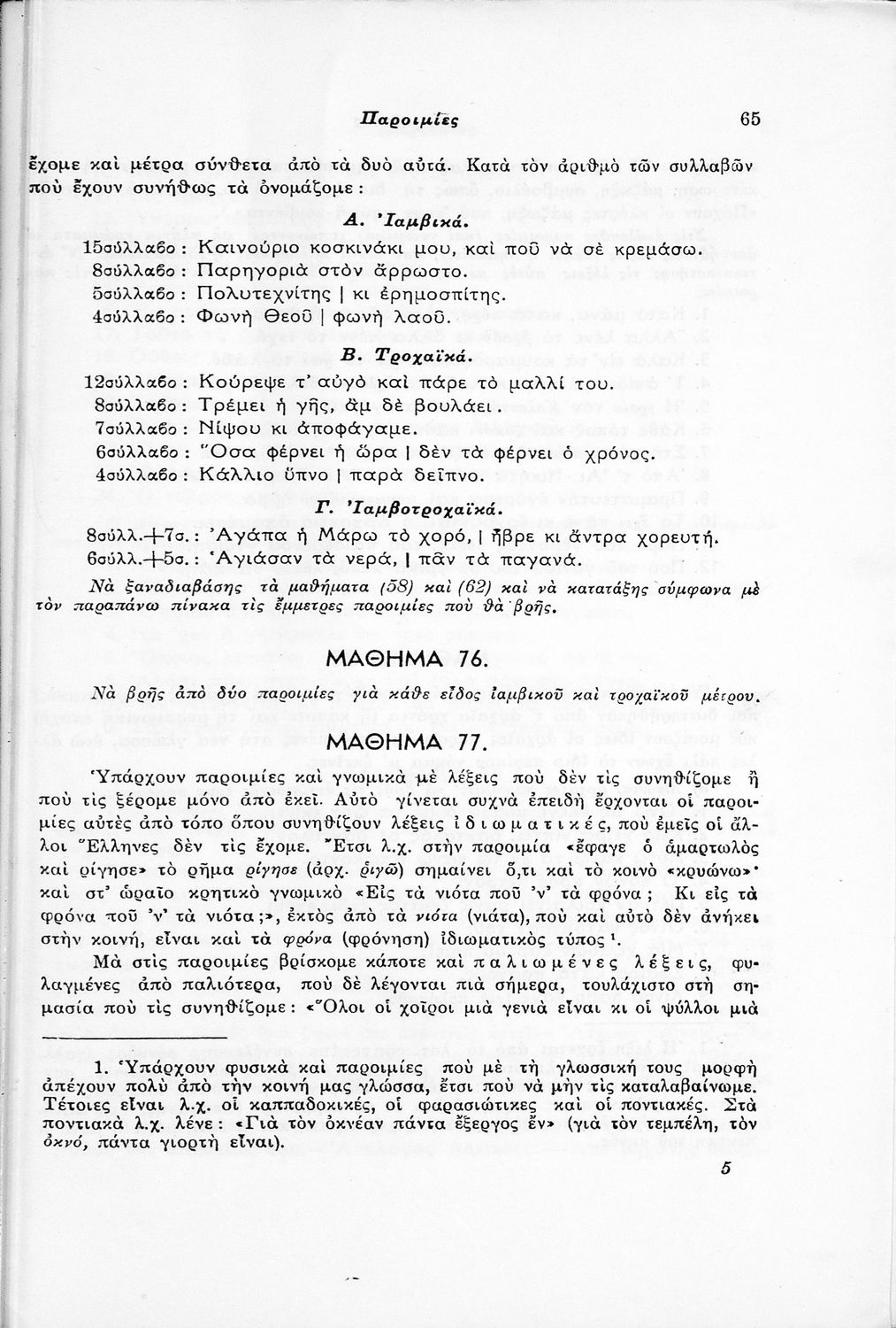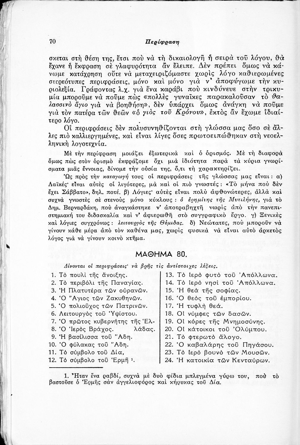 Το σύγγραμμα ήταν εκπαιδευτικό βοήθημα για το μάθημα των νέων ελληνικών. Αρχικά, έχει οδηγίες, οι οποίες απευθύνονται στους δασκάλους και τους μαθητές αντίστοιχα για την εξυπηρέτηση της διδασκαλίας. Στη ...