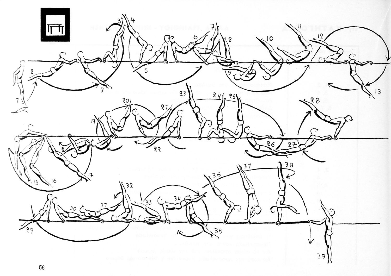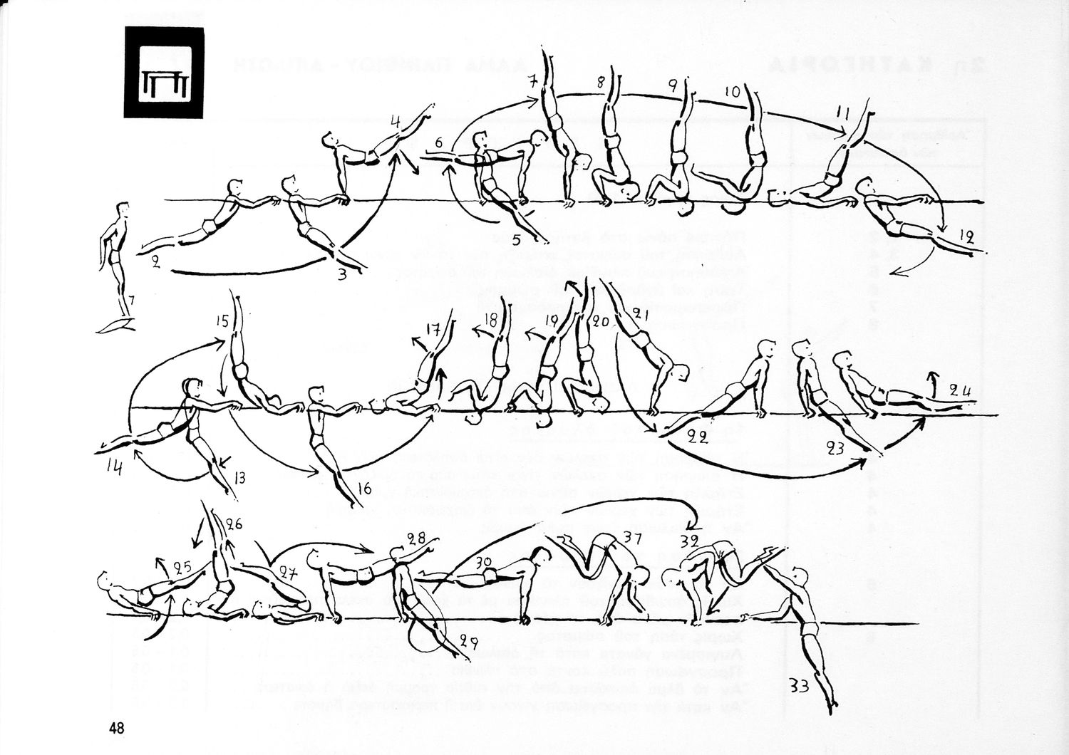 Παιδαγωγικό βοήθημα που αποσκοπεί στην "καλλιέργεια, προώθηση και ανάπτυξη" της Ενόργανης Γυμναστικής στη μέση εκπαίδευση μέσω της εξοικείωσης των γυμναστών με σειρά προγραμμάτων που βασίζονται στην αιώρηση. Ο συγγραφέας ήταν καθηγητής φυσικής αγωγής της ΕΑΣΑ.
