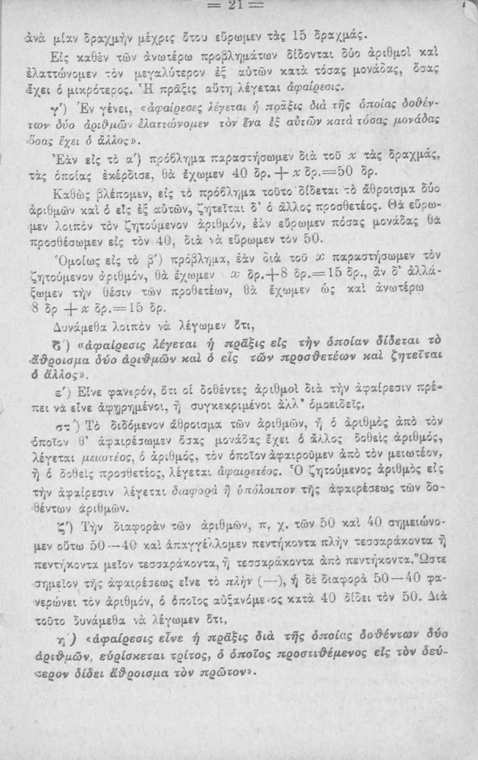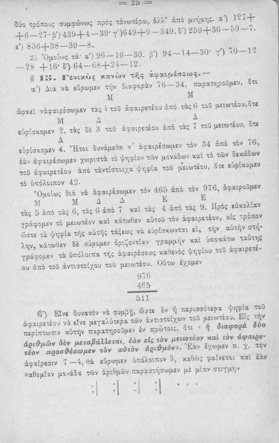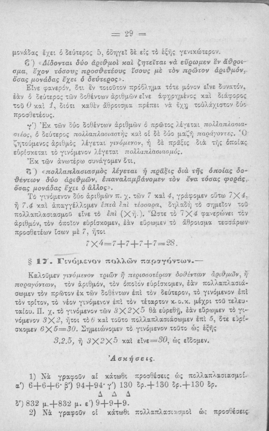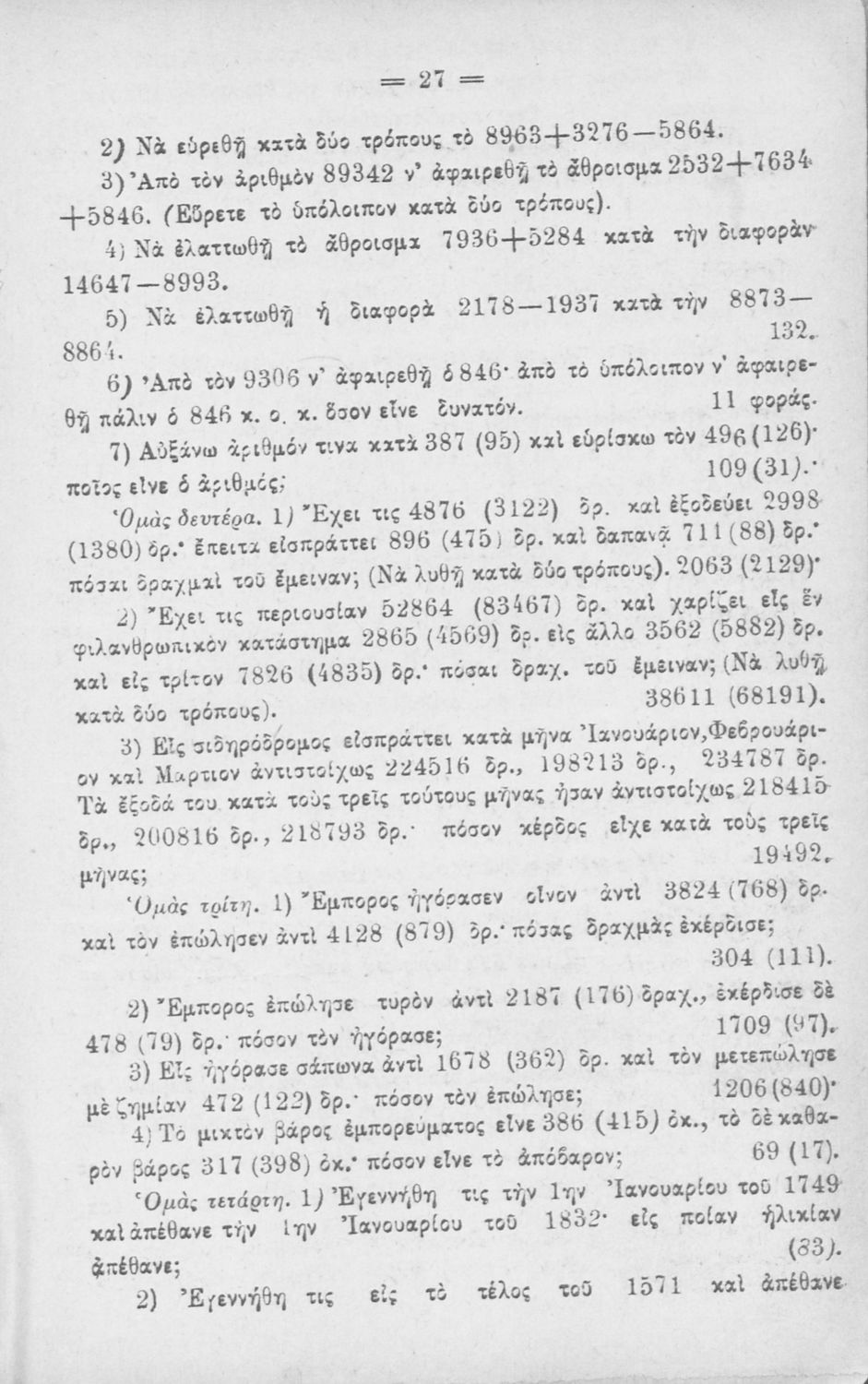 520 ## _aΣχολικό εγχειρίδιο Αριθμητικής για τα Ελληνικά και Αστικά Σχολεία και τα Ανώτερα Παρθεναγωγεία που εστιάζει στις αριθμητικές πράξεις με ακέραιους αριθμούς και κλάσματα και περιλαμβάνει στοιχεία λογιστικής και καταστιχογραφίας. Ο συγγραφέας ήταν καθηγητής στο Πανεπιστήμιο Αθηνών.