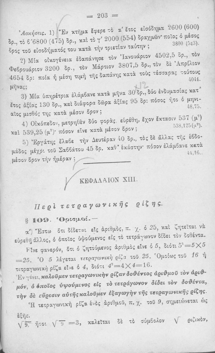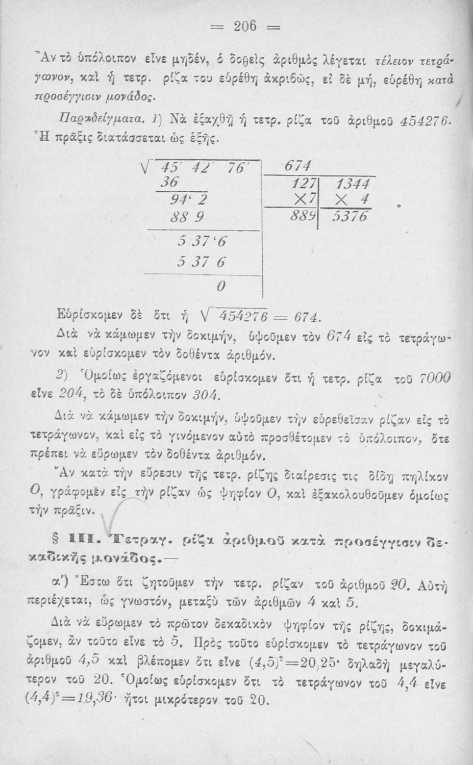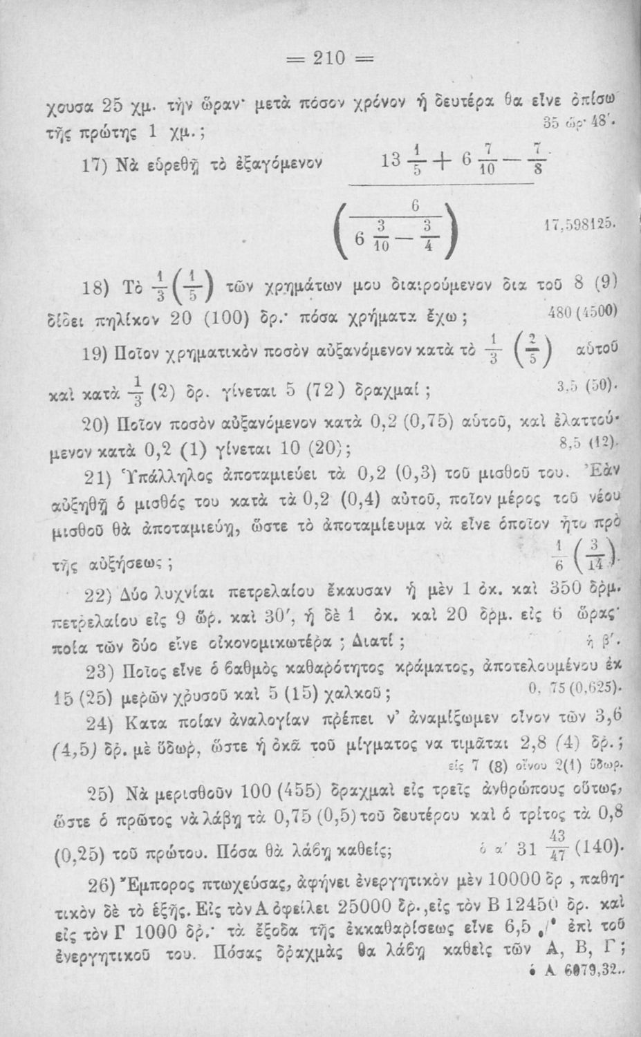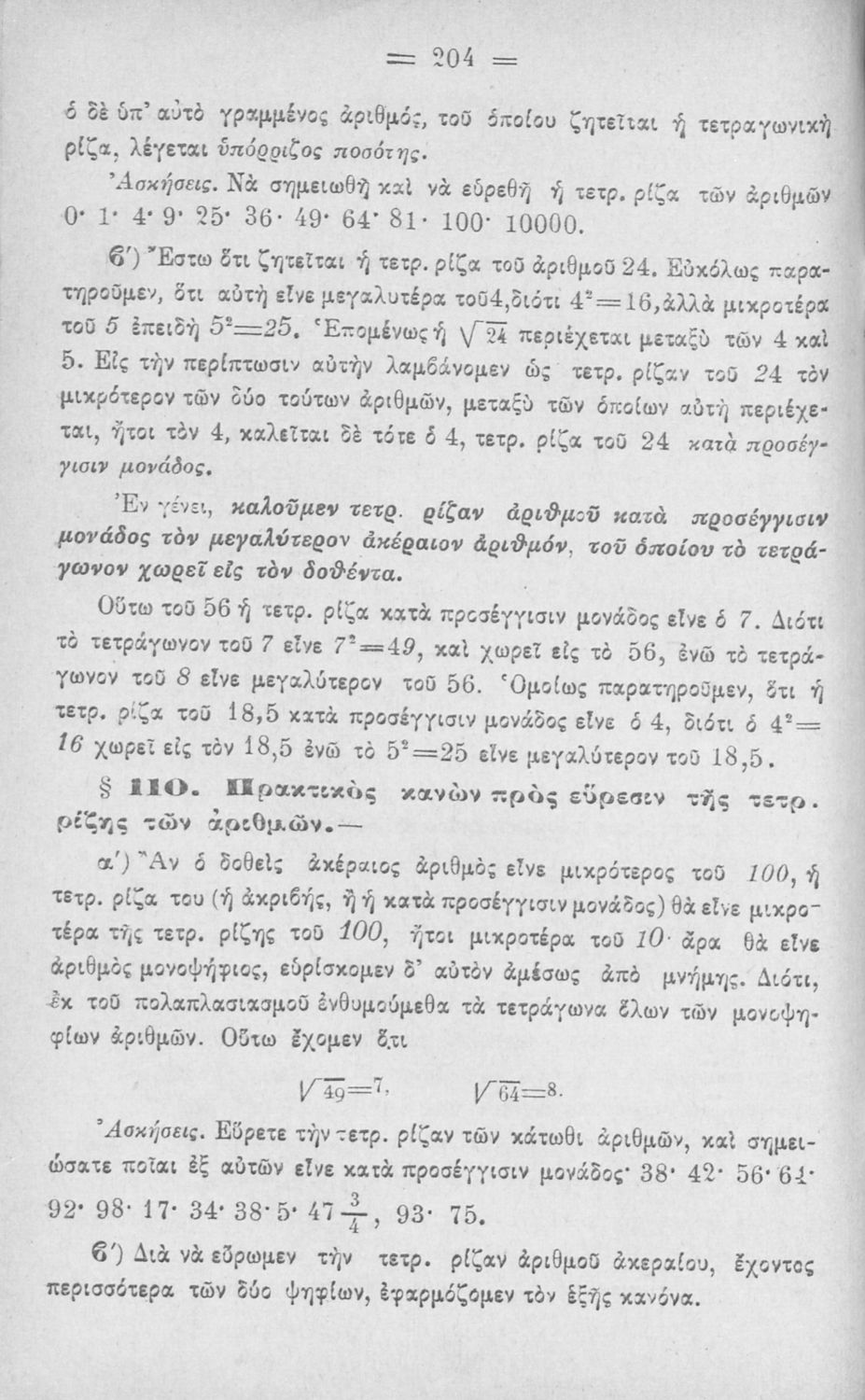 Σχολικό εγχειρίδιο Αριθμητικής για τα Ελληνικά και Αστικά Σχολεία και τα Παρθεναγωγεία που εστιάζει στις αριθμητικές πράξεις, τα κλάσματα, τους δεκαδικούς και συμμιγείς αριθμούς, και τις δυνάμεις. Περιέχει και