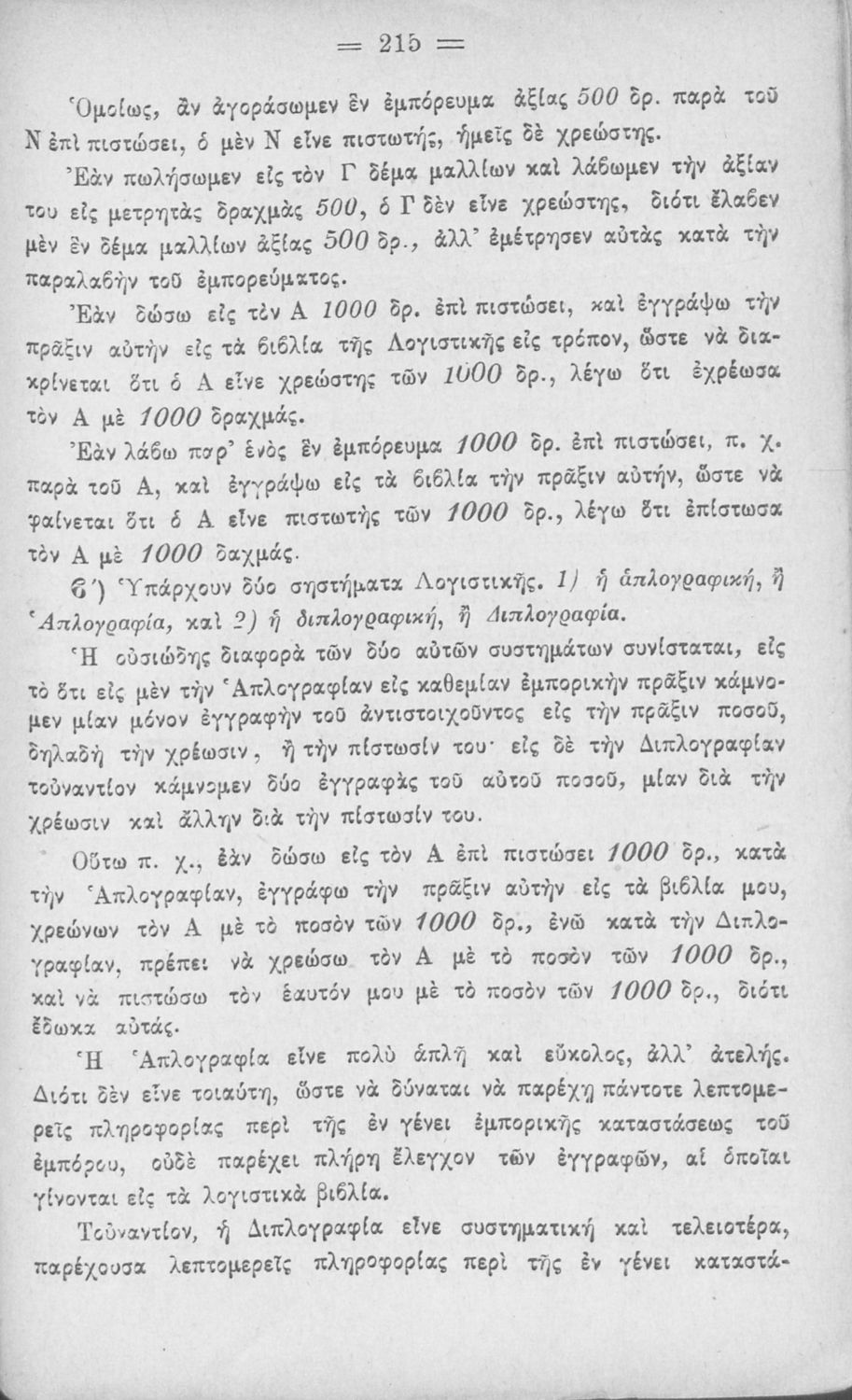 Σχολικό εγχειρίδιο Αριθμητικής για τα Ελληνικά και Αστικά Σχολεία και τα Ανώτερα Παρθεναγωγεία που εστιάζει στις αριθμητικές πράξεις με ακέραιους αριθμούς και κλάσματα και περιλαμβάνει στοιχεία λογιστικής και καταστιχογραφίας. Ο συγγραφέας ήταν καθηγητής στο Πανεπιστήμιο Αθηνών.