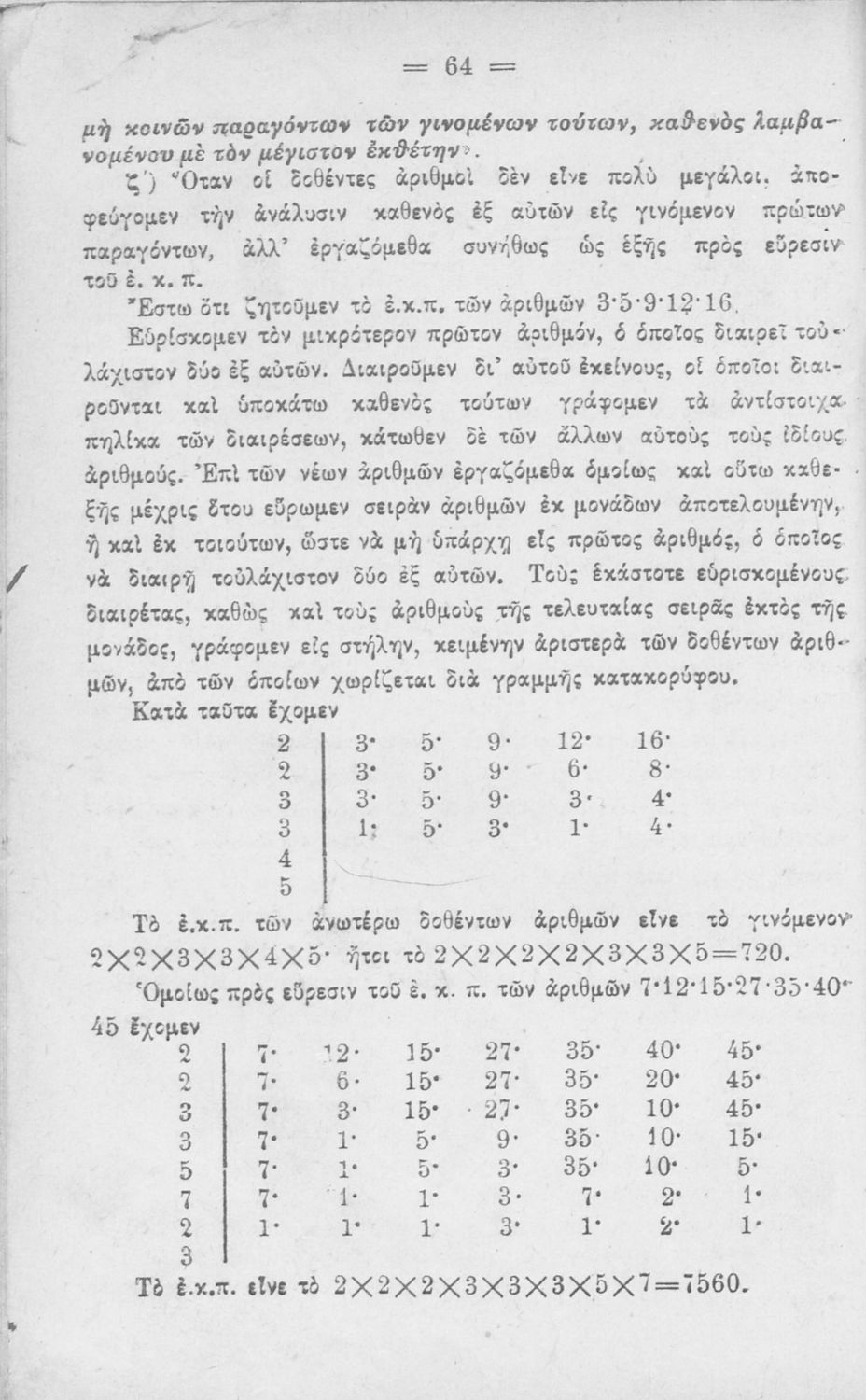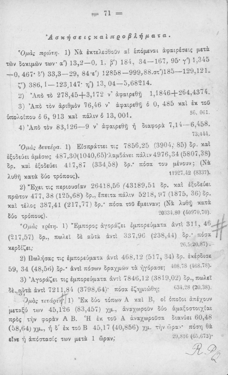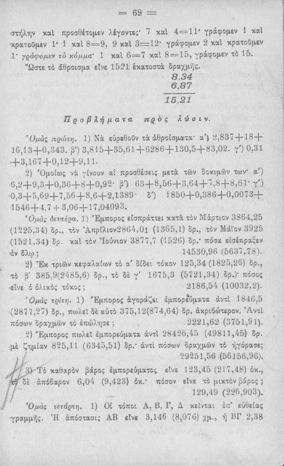 LDR 01546 2200217 4500 035 ## _a01-18672 040 ## _aΙνστιτούτο Εκπαιδευτικής Πολιτικής 041 ## _ael 100 ## _aΝείλος Σακελλαρίου 110 ## _a18672 245 0# _aΠρακτική αριθμητική δια τα Ελληνικά Σχολεία, τα Αστικά και τα Ανώτερα Παρθεναγωγεία 250 ## _a9η Έκδοση 260 ## _aΑθήνα _bΙωάννης Ν. Σιδέρης _c1924 300 ## _a240 _c20 520 ## _aΣχολικό εγχειρίδιο Αριθμητικής για τα Ελληνικά και Αστικά Σχολεία και τα Ανώτερα Παρθεναγωγεία που εστιάζει στις αριθμητικές πράξεις με ακέραιους αριθμούς και κλάσματα και περιλαμβάνει στοιχεία λογιστικής και καταστιχογραφίας. Ο συγγραφέας ήταν καθηγητής στο Πανεπιστήμιο Αθηνών. 521 ## _aΕλληνικό Σχολείο / Αστικό Σχολείο / Ανώτερα Παρθεναγωγεία 522 ## _aΕλλάδα 546 ## _aΑπλή καθαρεύουσα 563 ## _aΣκληρό Εξώφυλλο 583 ## _a36398/4-11-1917 _c1917 650 #4 _aΑριθμητικές πράξεις _aΔεκαδικοί αριθμοί _aΛόγοι και αναλογίες _aΣυμμιγείς αριθμοί _aΤετραγωνική ρίζα