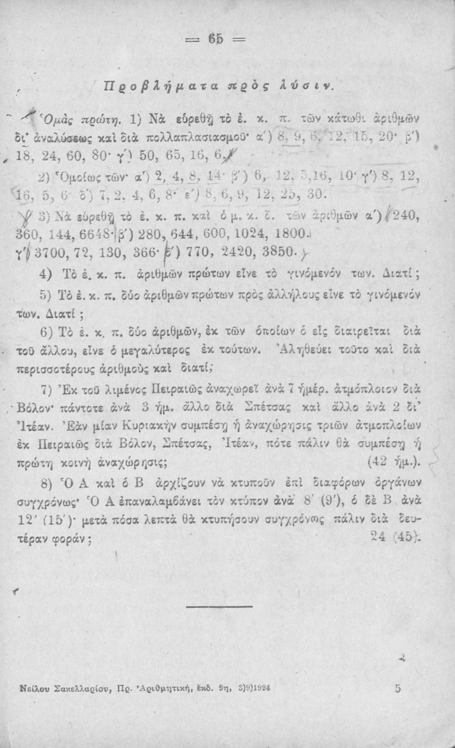 Σχολικό εγχειρίδιο Αριθμητικής για τα Ελληνικά και Αστικά Σχολεία και τα Ανώτερα Παρθεναγωγεία που εστιάζει στις αριθμητικές πράξεις με ακέραιους αριθμούς και κλάσματα και περιλαμβάνει στοιχεία λογιστικής και καταστιχογραφίας. Ο συγγραφέας ήταν καθηγητής στο Πανεπιστήμιο Αθηνών.
