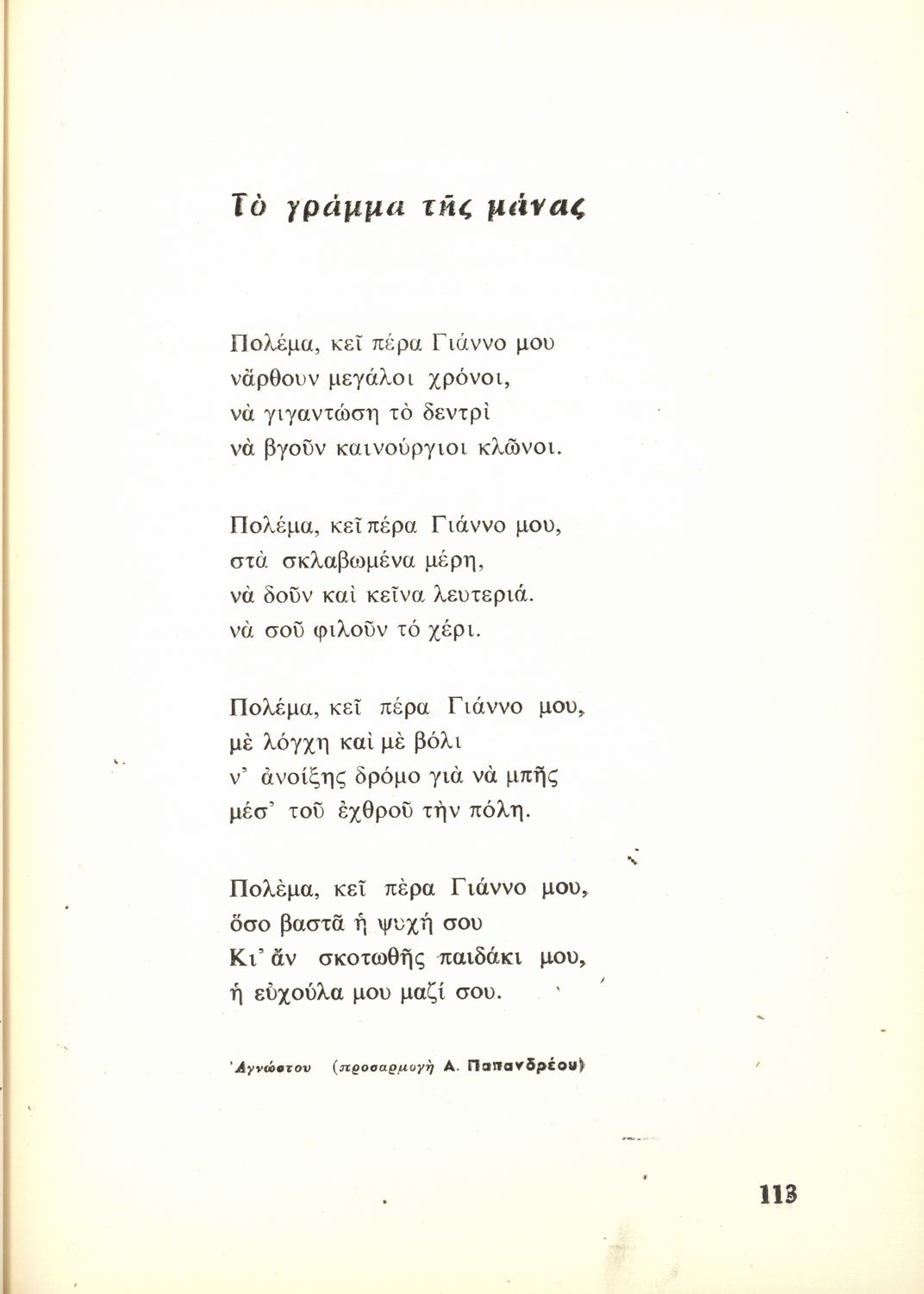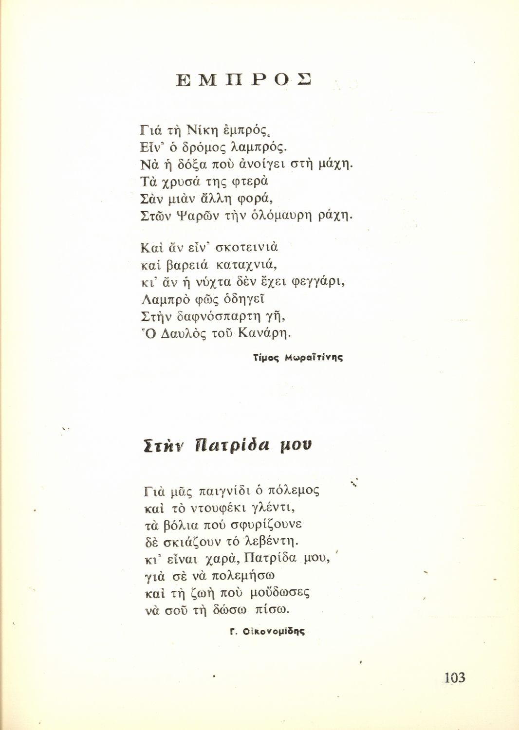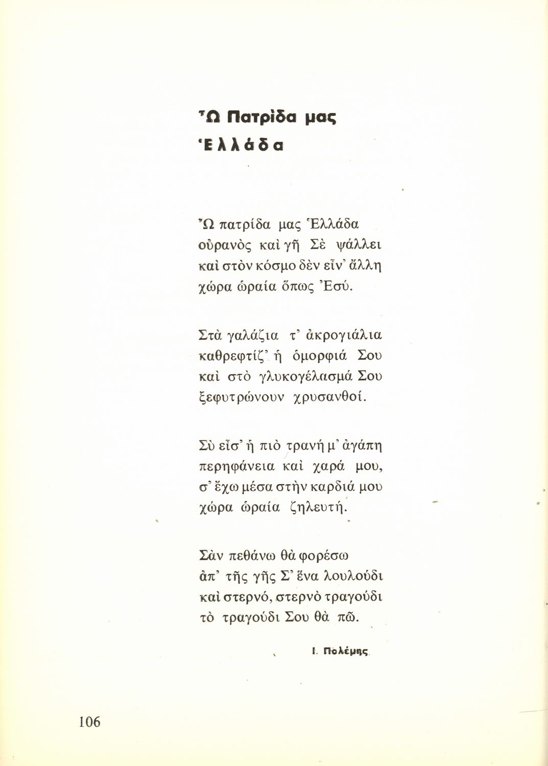 Παρουσίαση περιεχομένου: Σχολικό εγχειρίδιο Μουσικής για τις Α΄, Β΄, Γ΄, Δ΄ τάξεις του Δημοτικού. Το βιβλίο περιέχει τραγούδια και προσευχές με διάφορα θέματα. Ο συγγραφέας υπήρξε Δημοδιδάσκαλος της Μαρασλείου Παιδαγωγικής Ακαδημίας.