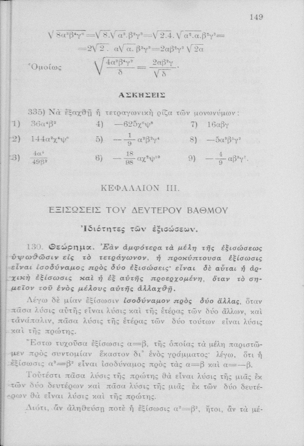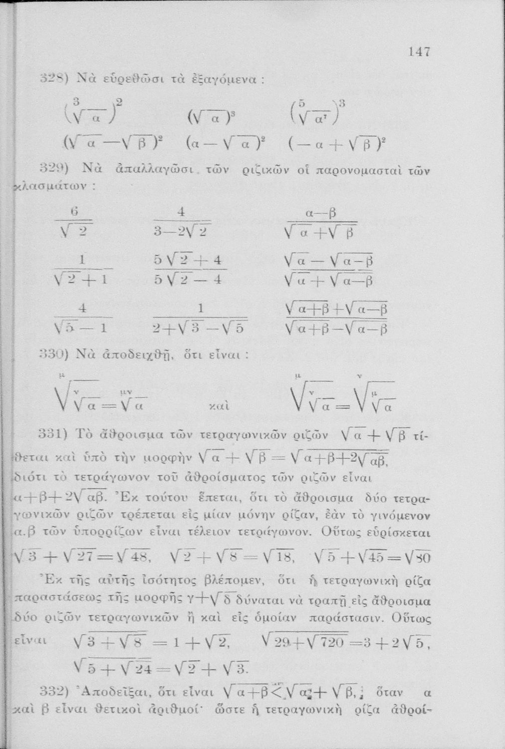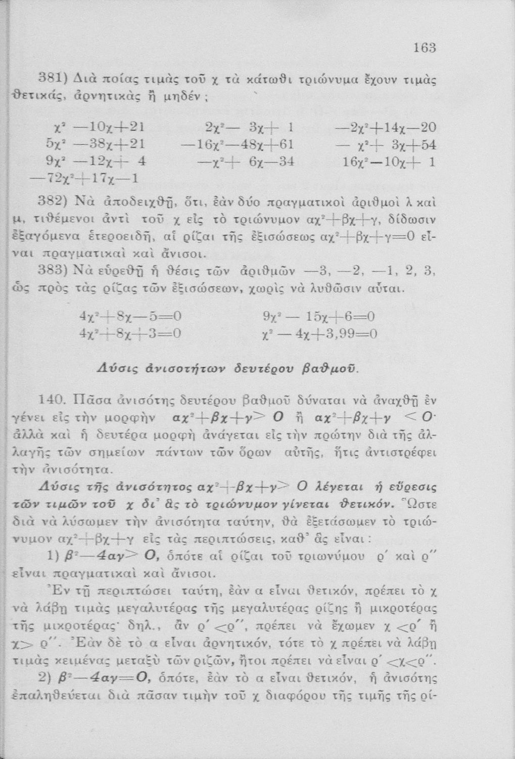 LDR 00958 2200193 4500 035 ## _a01-18676 040 ## _aΙνστιτούτο Εκπαιδευτικής Πολιτικής 041 ## _ael 100 ## _aΙω. Ν. Χατζιδάκις _aΧρ. Α. Μπαρμπαστάθης 110 ## _a18676 245 0# _aΣτοιχειώδης άλγεβρα προς χρήσιν των Γυμνασίων συμφώνος προς το νέον πρόγραμμα 260 ## _aΑθήνα _c1934 300 ## _a236 _c19 520 ## _aΣχολικό εγχειρίδιο Άλγεβρας Γυμνασίου που περιλαμβάνει θεωρία και ασκήσεις. 521 ## _aΓυμνάσιο 522 ## _aΕλλάδα 546 ## _aΑπλή καθαρεύουσα 563 ## _aΣκληρό Εξώφυλλο 650 #4 _aΑλγεβρικοί αριθμοί και παραστάσεις _aΔυνάμεις _aΕξισώσεις _aΛογάριθμοι _aΣυναρτήσεις